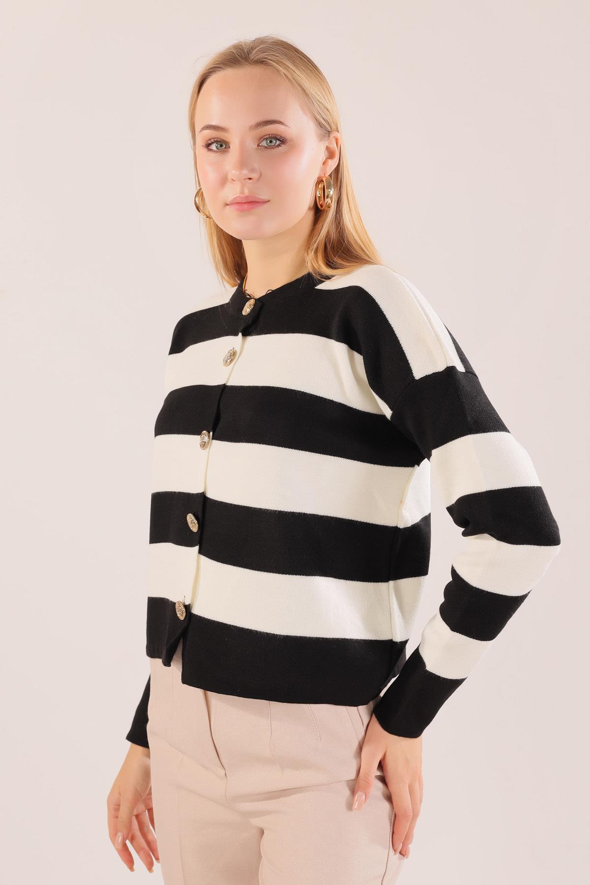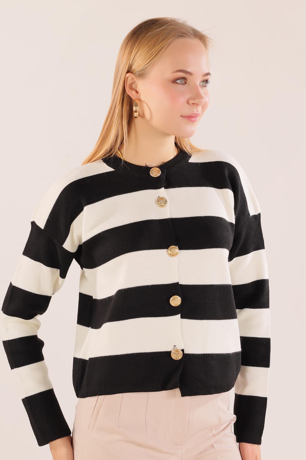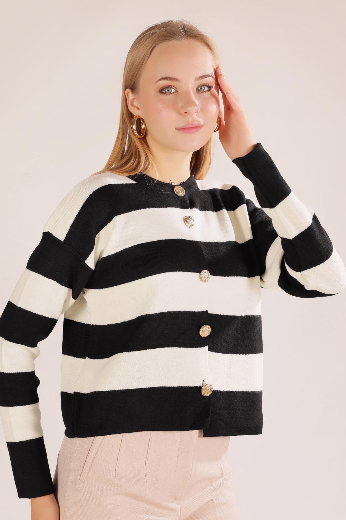 Siyah Düğmeli Çizgili Hırka 3025