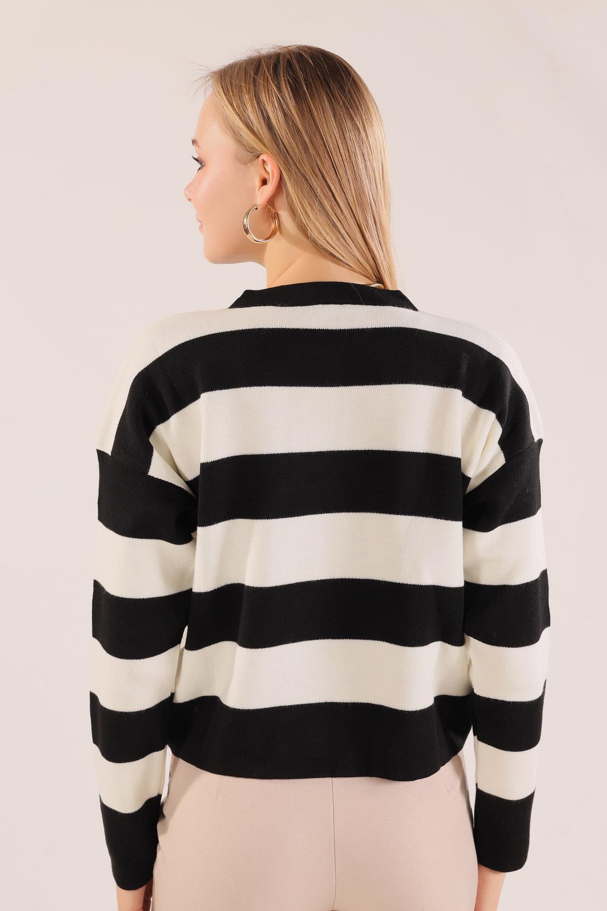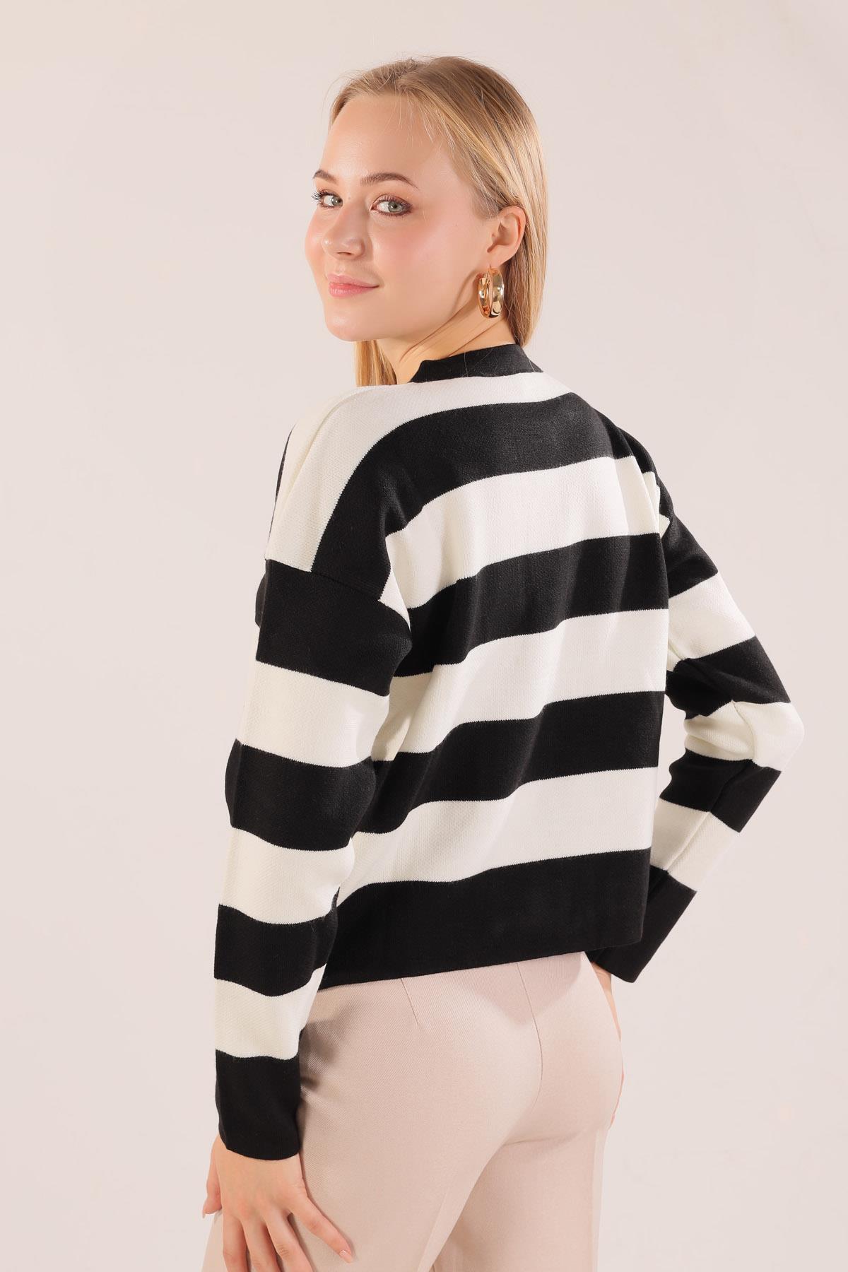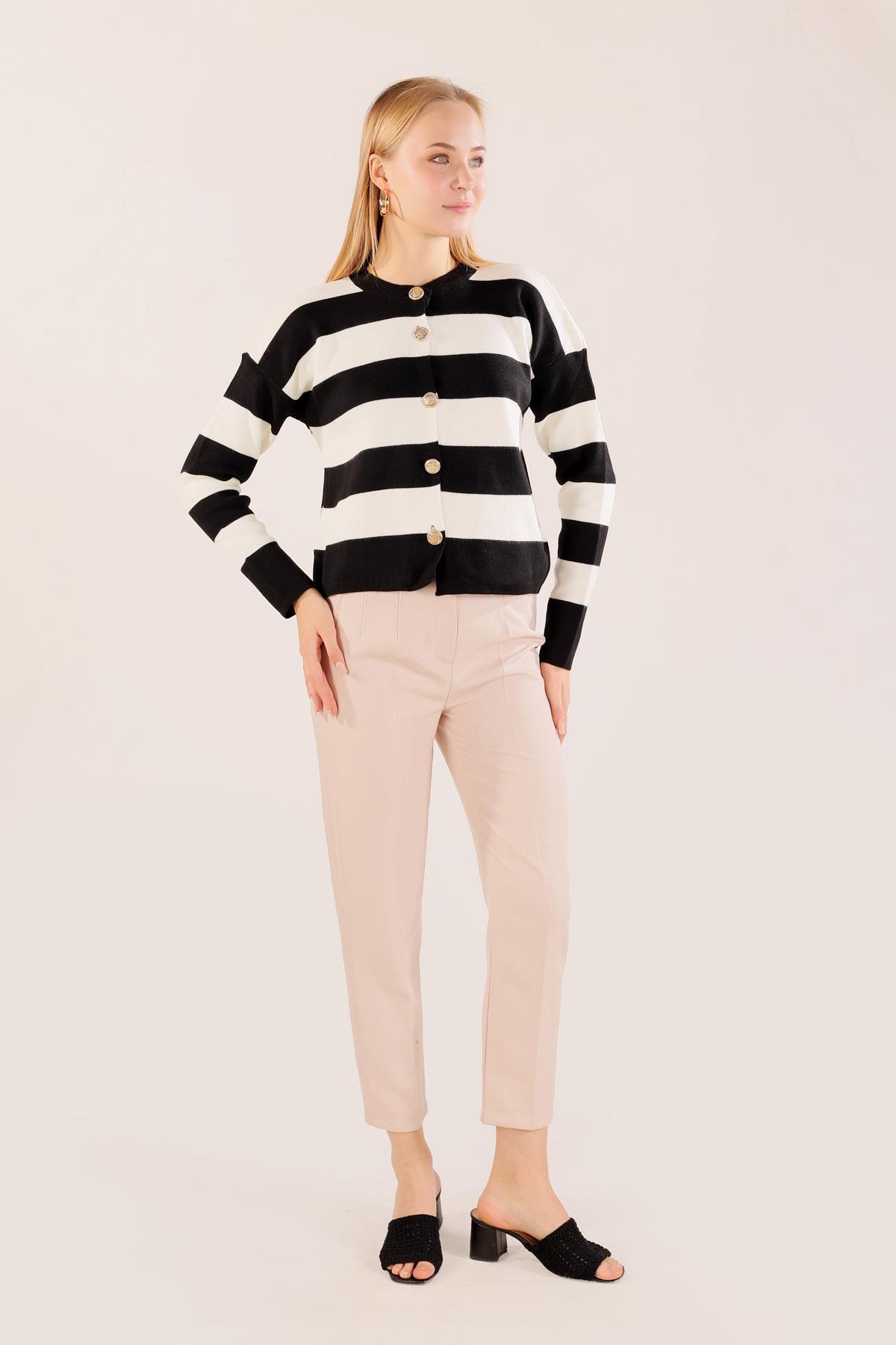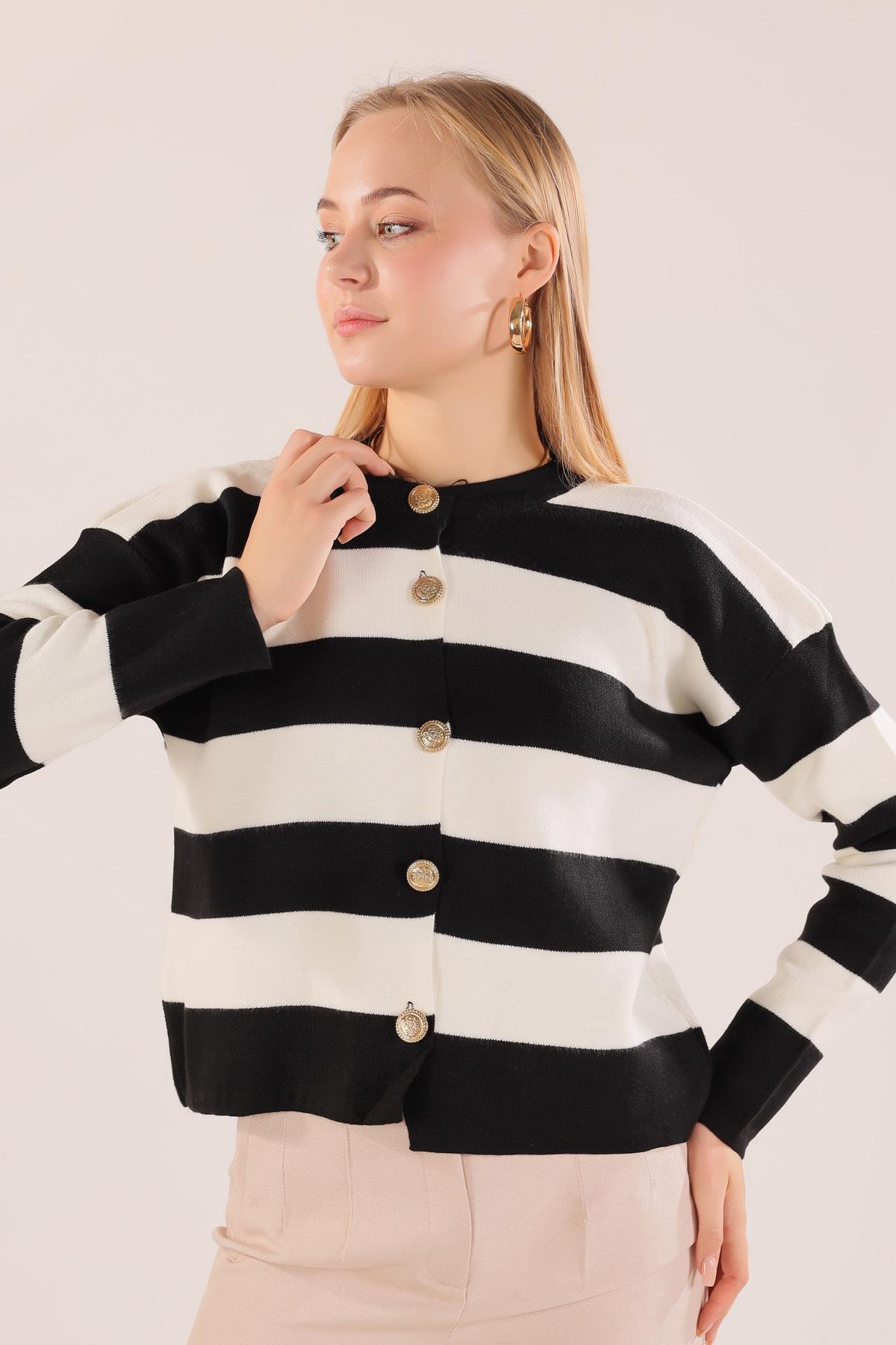 Siyah Düğmeli Çizgili Hırka 3025