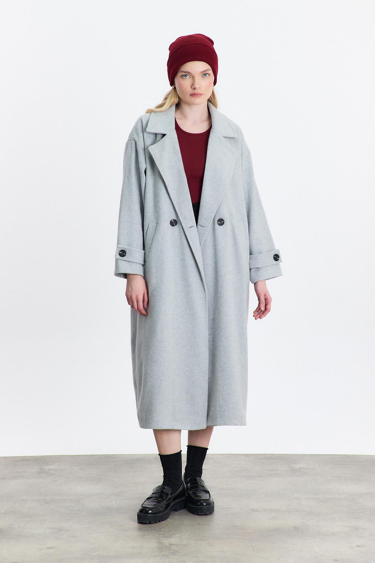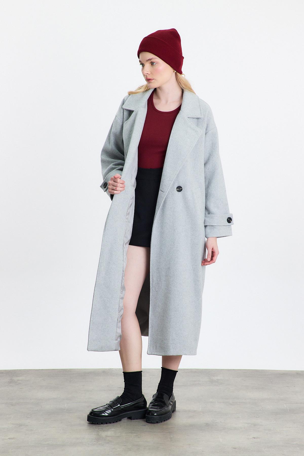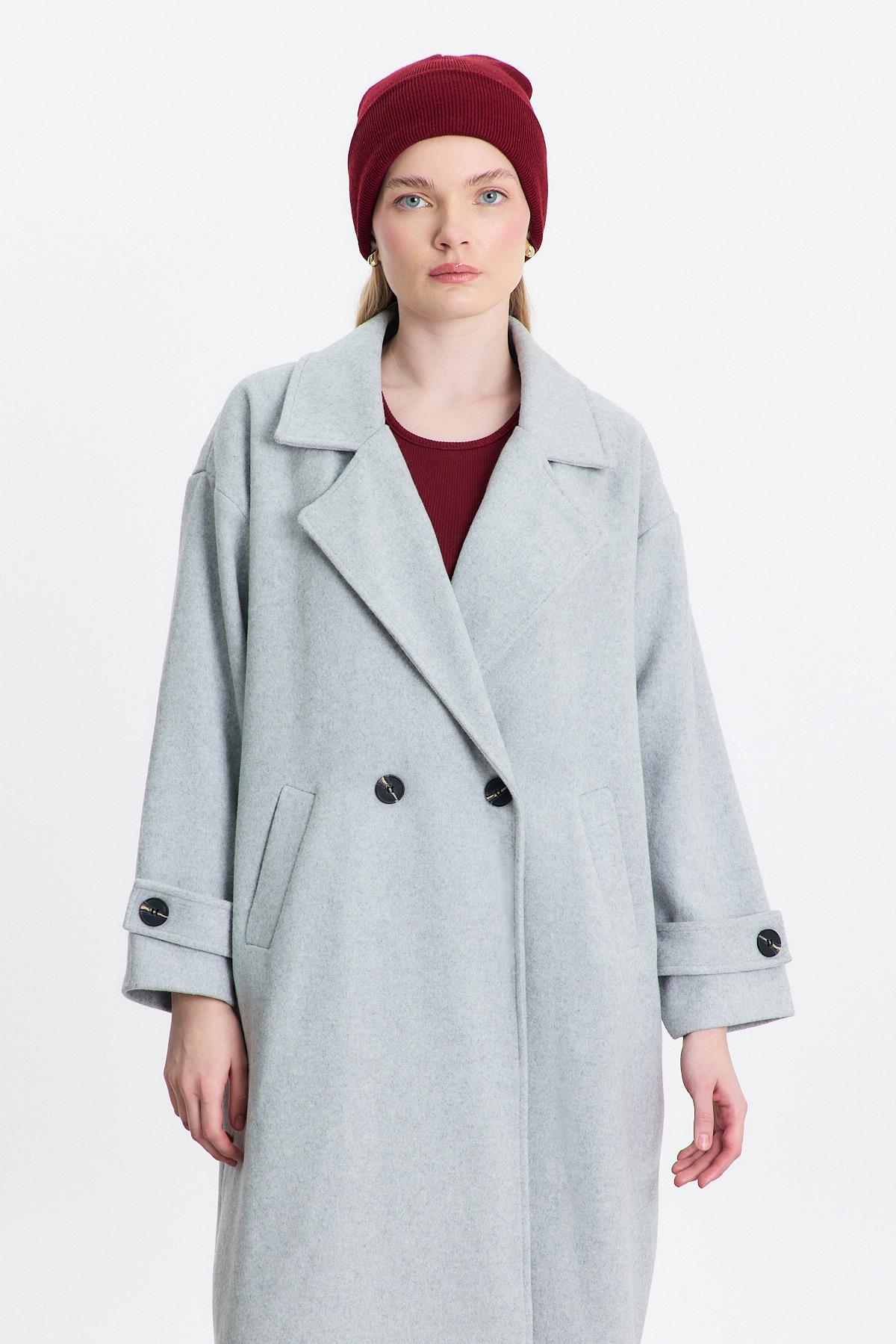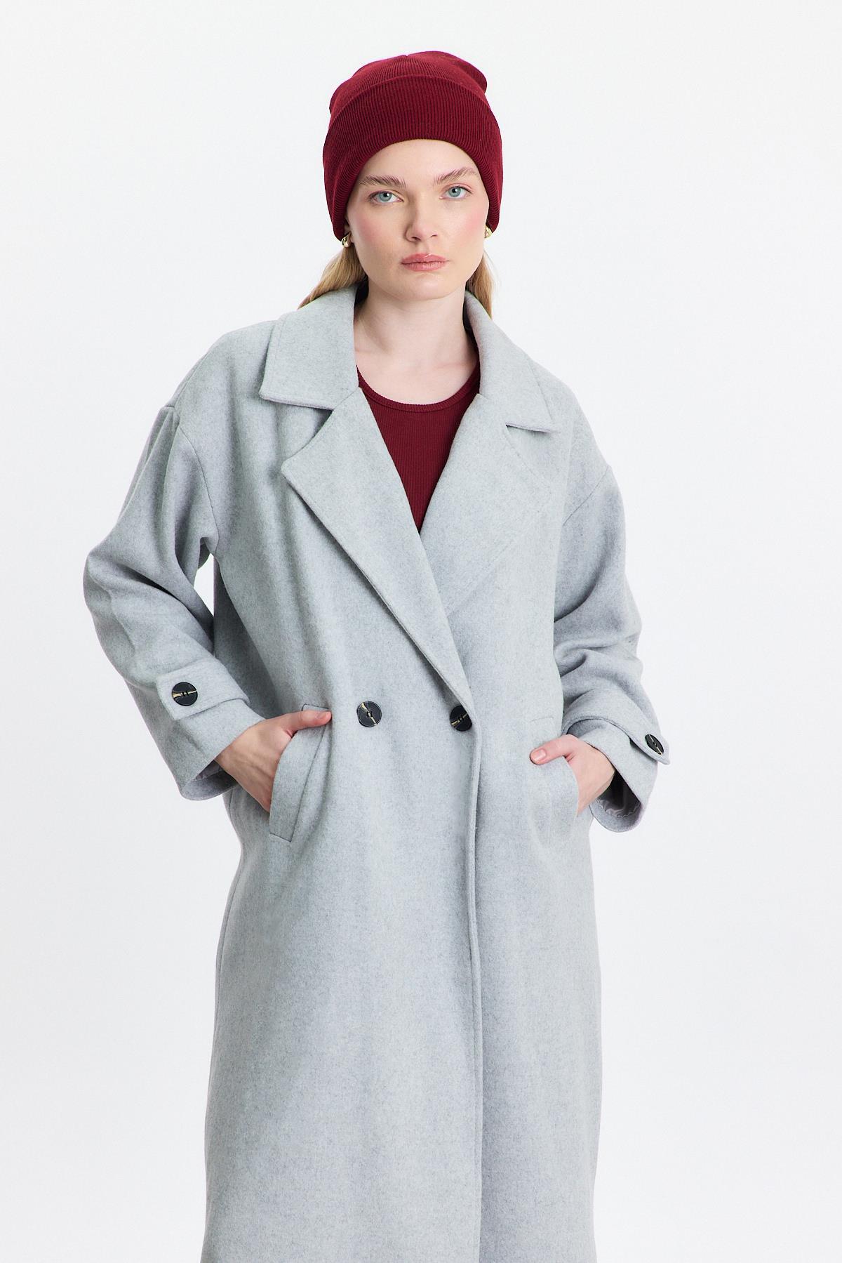 Gri Çift Düğme Cepli Uzun Kaban 3025A