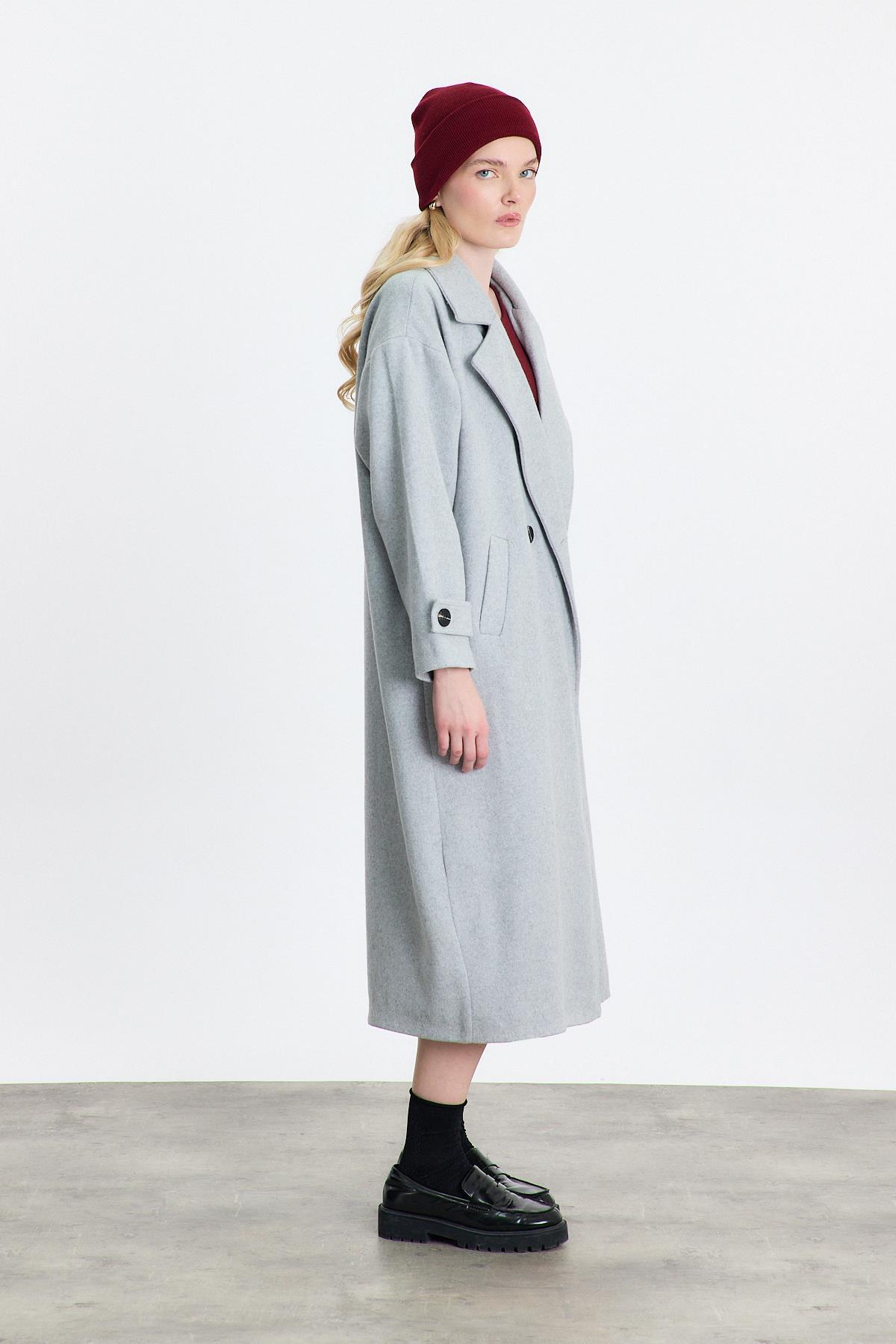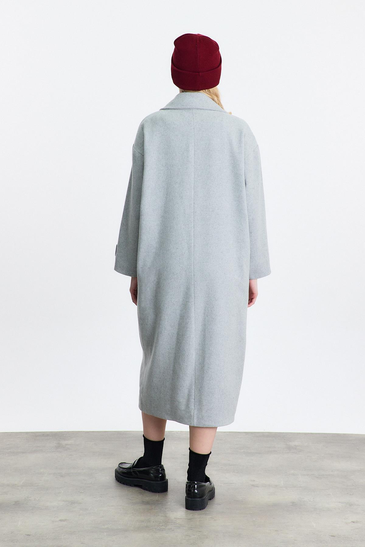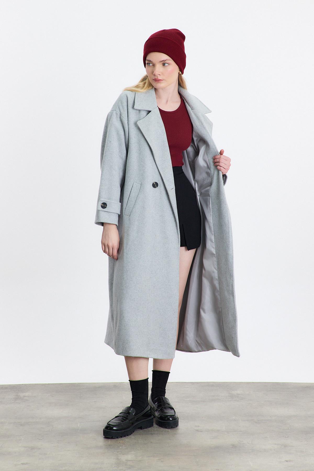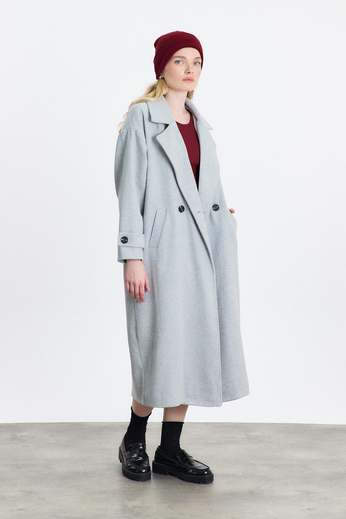 Gri Çift Düğme Cepli Uzun Kaban 3025A