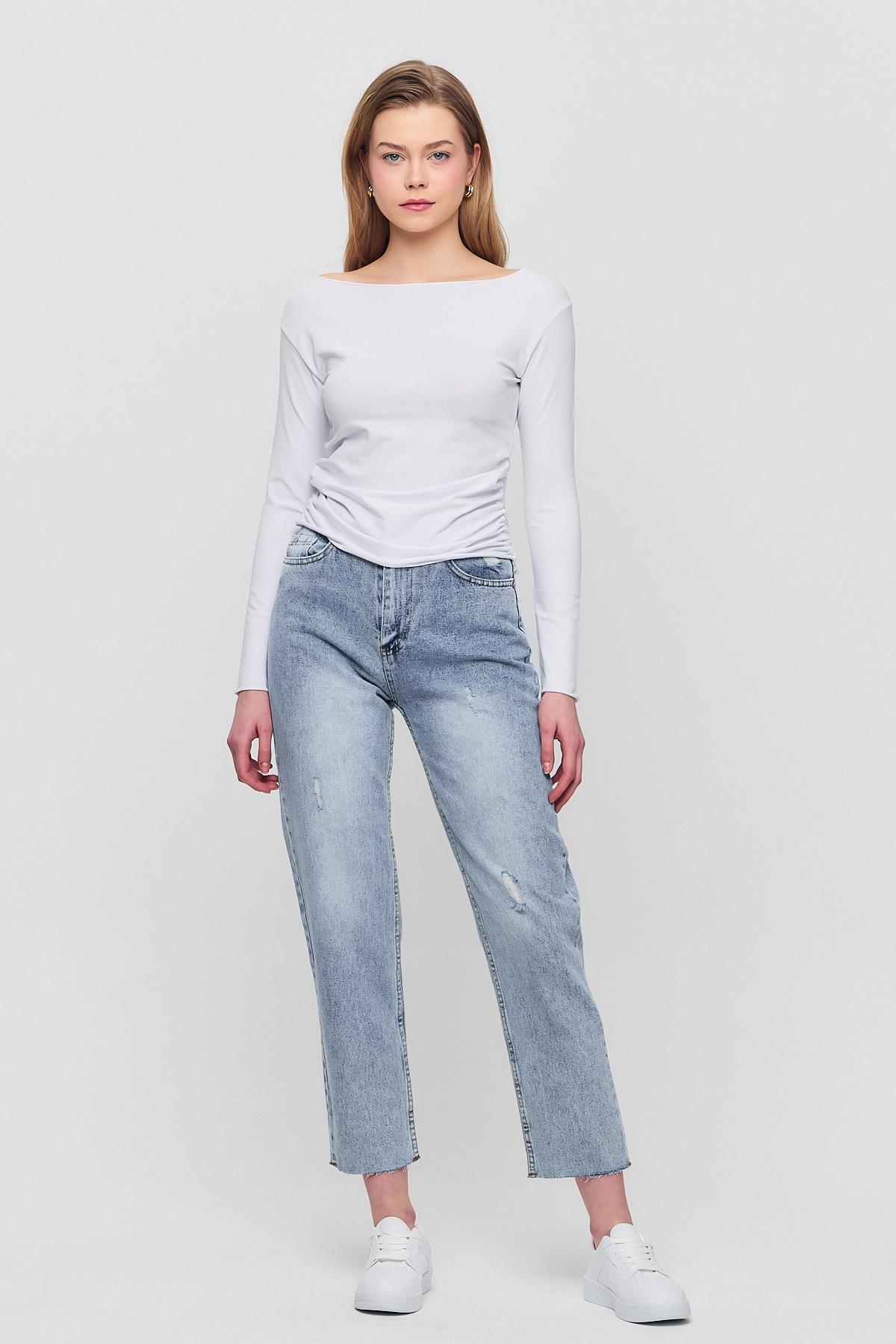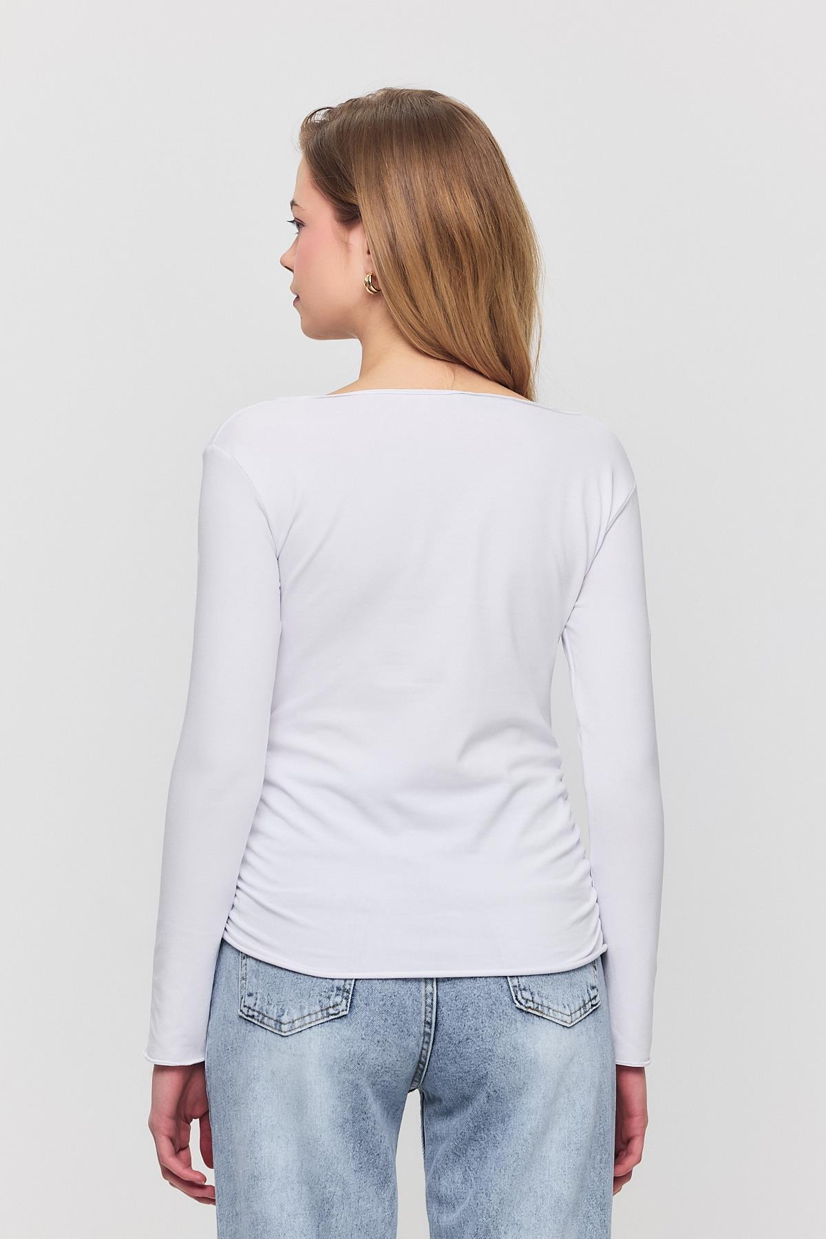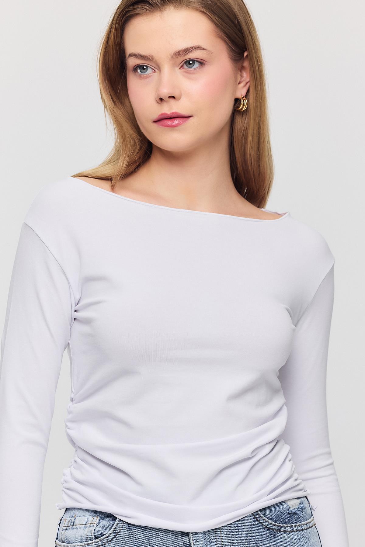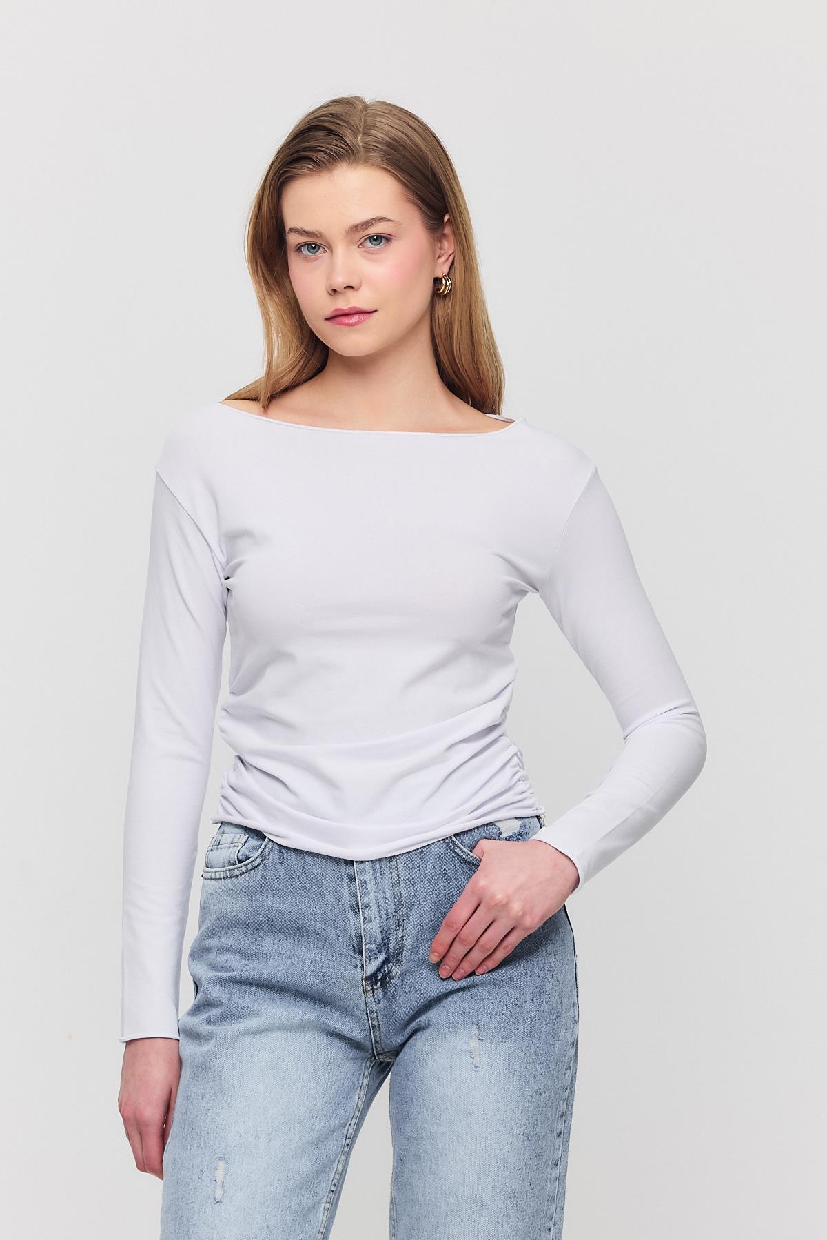 Ekru Yanları Büzgülü Bluz 3027
