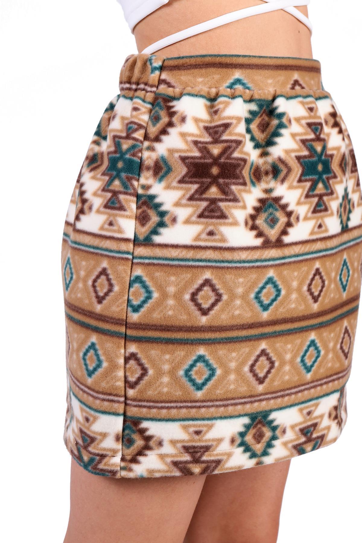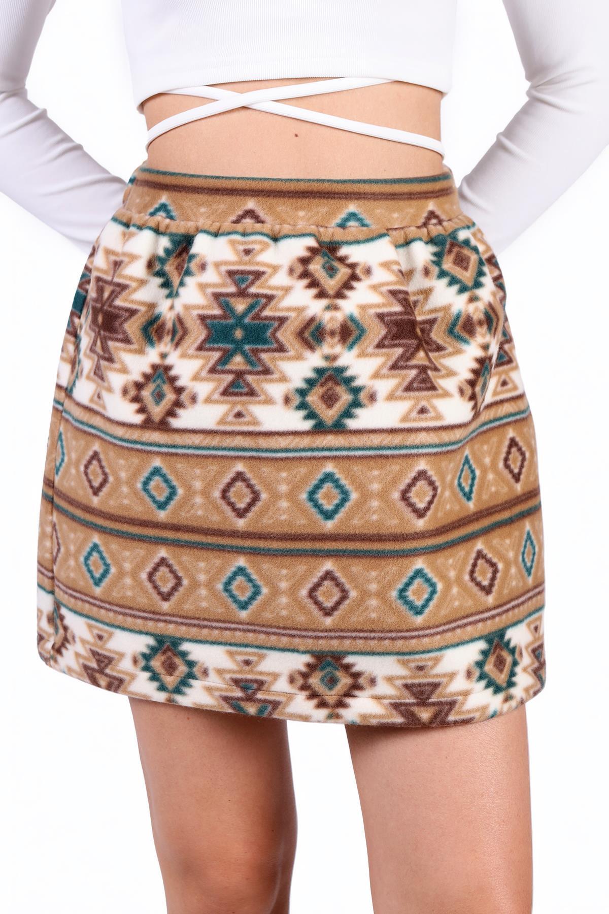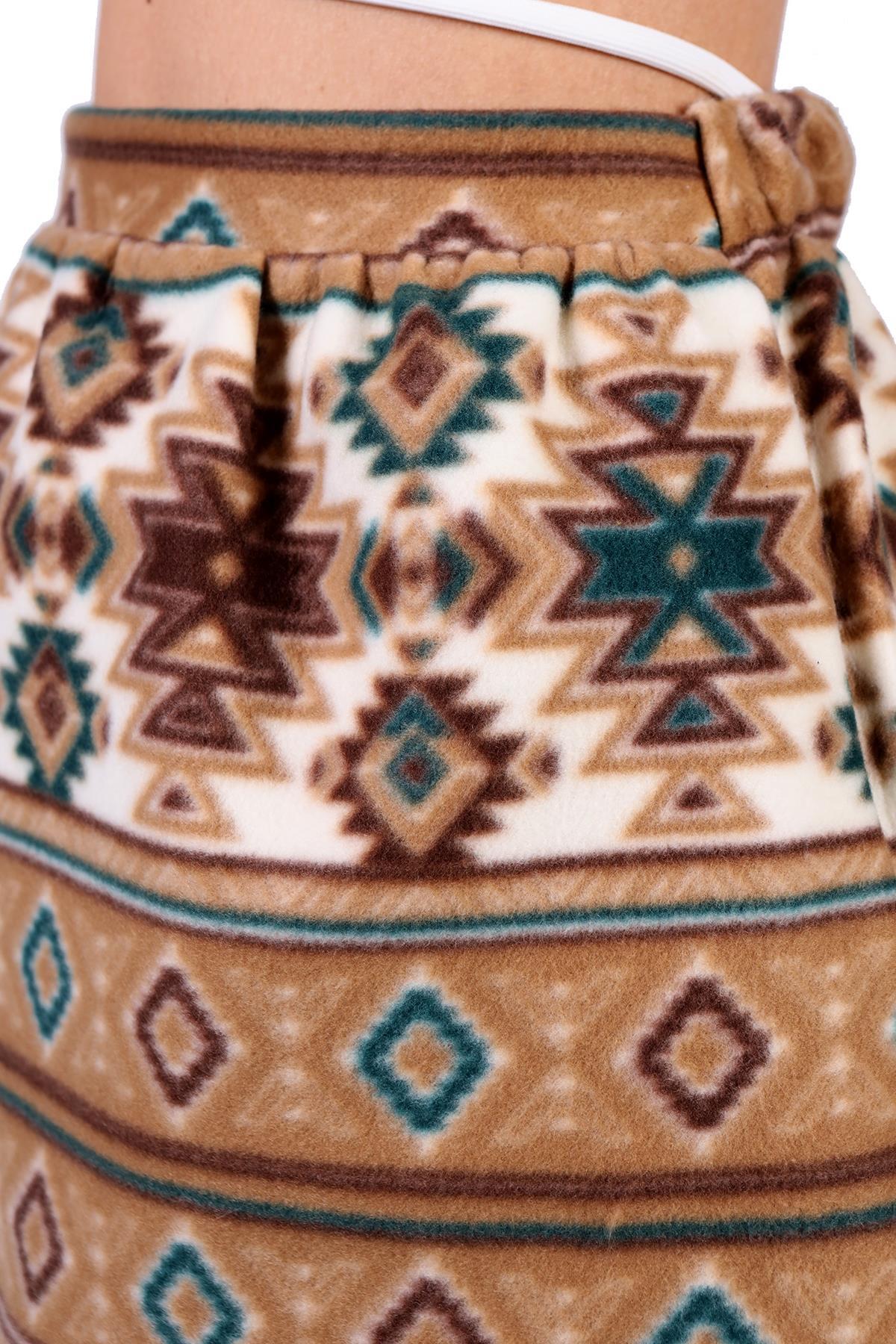 Acı Kahve Desenli Kemerli Etek 1344 - RAYS