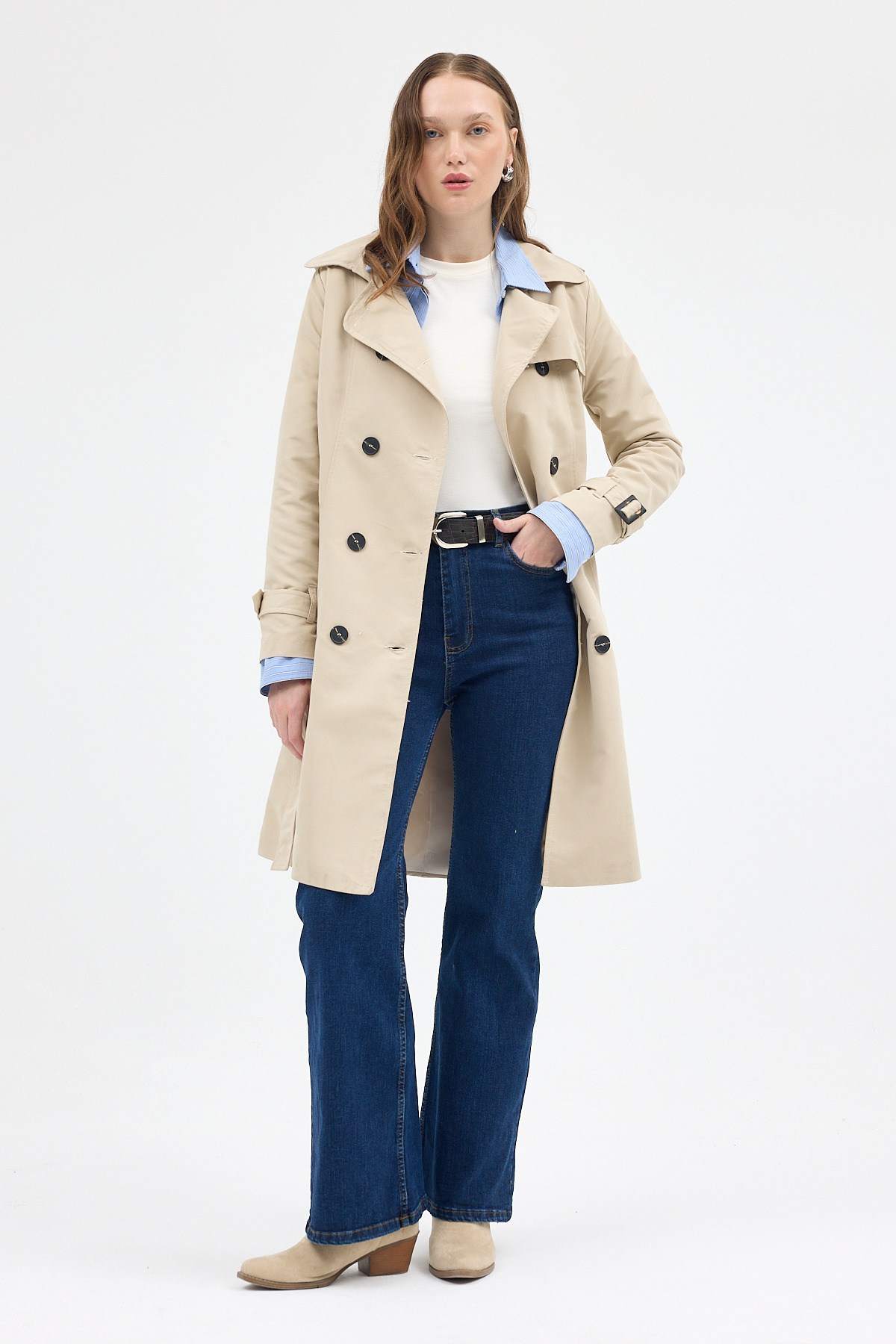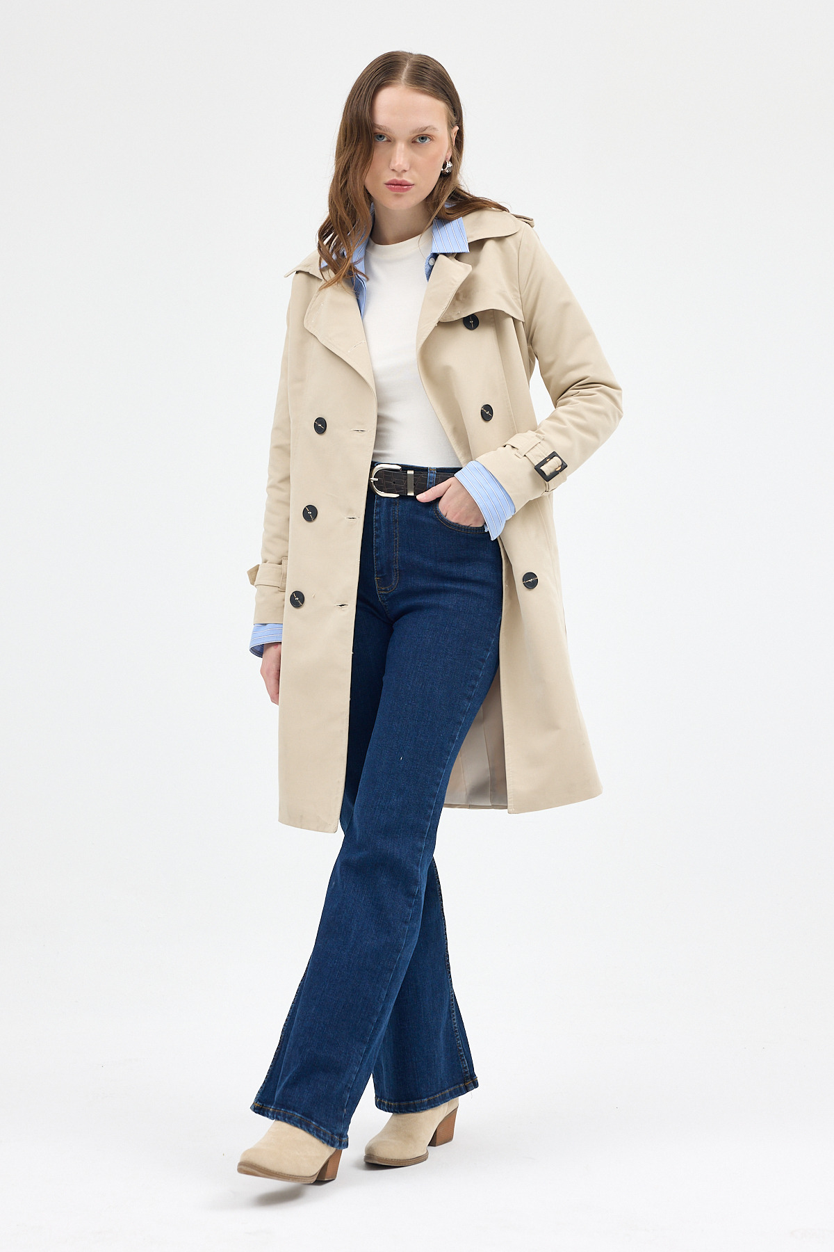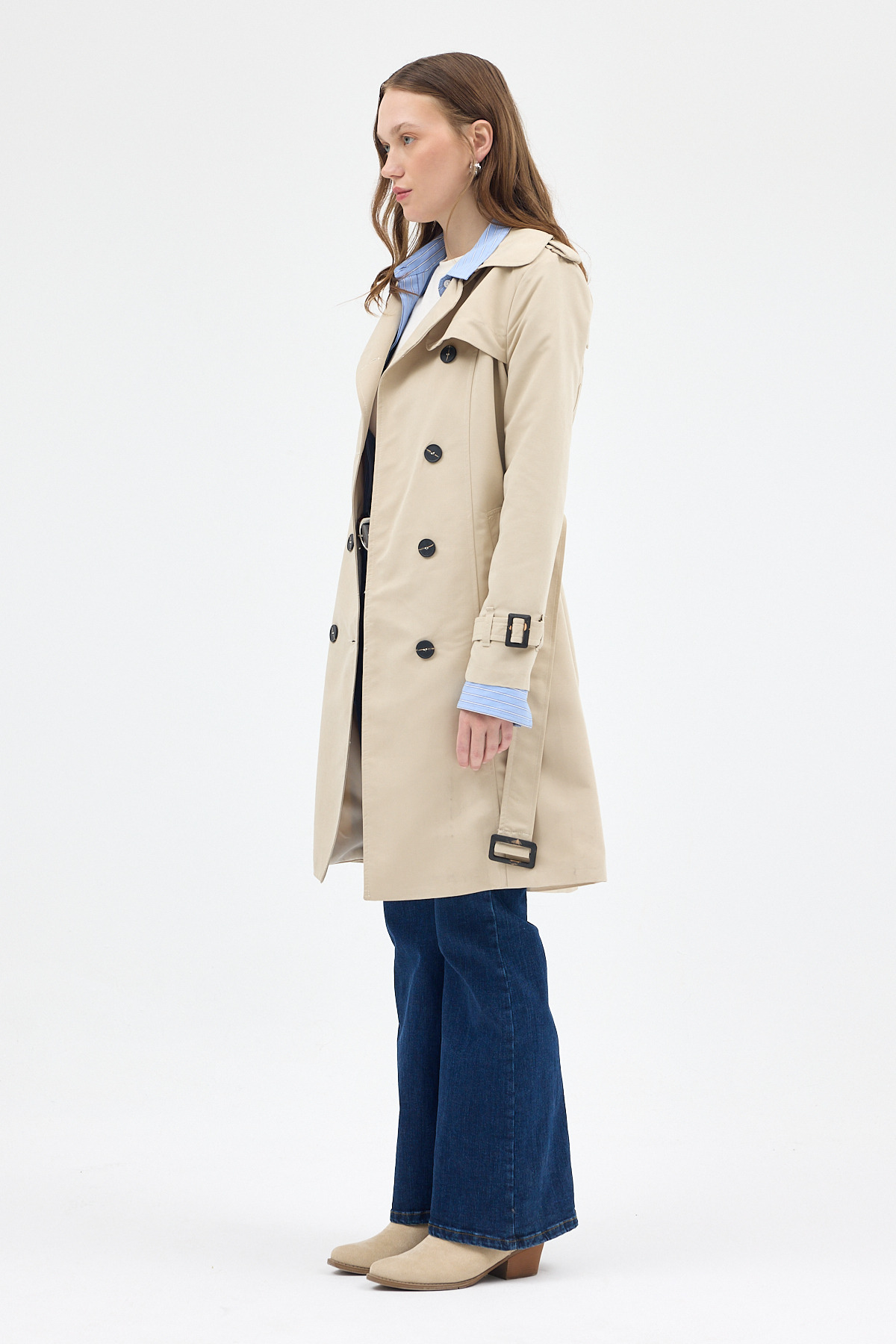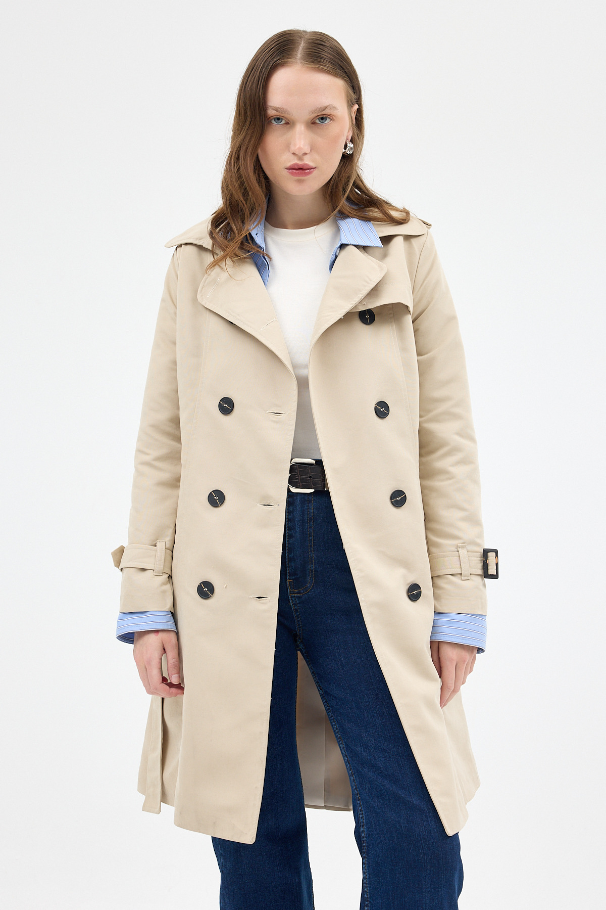 Bej Kruvaze Kuşaklı Kadın Trençkot 3033A