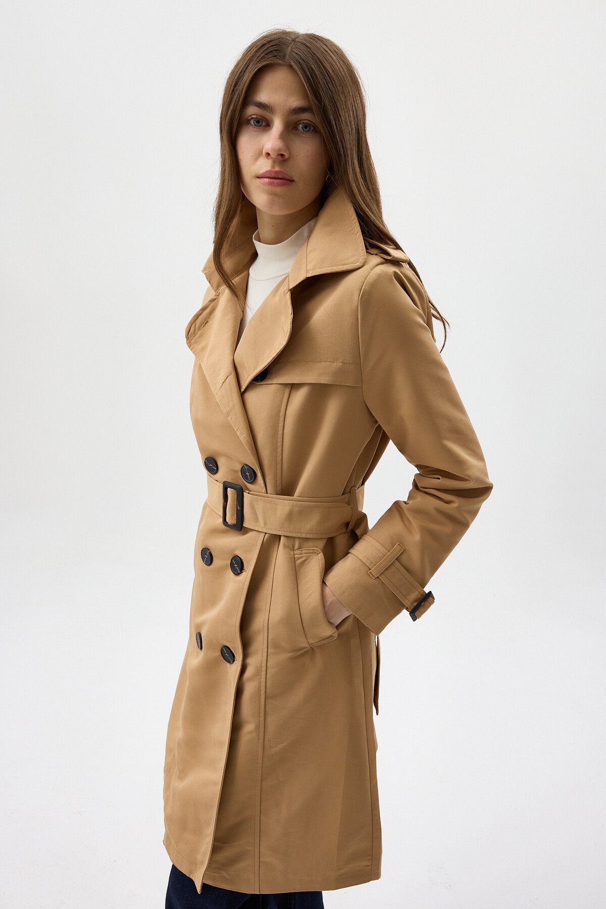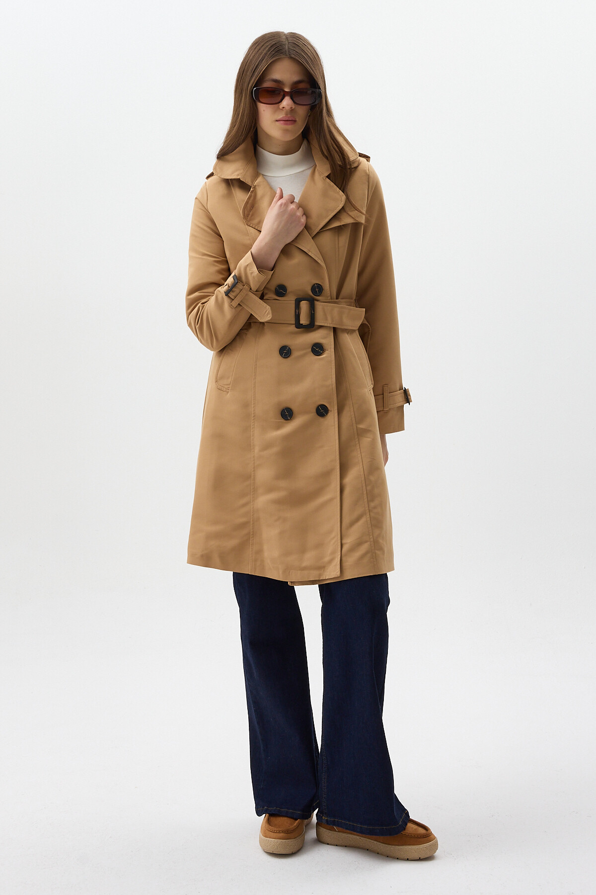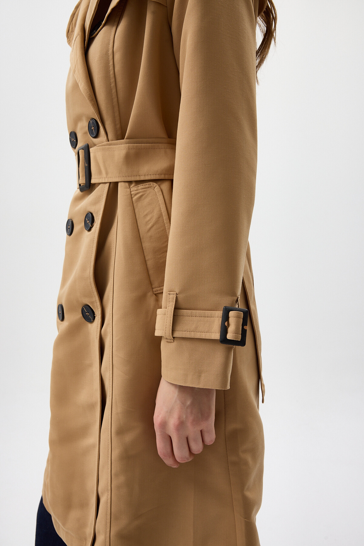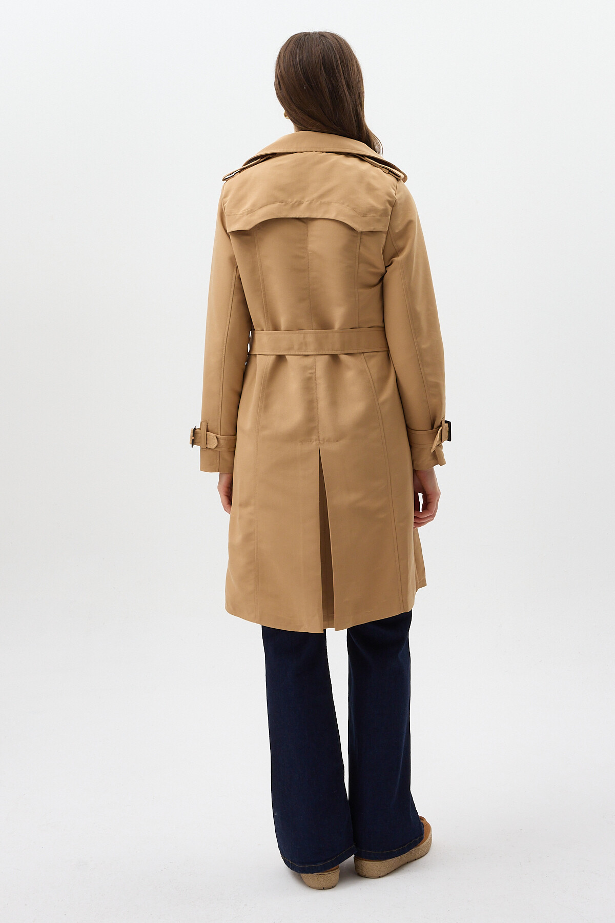 Camel Kruvaze Yaka Bel Bağlamalı Kadın Trençkot 3033A