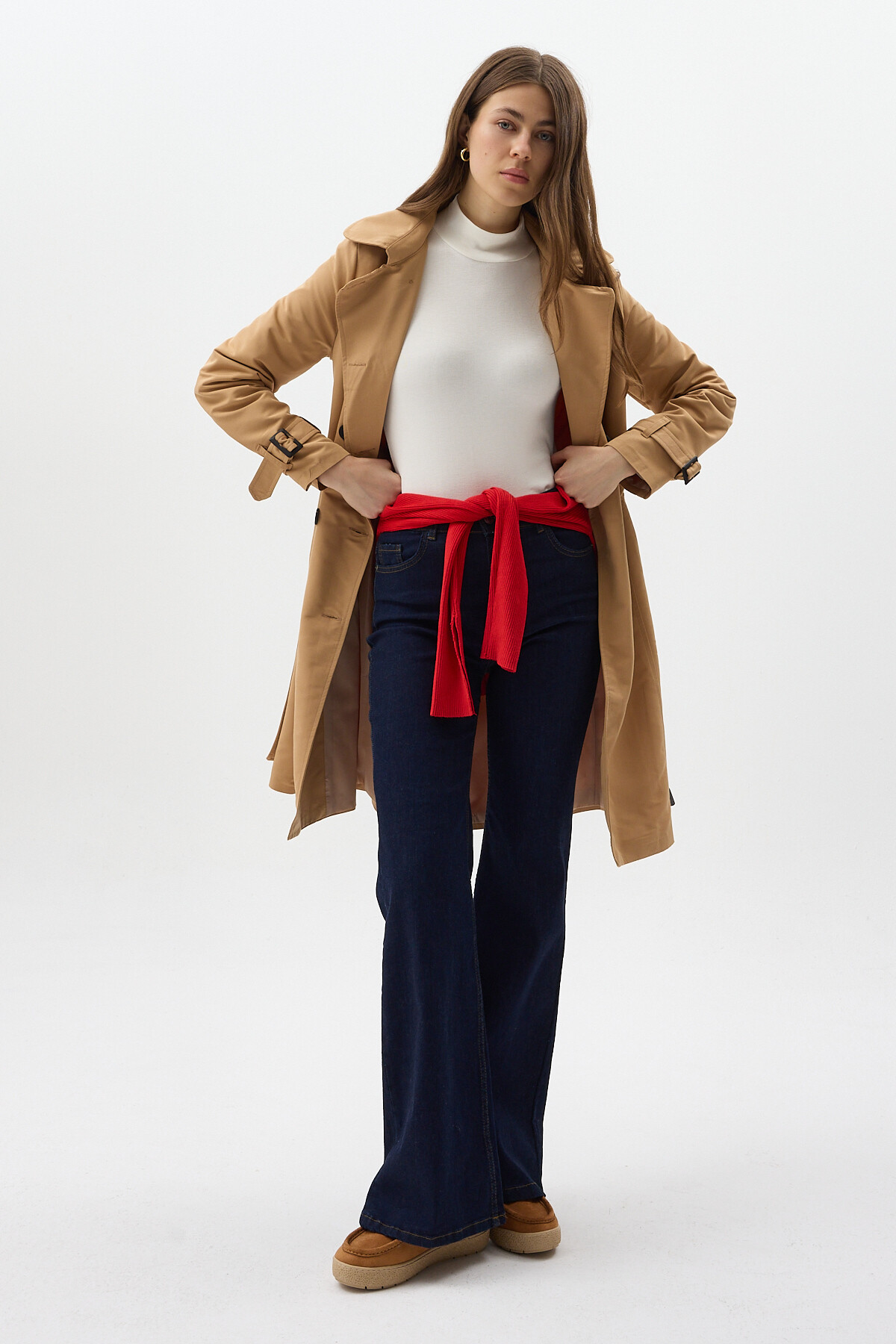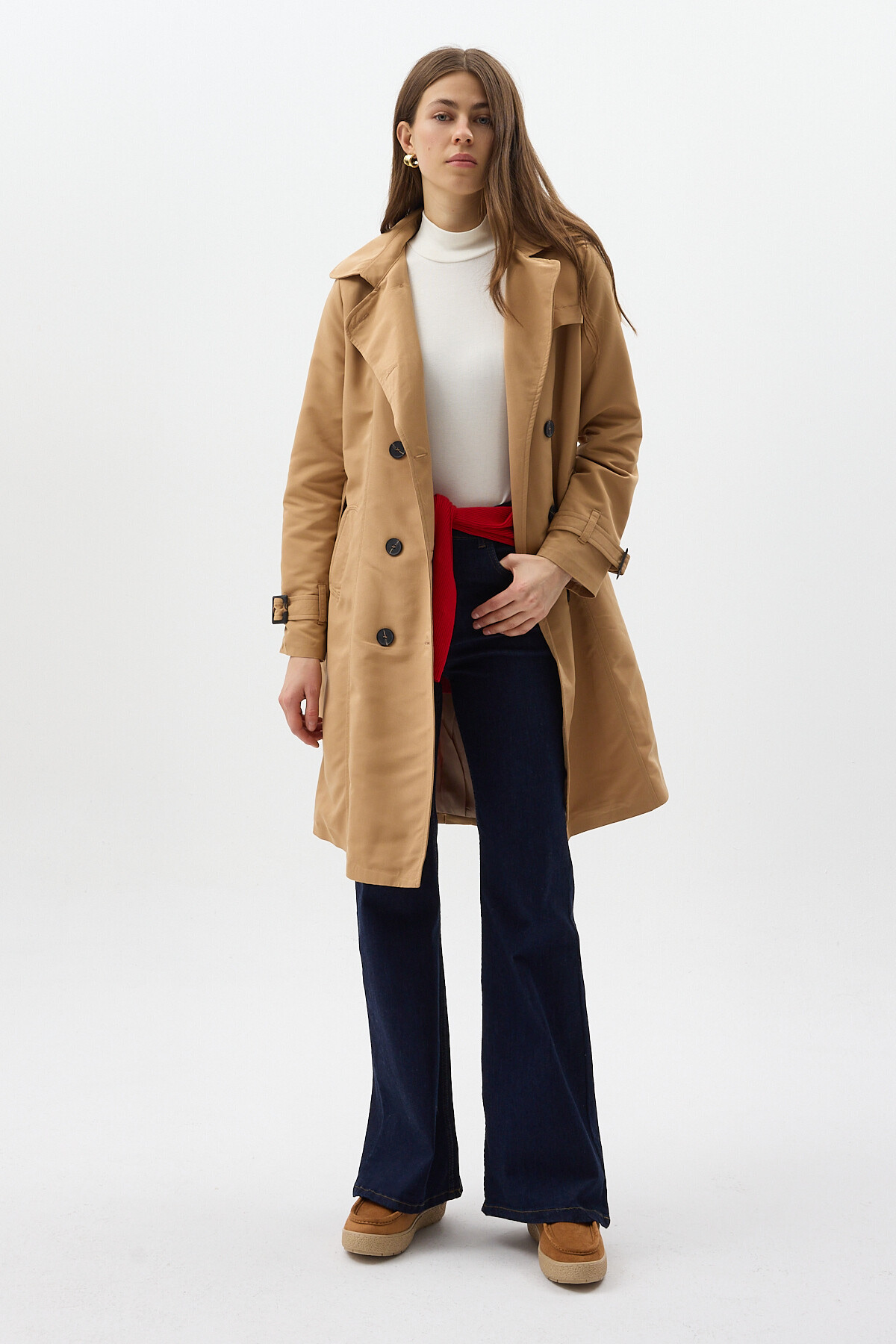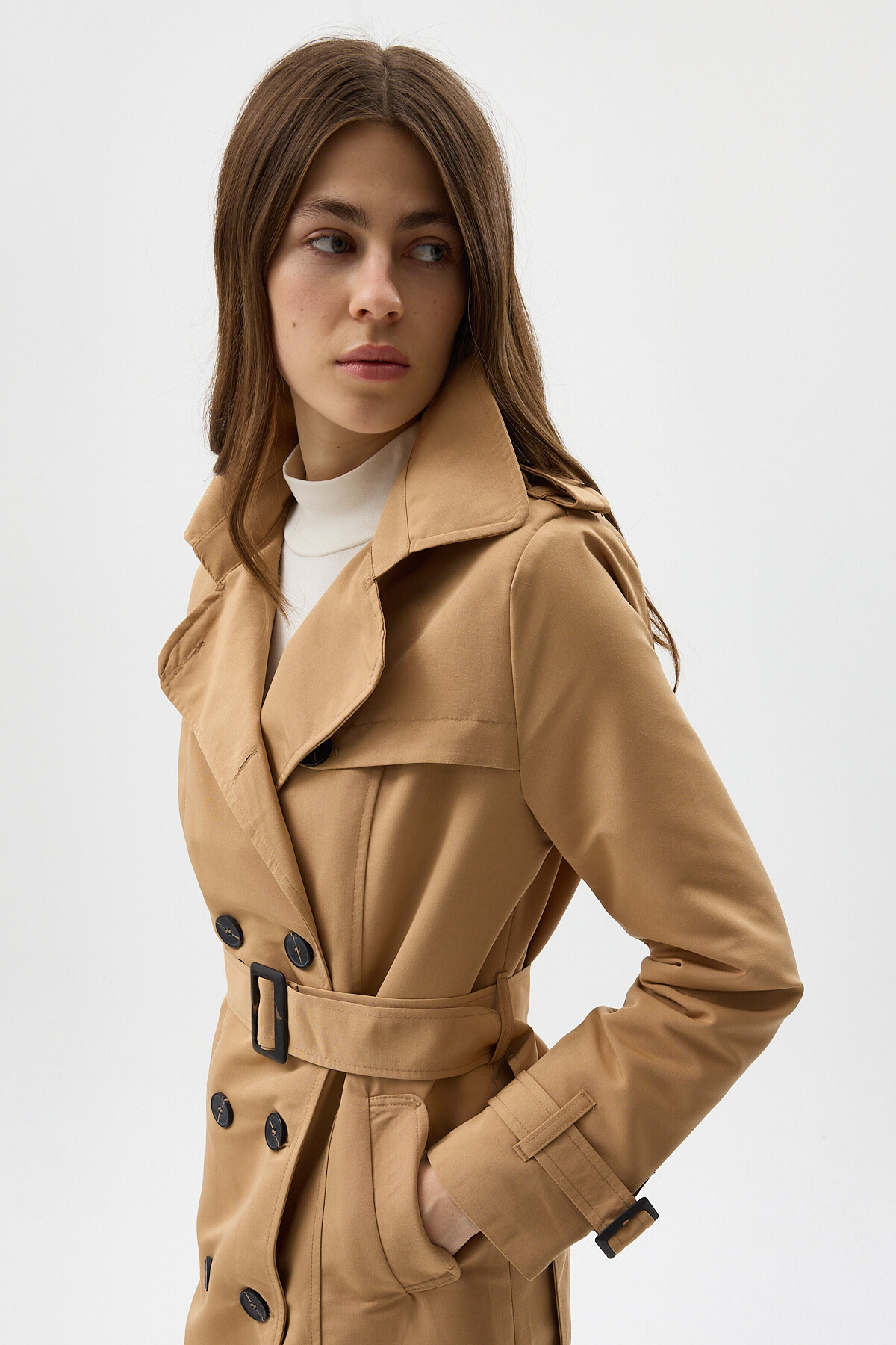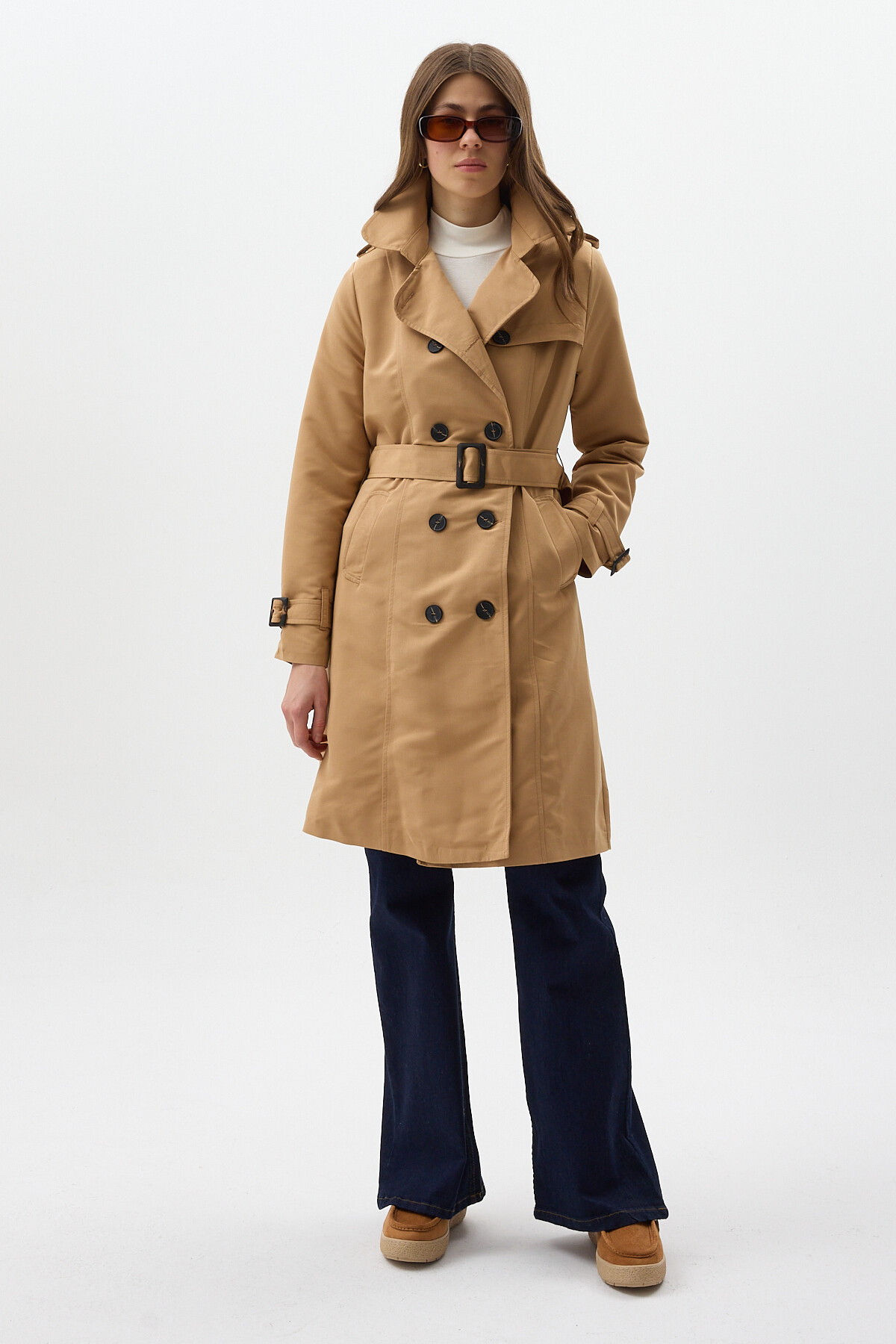 Camel Kruvaze Yaka Bel Bağlamalı Kadın Trençkot 3033A