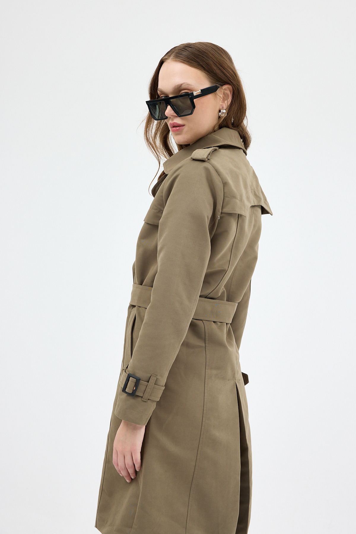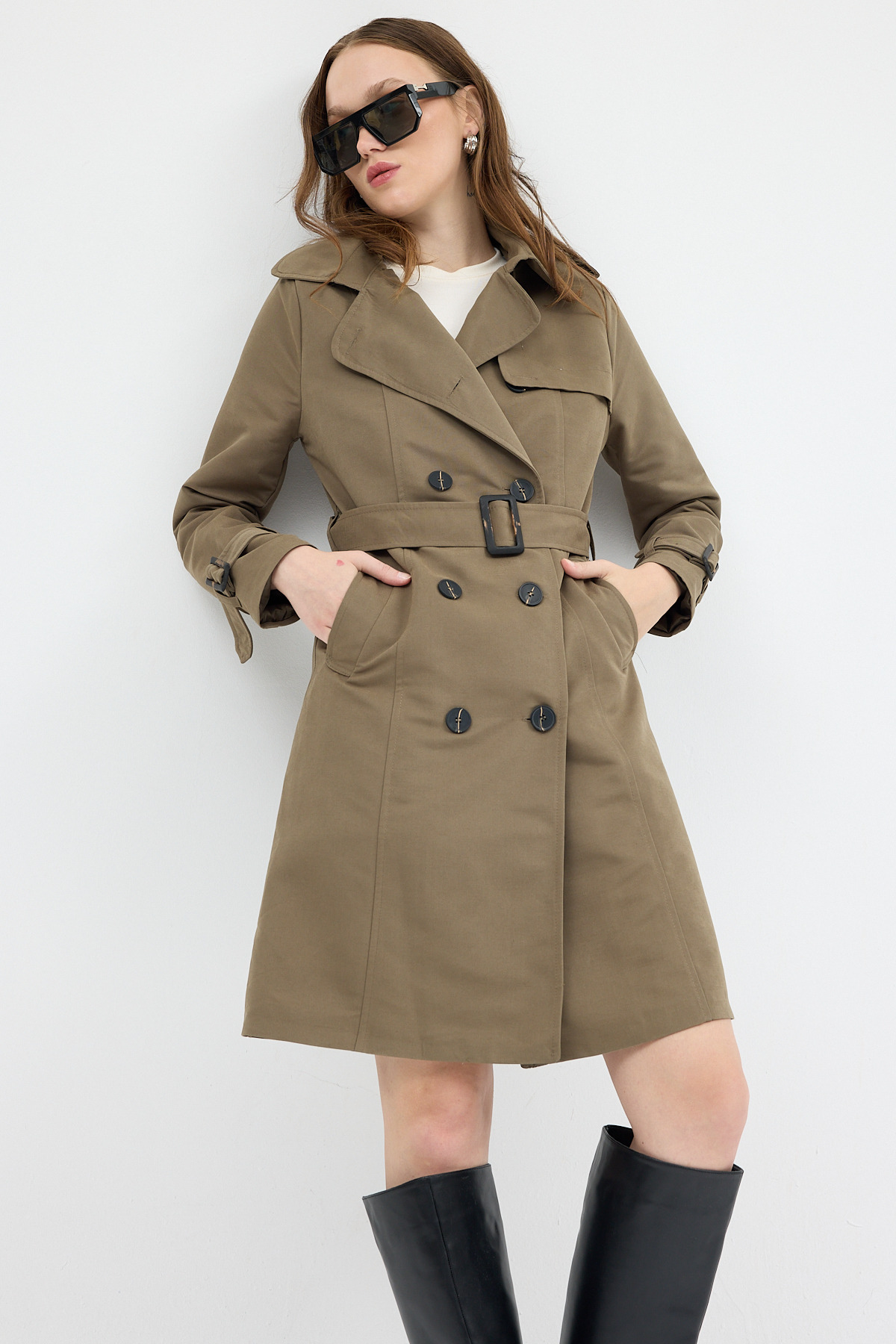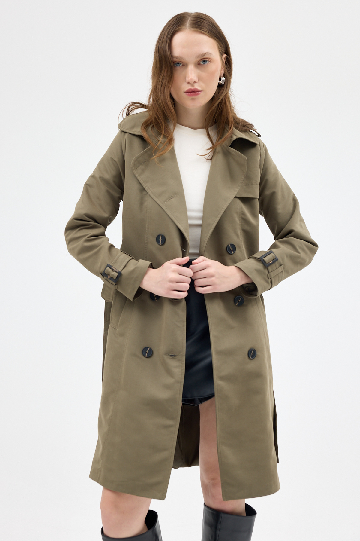 Haki Kruvaze Kuşaklı Kadın Trençkot 3033A