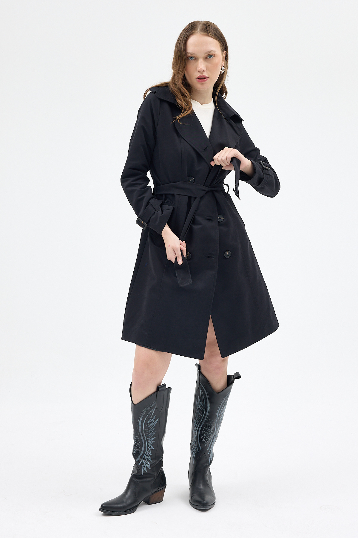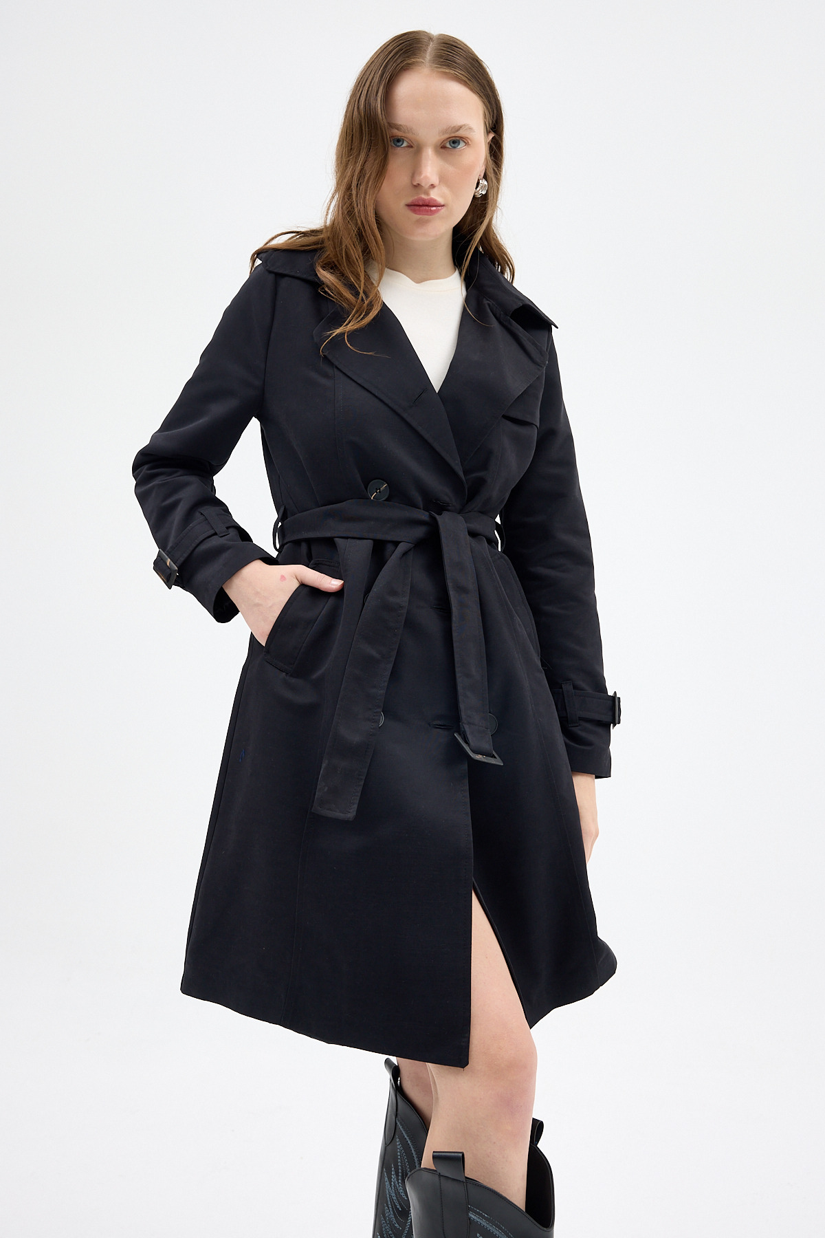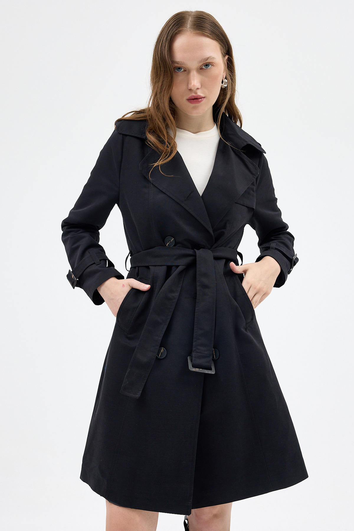 Siyah Kruvaze Kuşaklı Kadın Trençkot 3033A