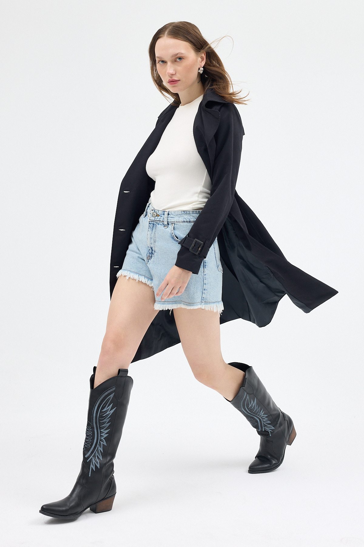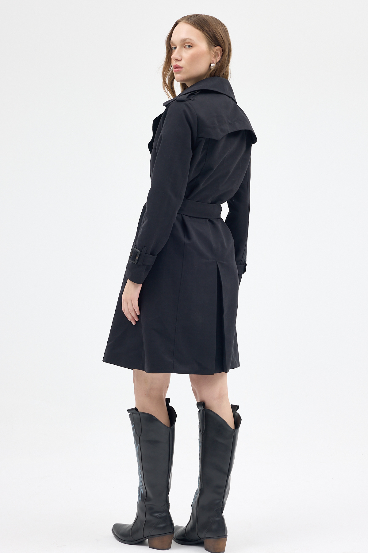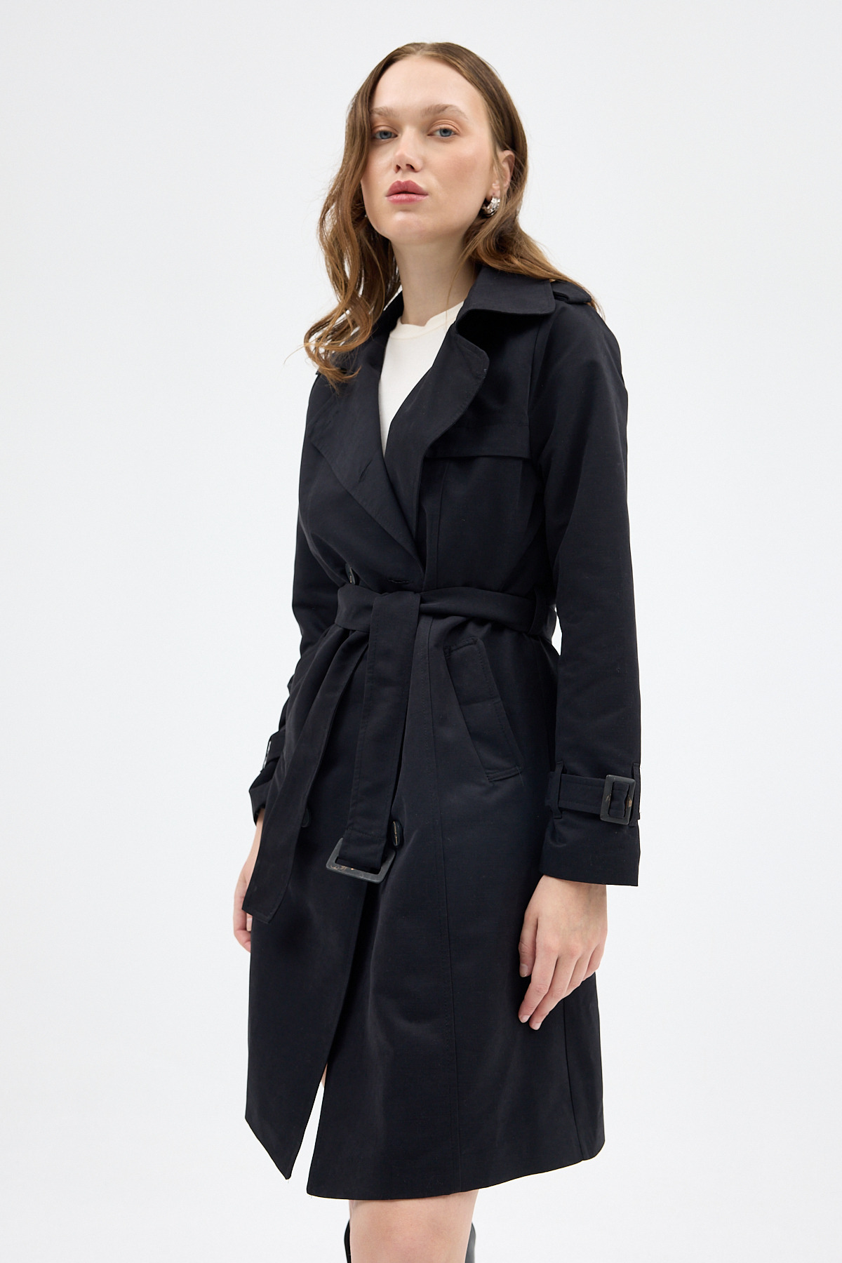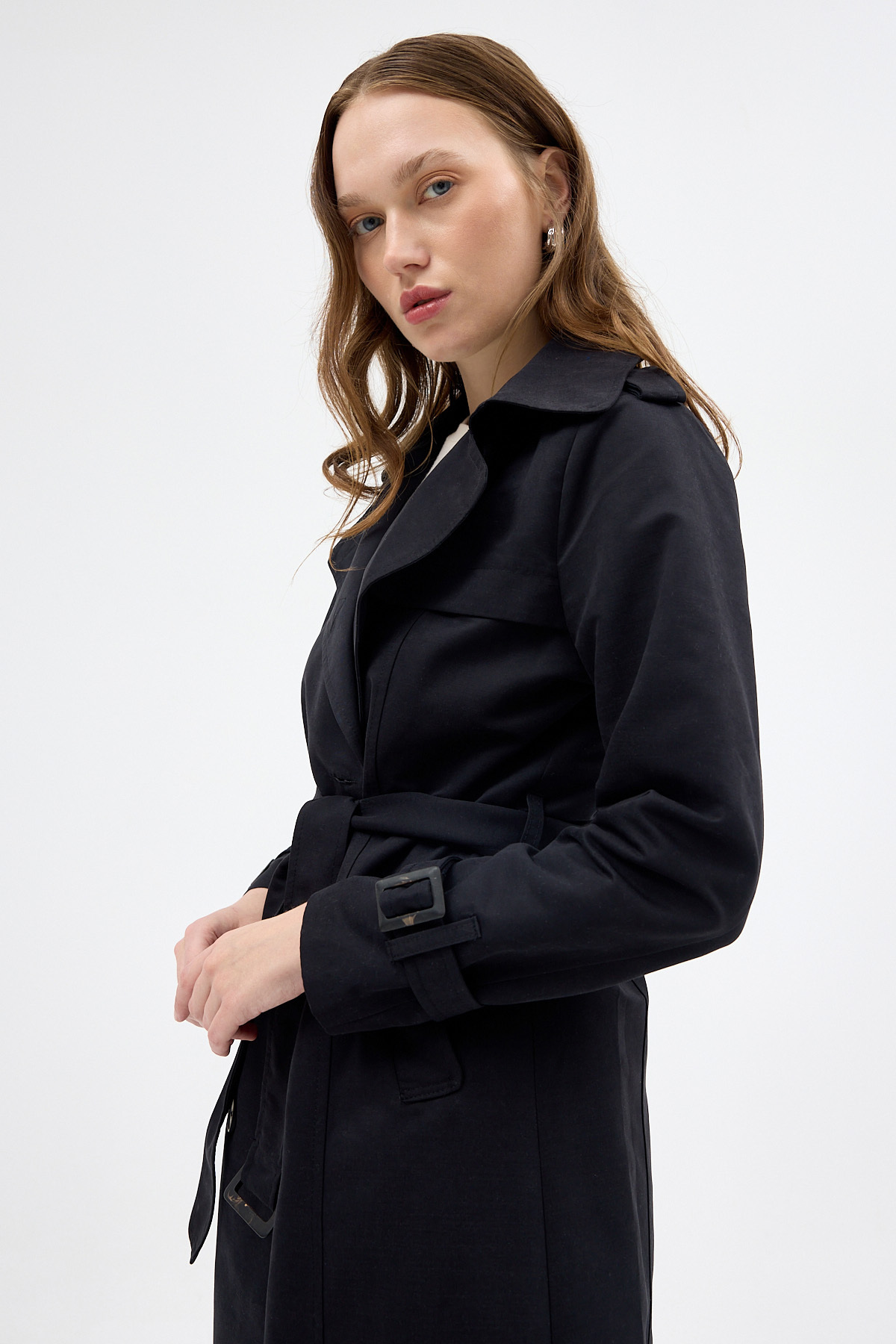 Siyah Kruvaze Kuşaklı Kadın Trençkot 3033A