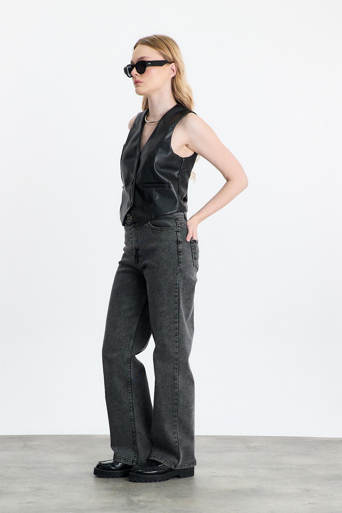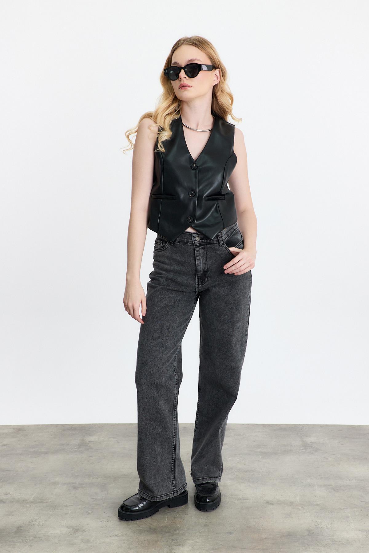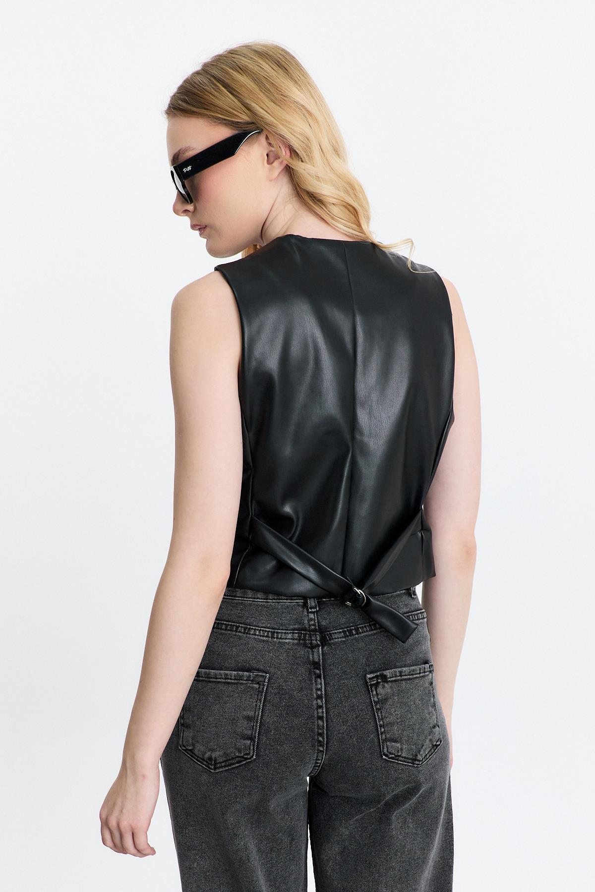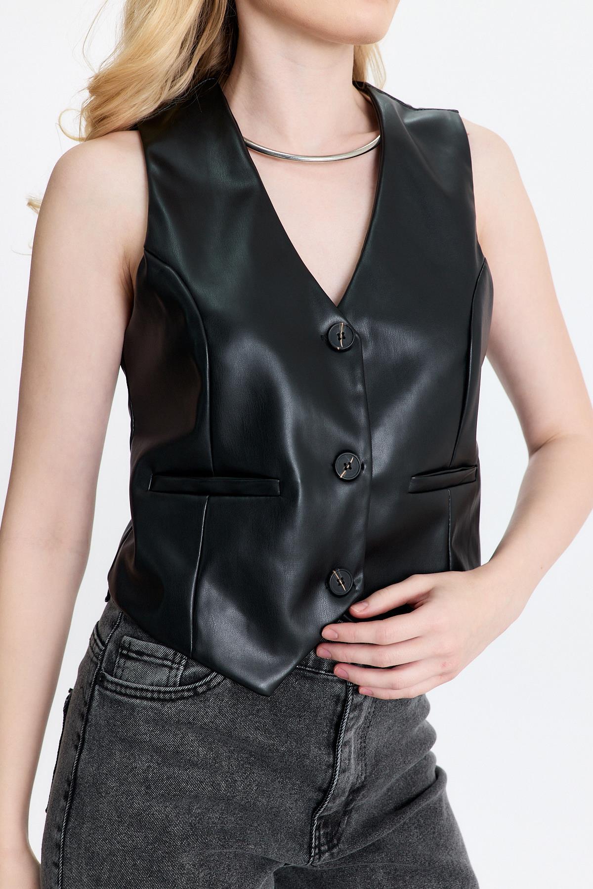 Siyah Sahte Cep Detay Yelek 3040A