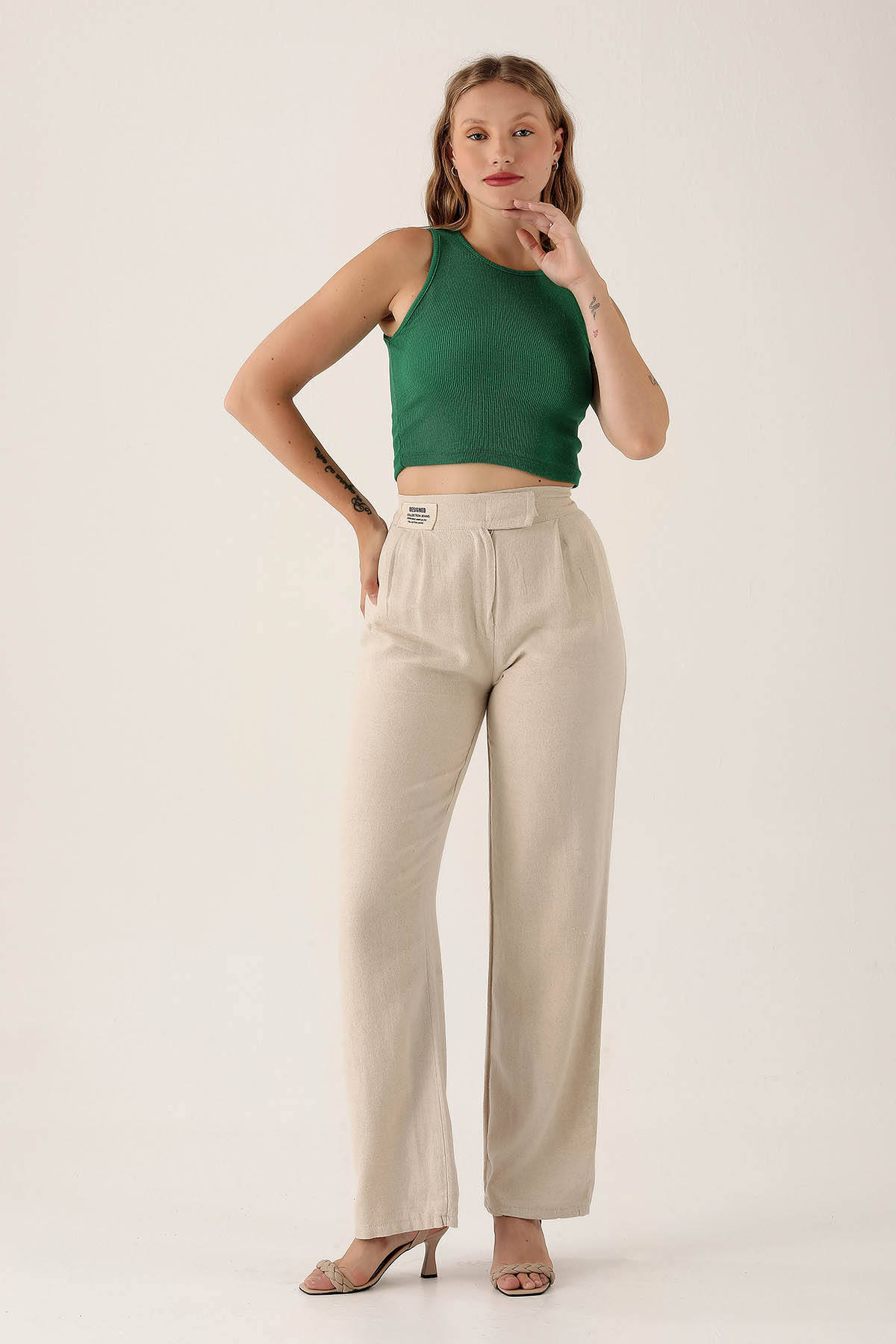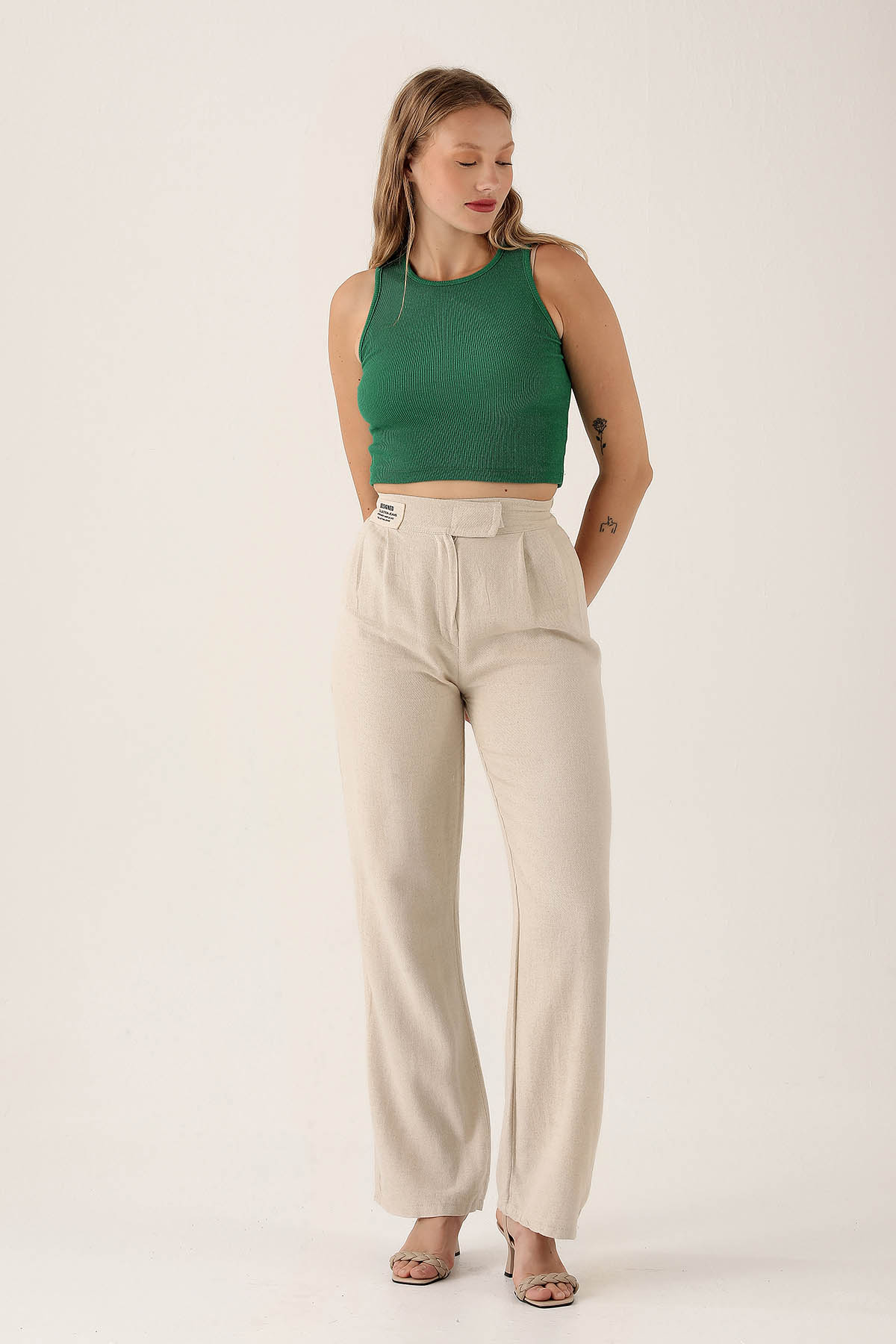 Natural Bel Bantlı Palazzo Pantolon 3044