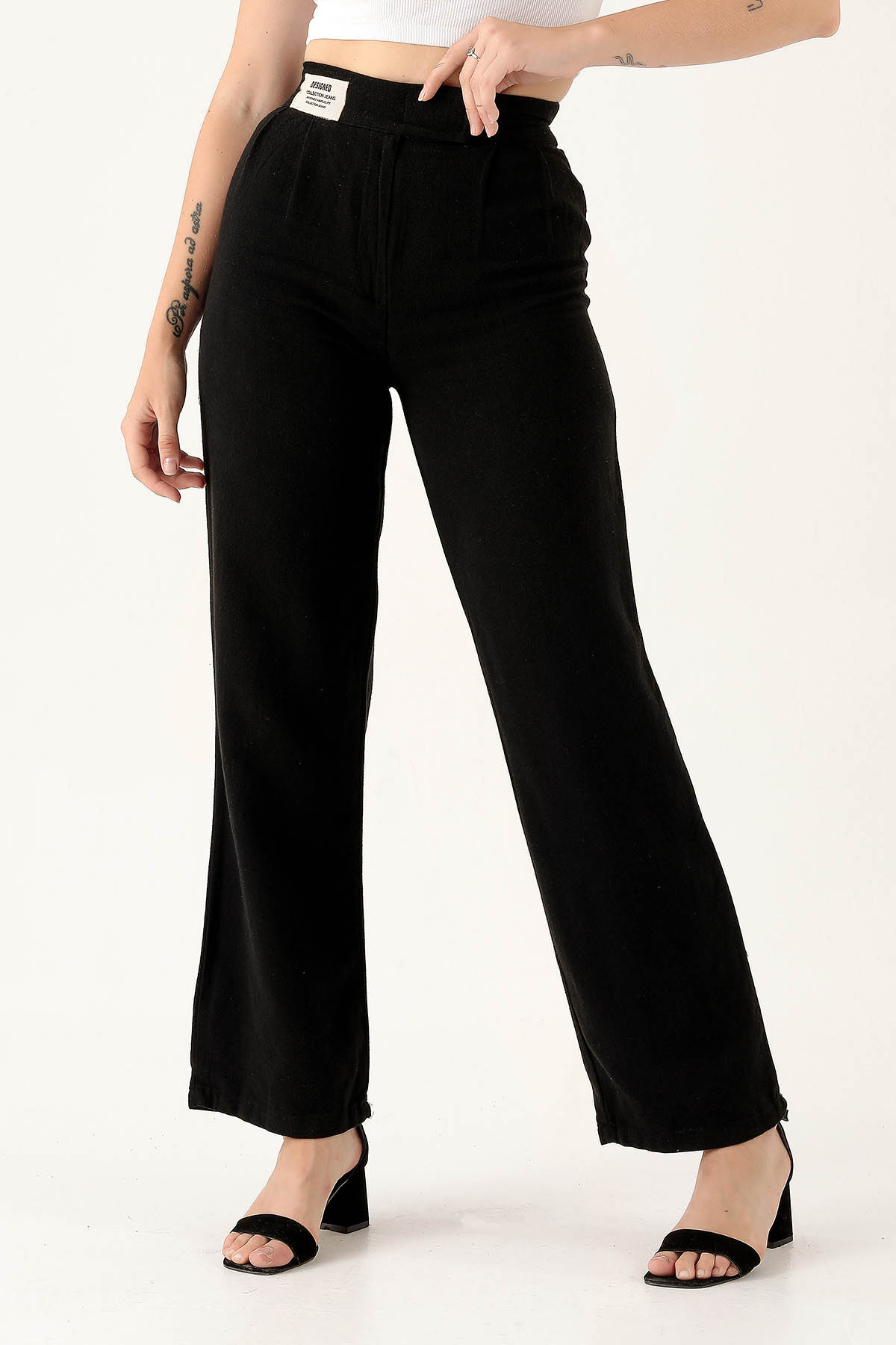 Siyah Pileli Geniş Paça Pantolon 3867 - RAYS Siyah Pileli Geniş Paça Pantolon 3867 - RAYS (1)