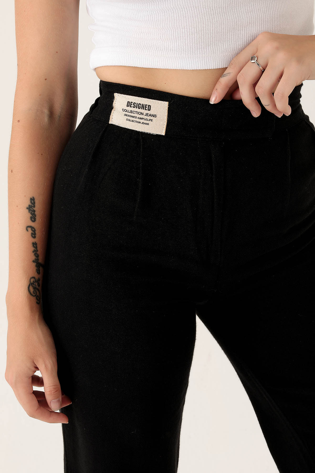 Siyah Pileli Geniş Paça Pantolon 3867