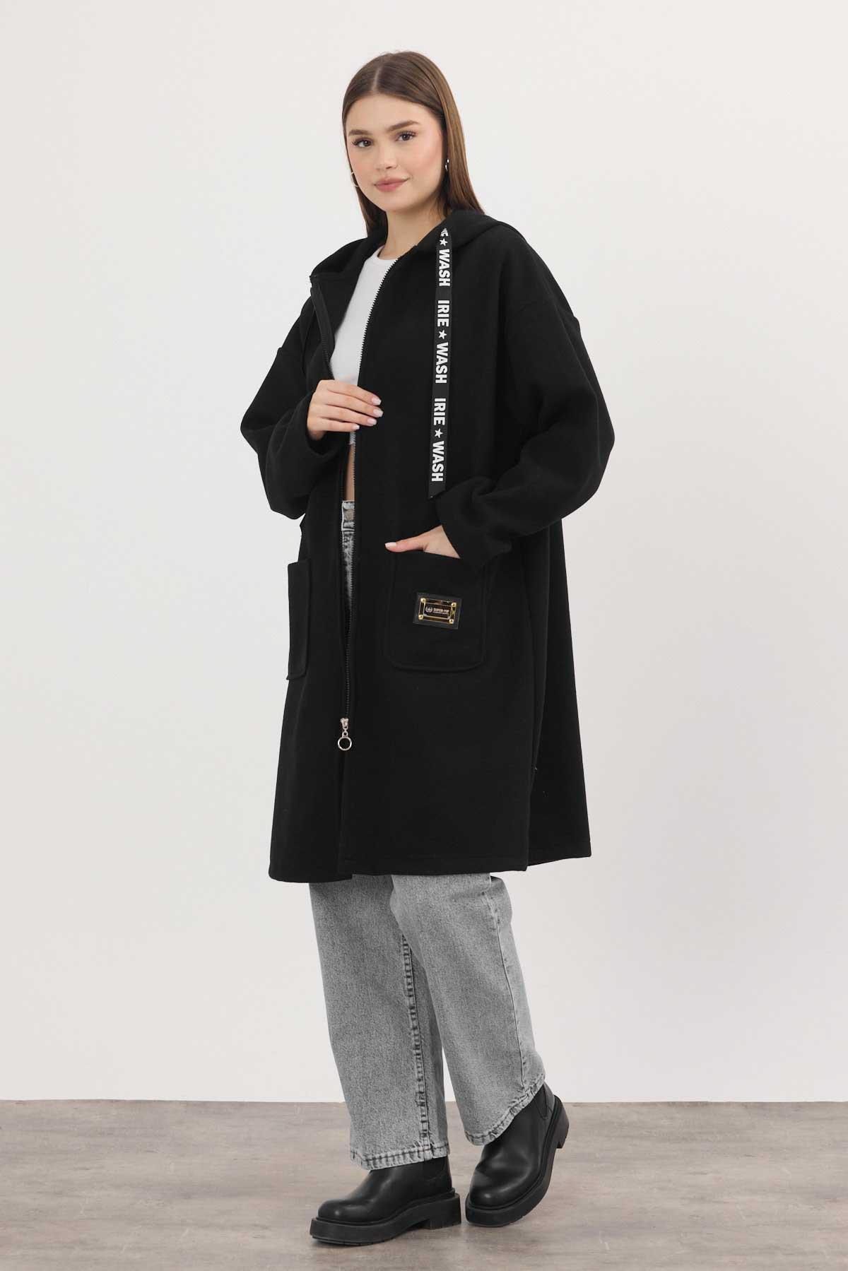 Siyah Astarsız Kaşe Hırka 3049A