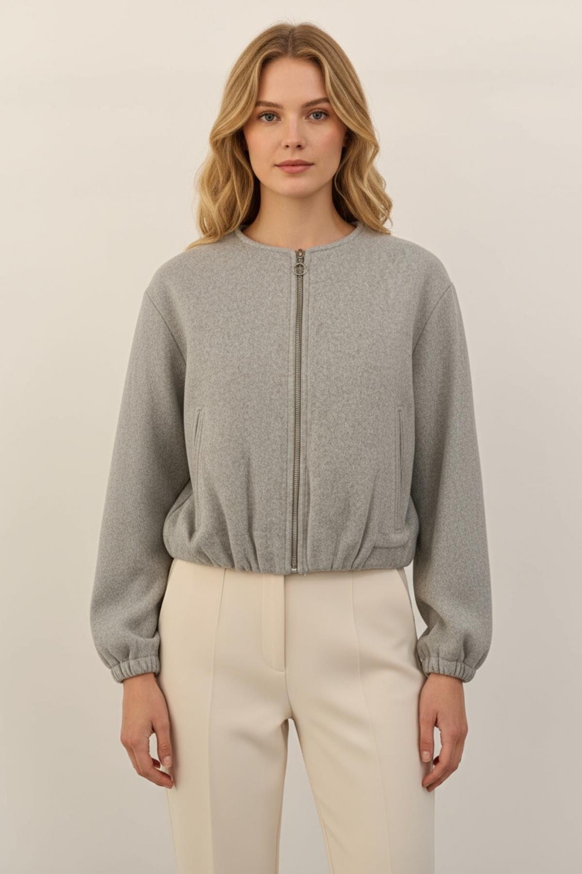 3053A Fermuarlı Kısa Astarlı Ceket Gri