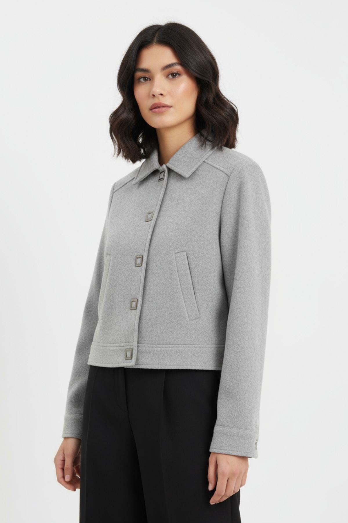 8069A Cepli Düğmeli Kaşe Ceket Gri