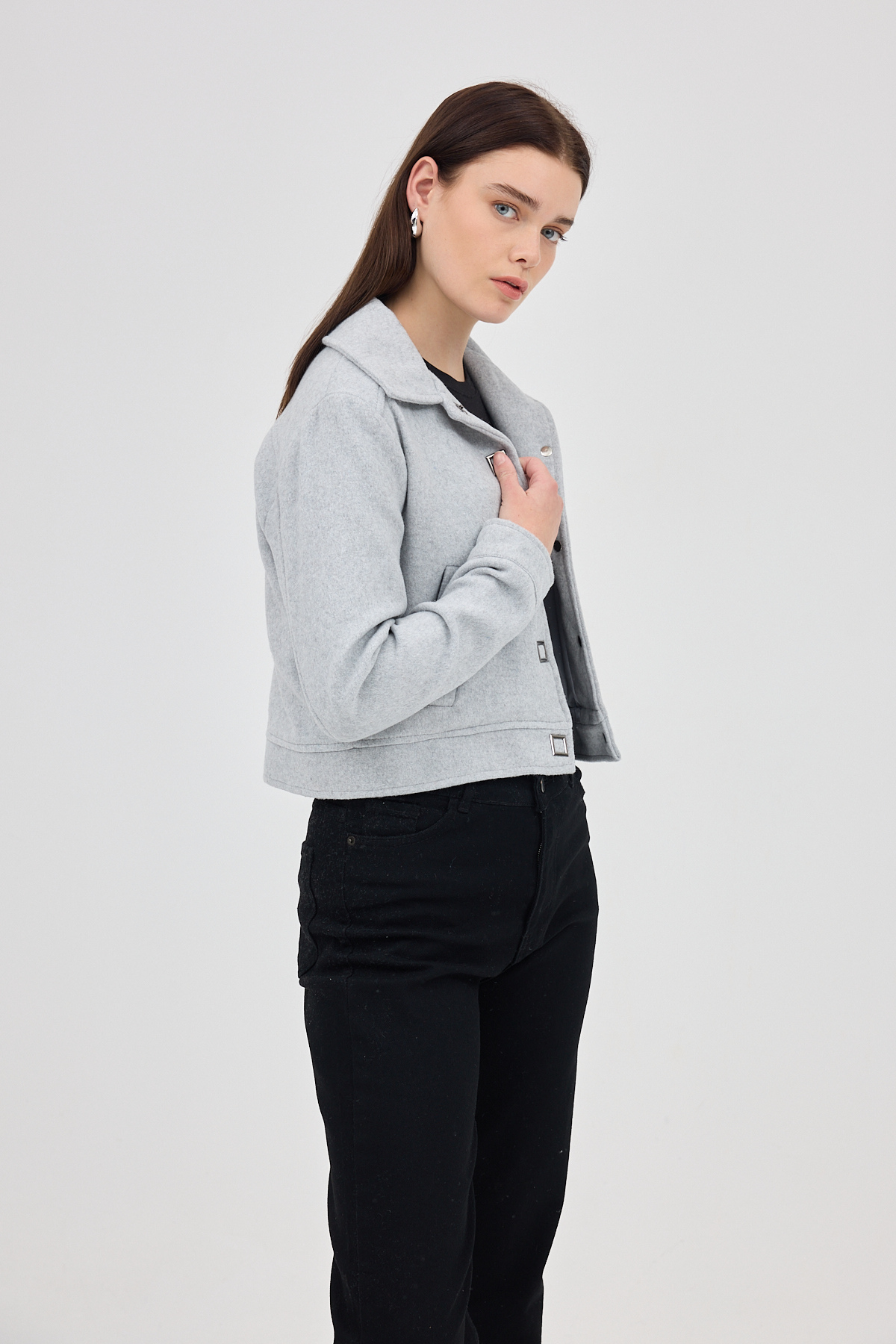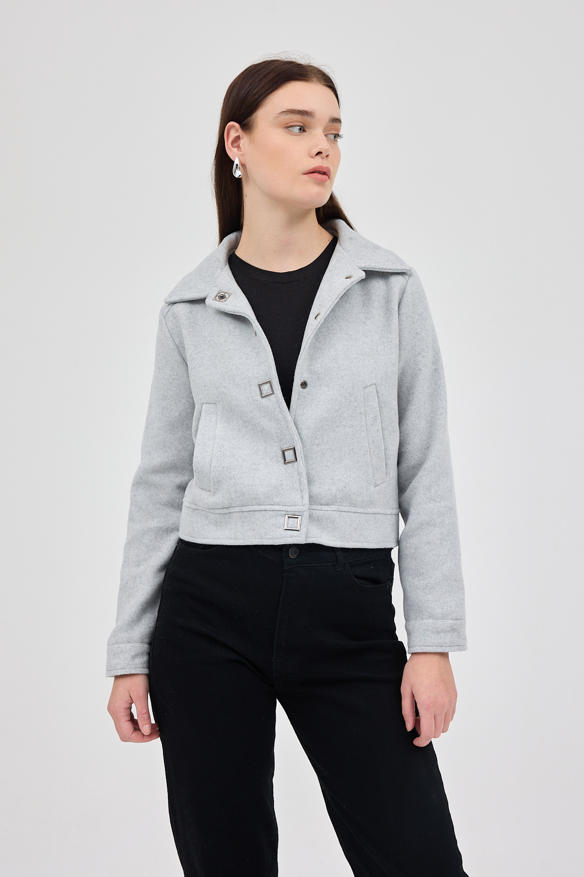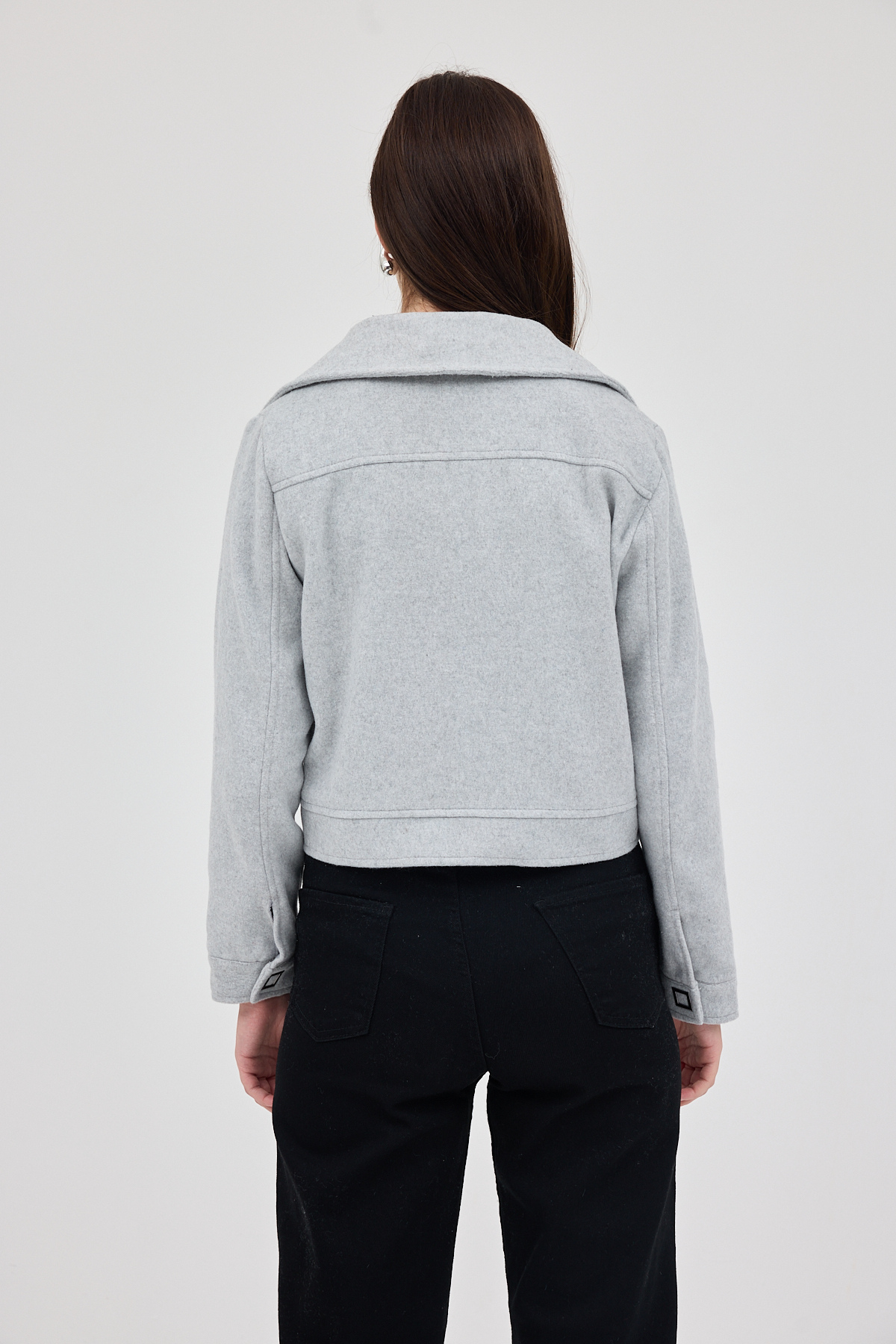 Gri Kısa Astarlı Kaşe Kadın Ceket 3055A