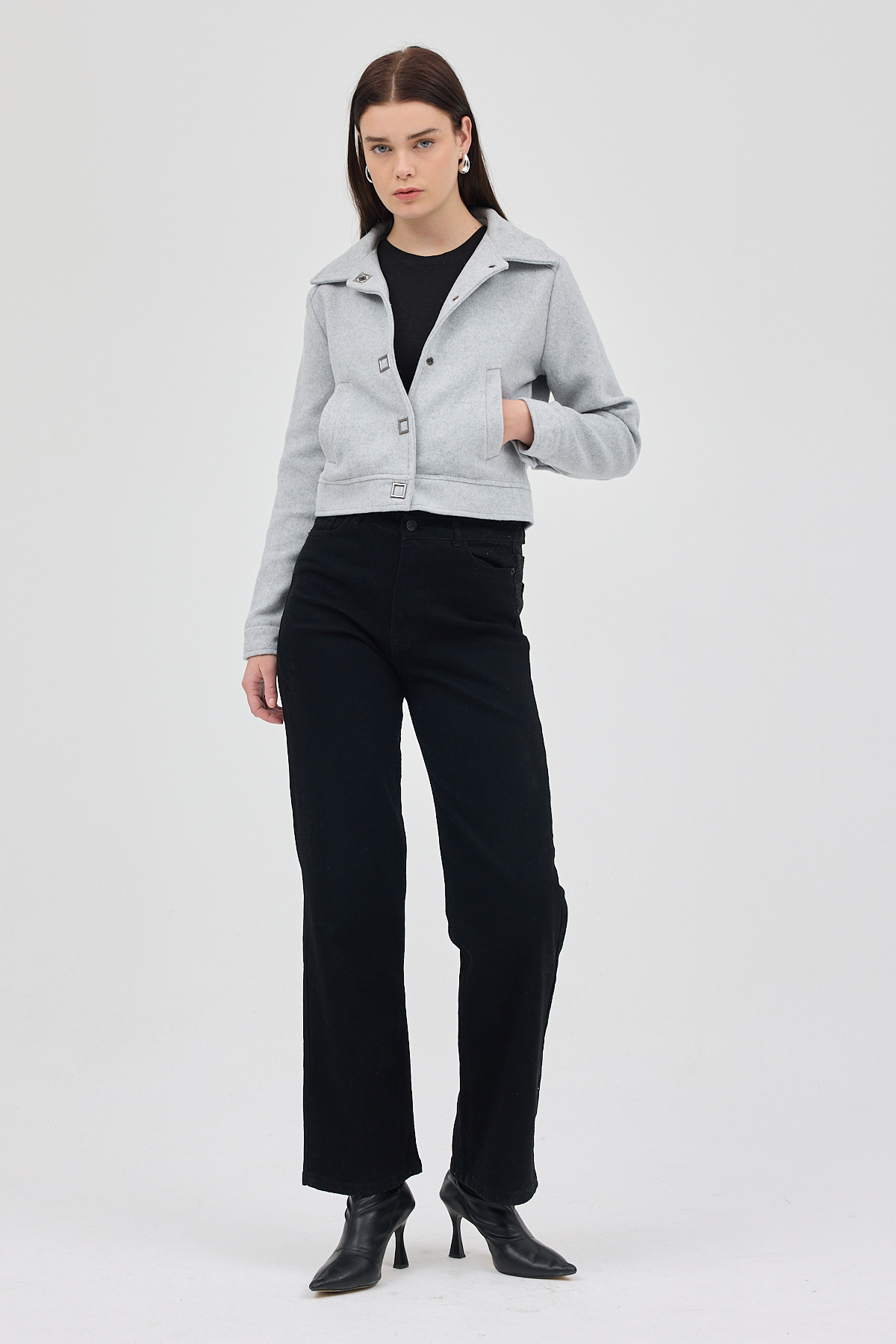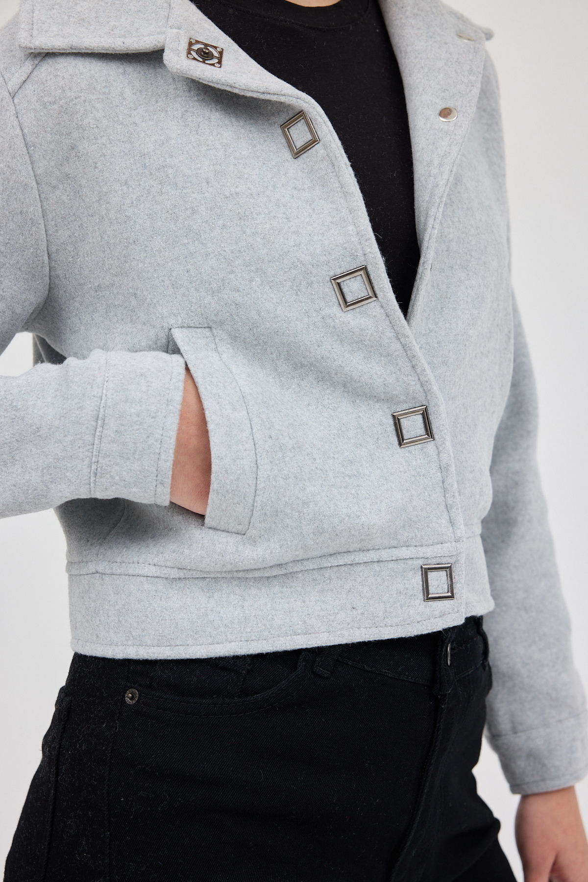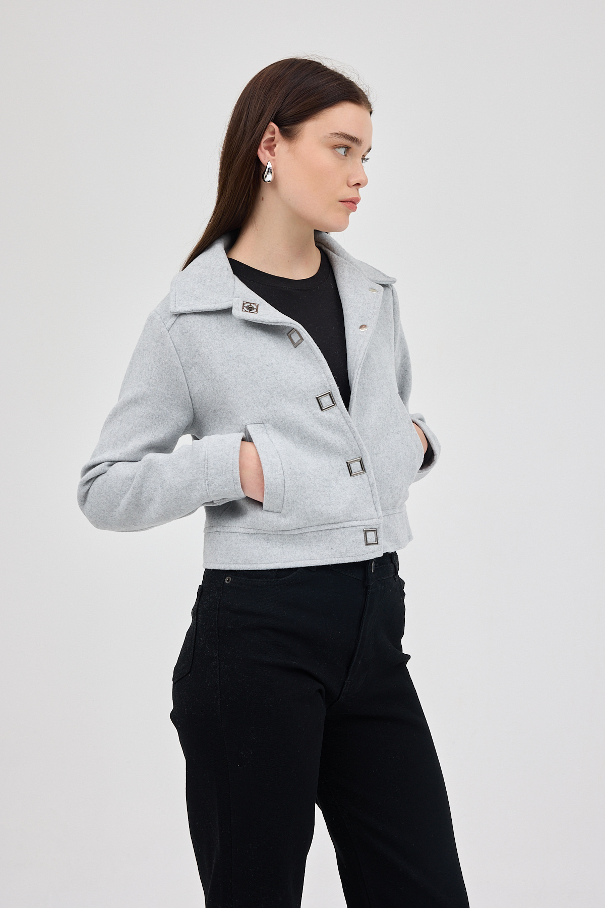 Gri Kısa Astarlı Kaşe Kadın Ceket 3055A