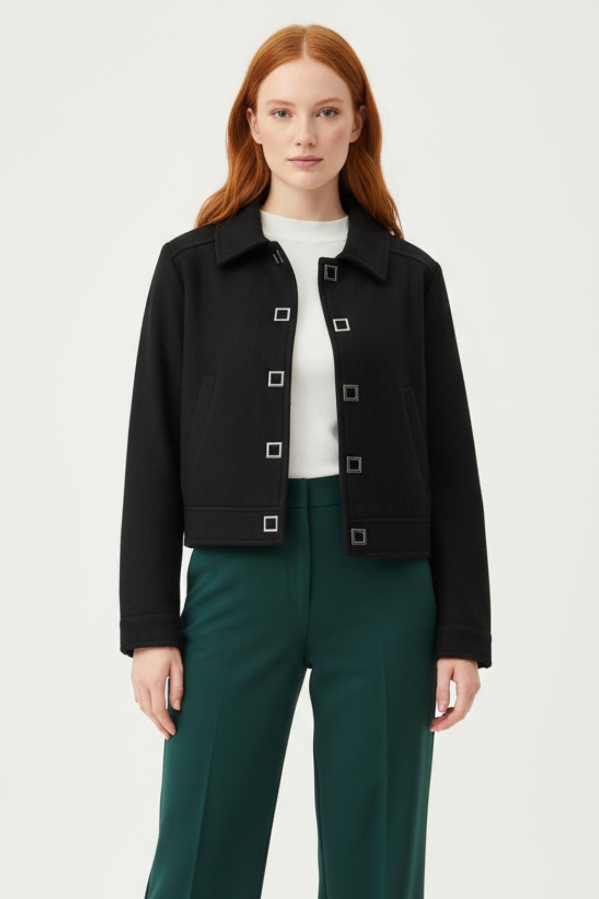 8069A Cepli Düğmeli Kaşe Ceket Siyah