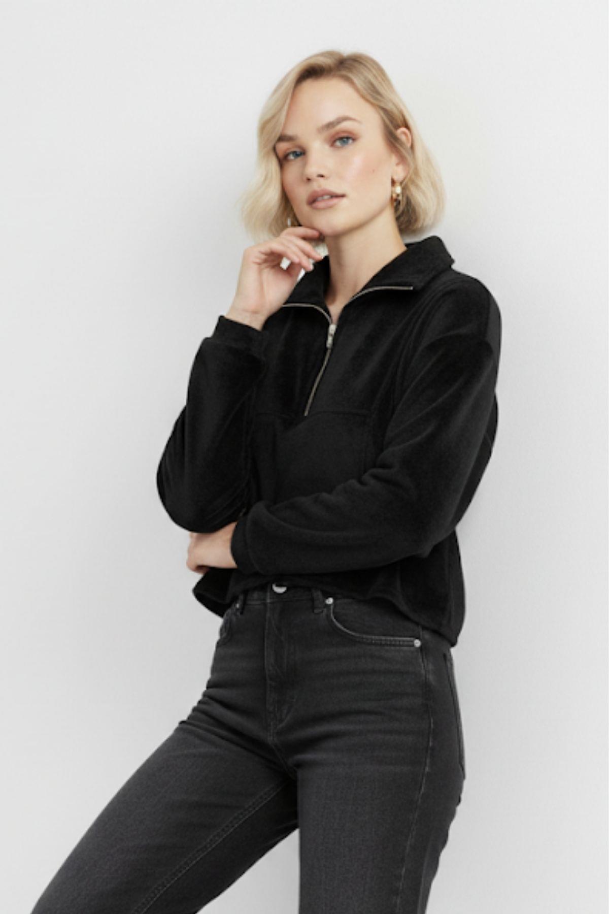 9210M Bisiklet Yaka Crop Sweat Siyah
