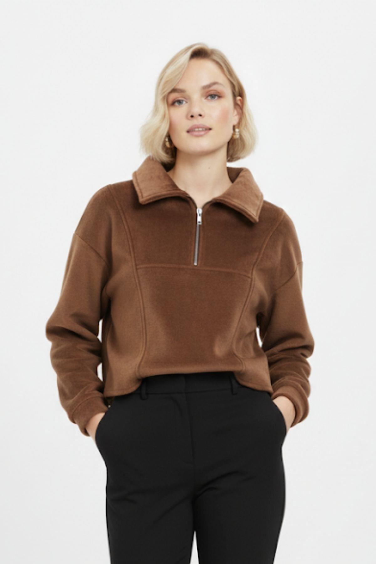 9210M Bisiklet Yaka Crop Sweat Karmelanj