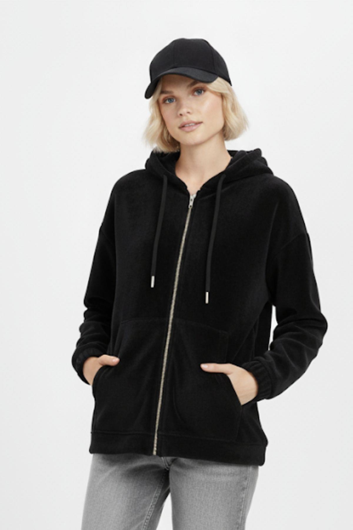 3057A Fermuarlı Peluş Ceket Siyah