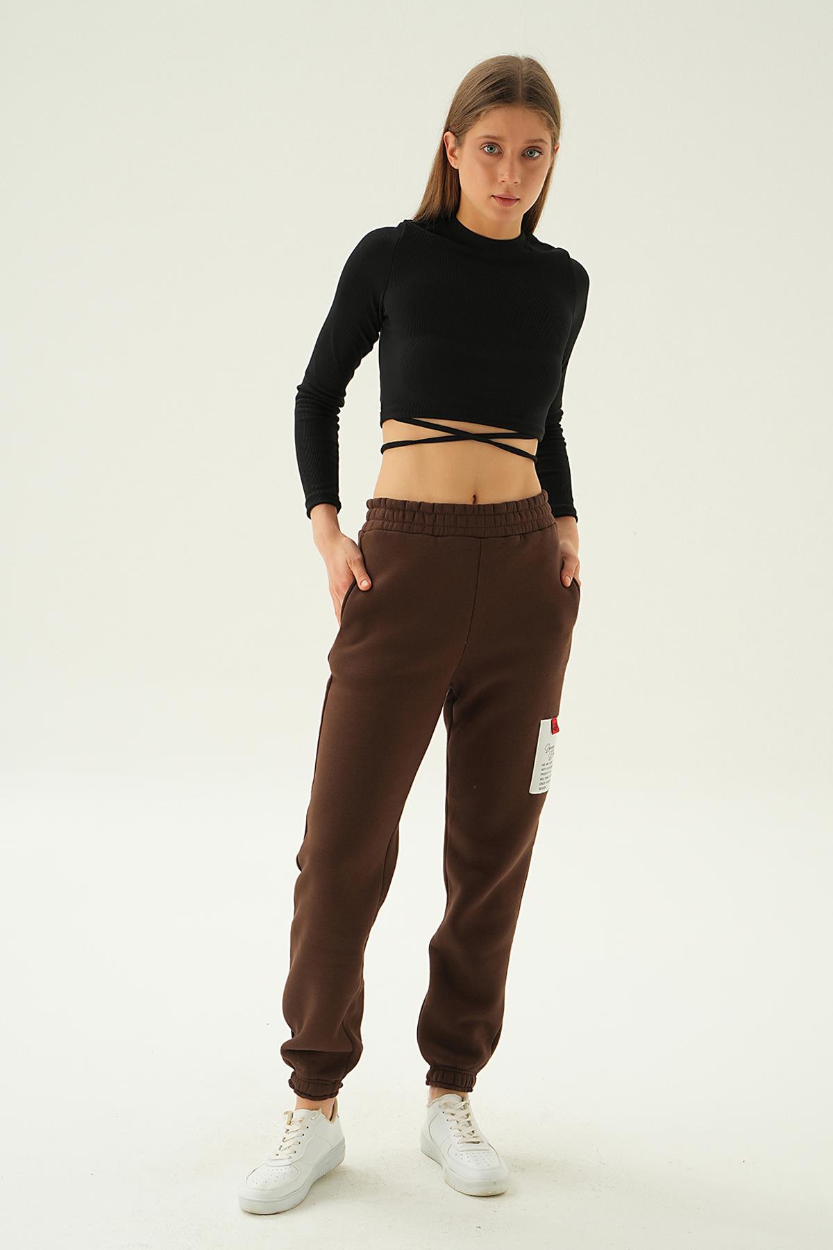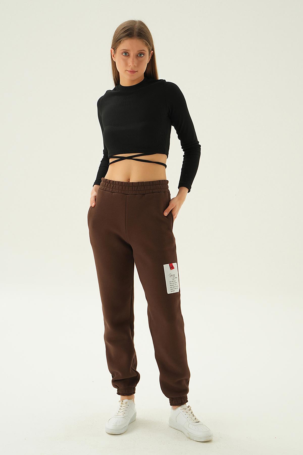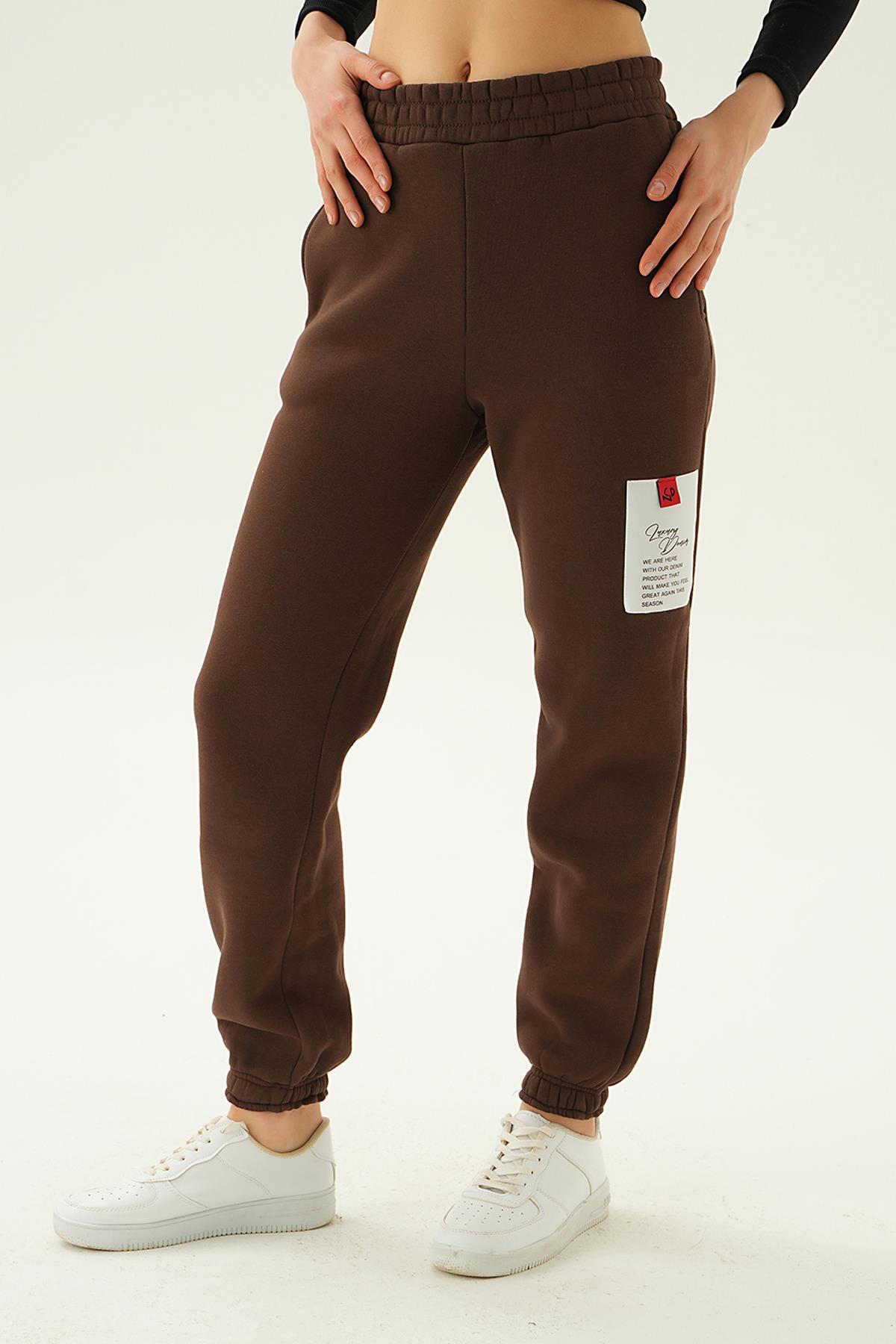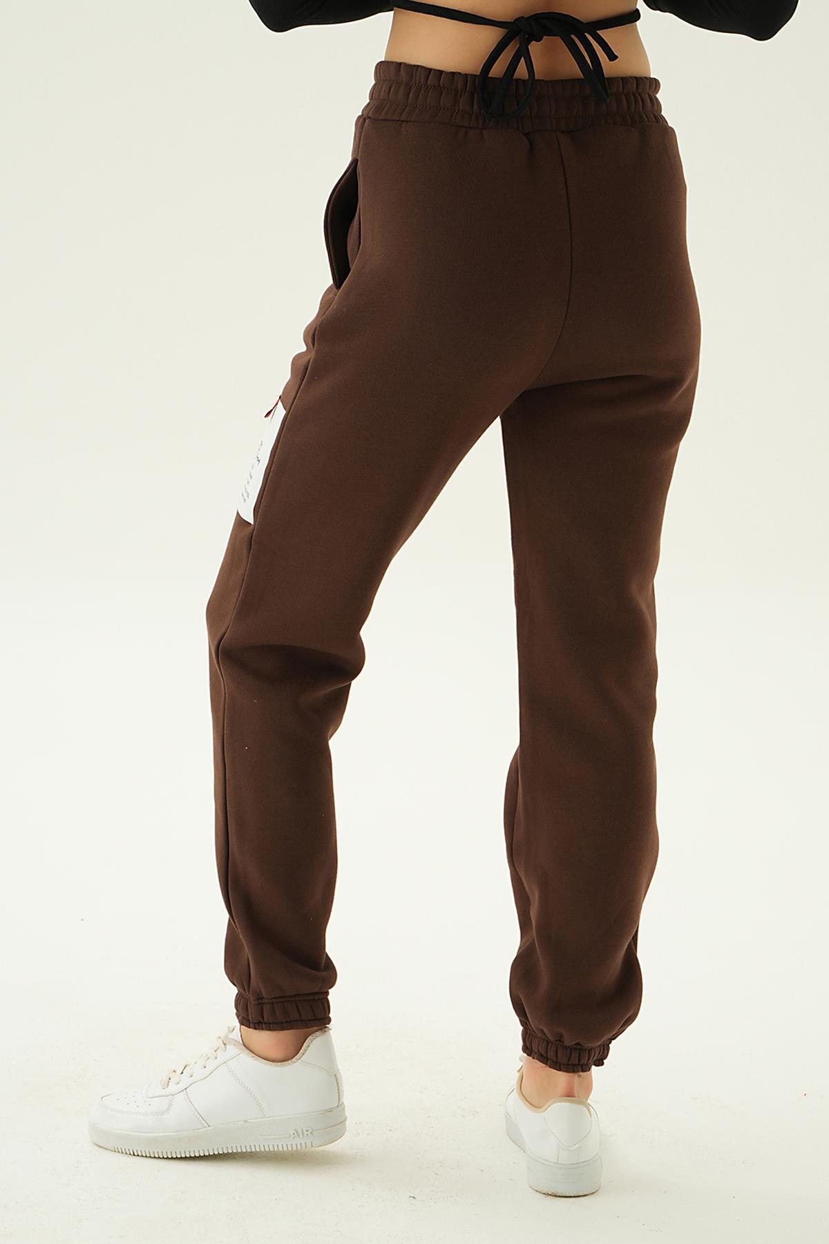 Kahve Baskılı Cepli Eşofman 3058