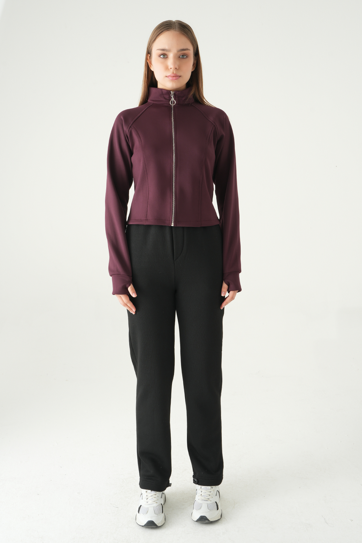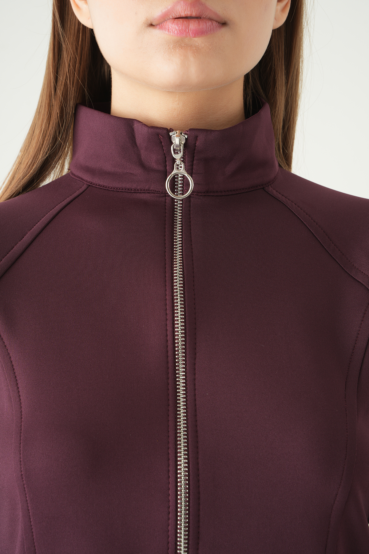 3074A Ön Fermuarlı Kısa Hırka Mürdüm