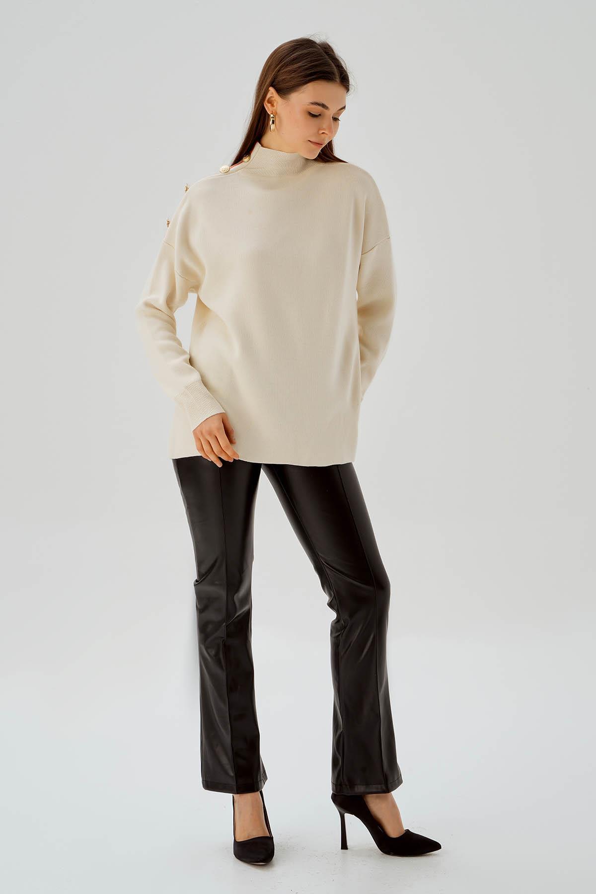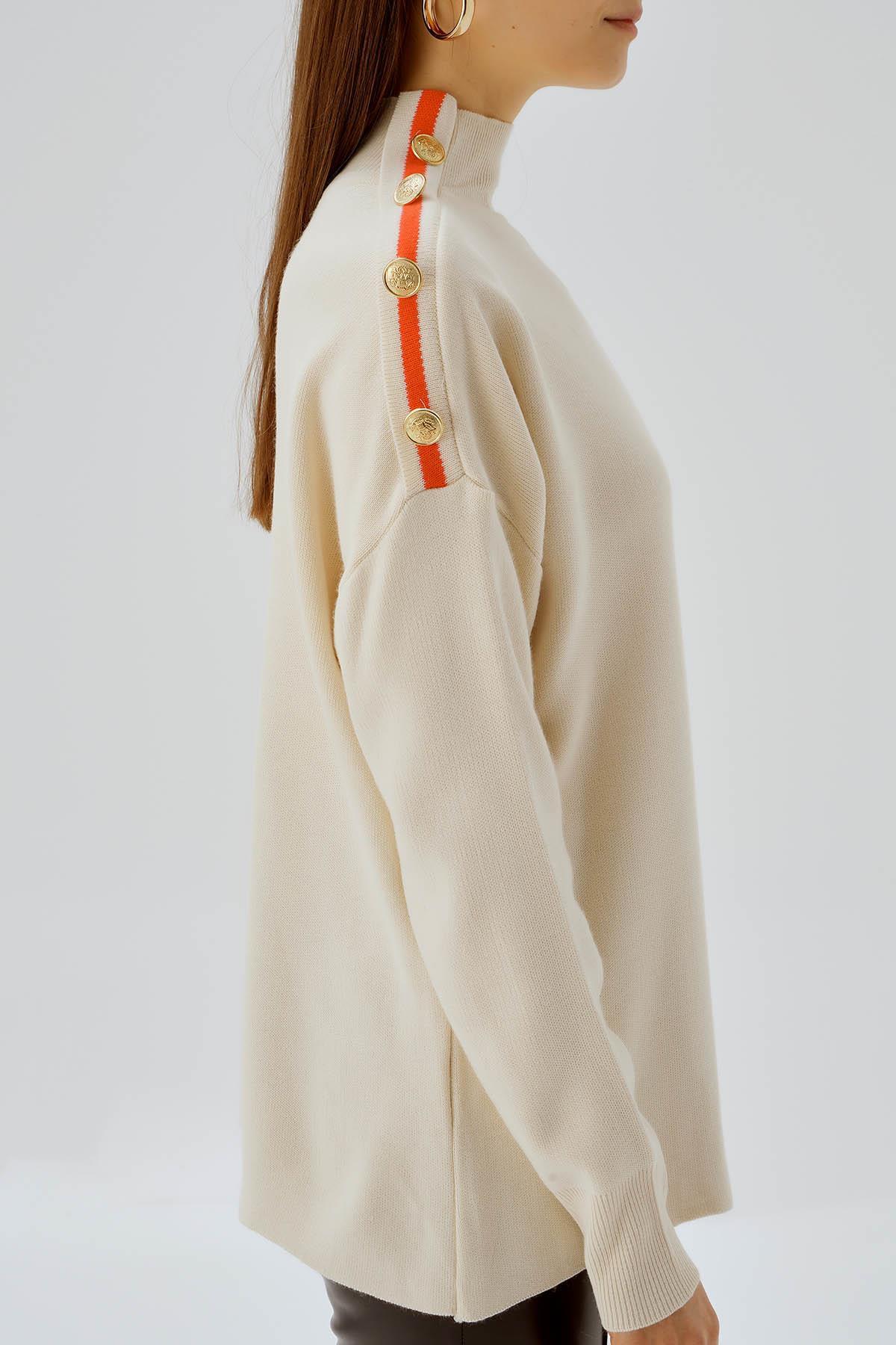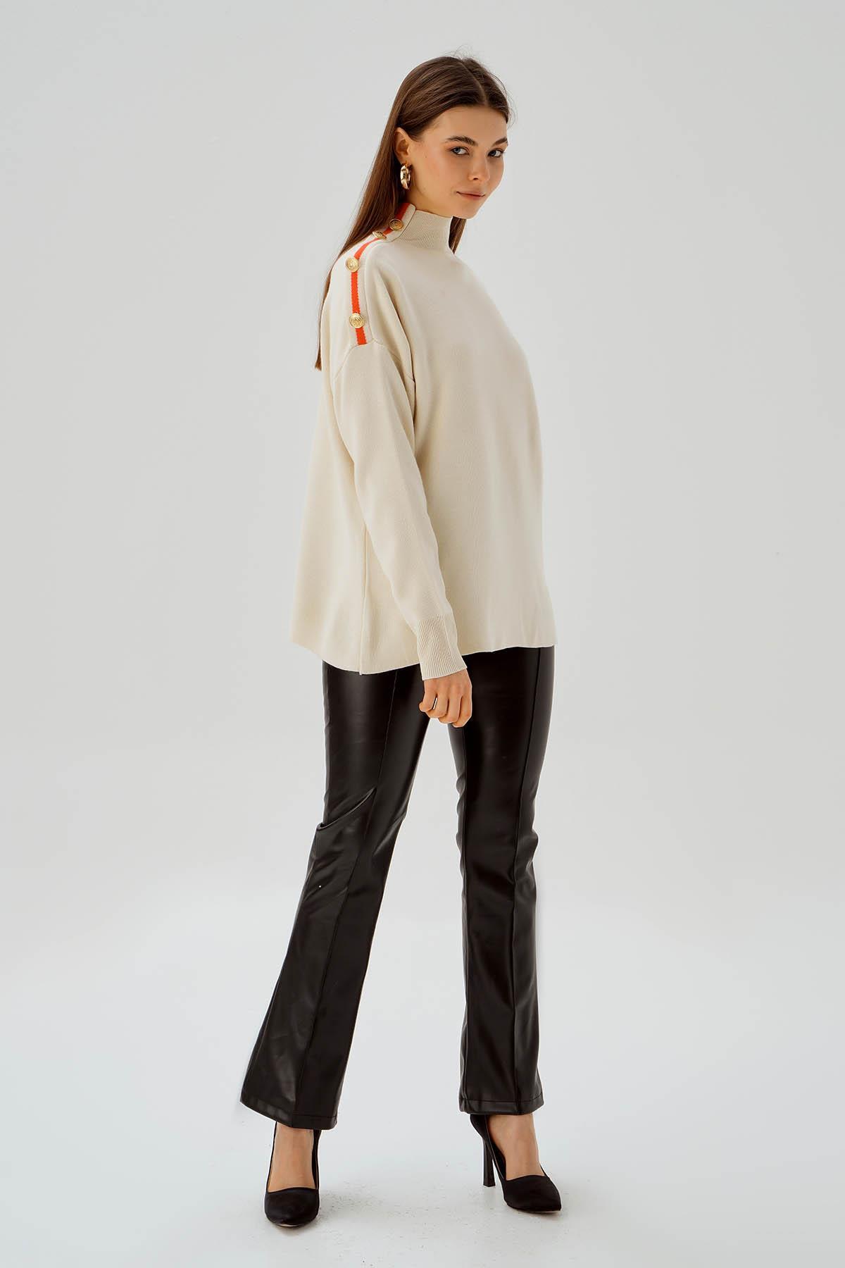 Ekru Omuz Şerit Detay Düğmeli Kazak 3075
