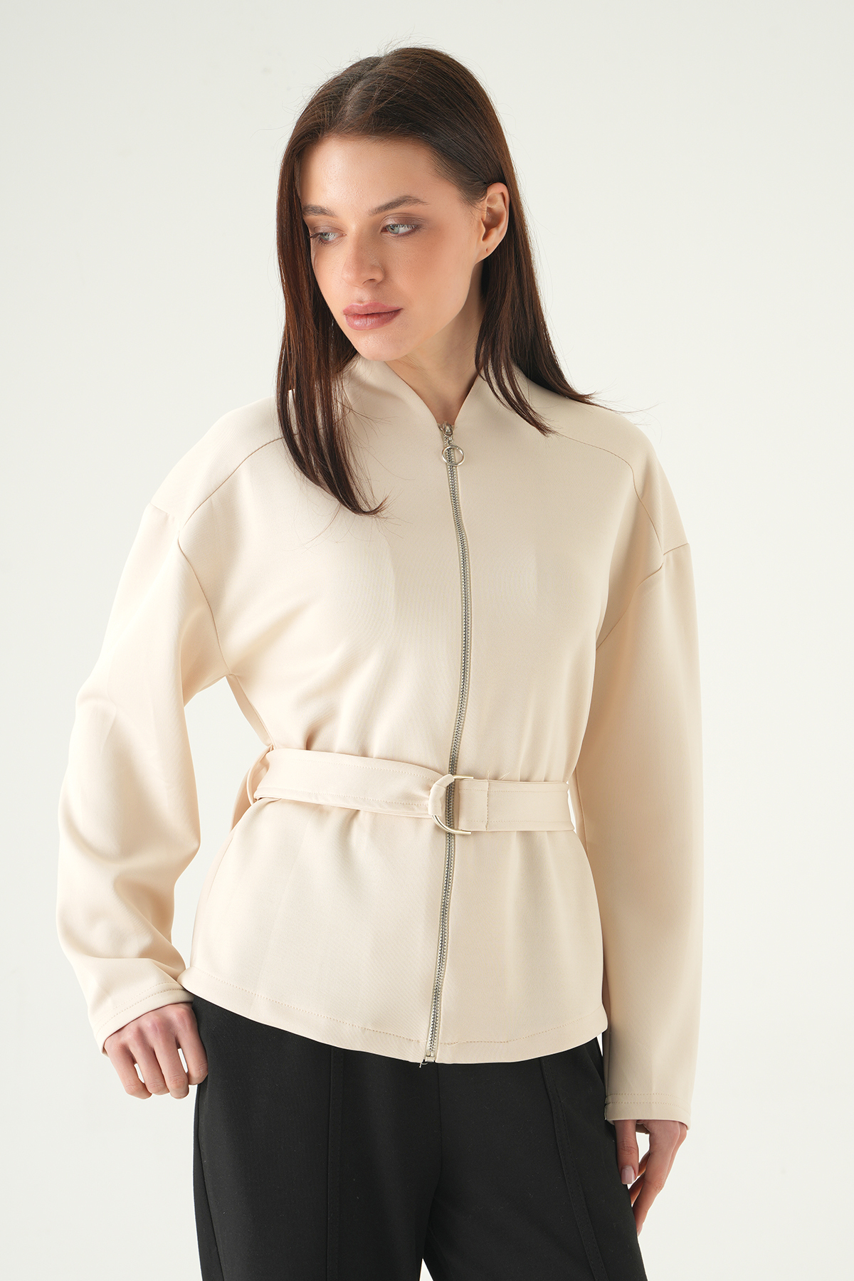 Taş Bel Bağlamalı Fermuarlı Hırka 3075A