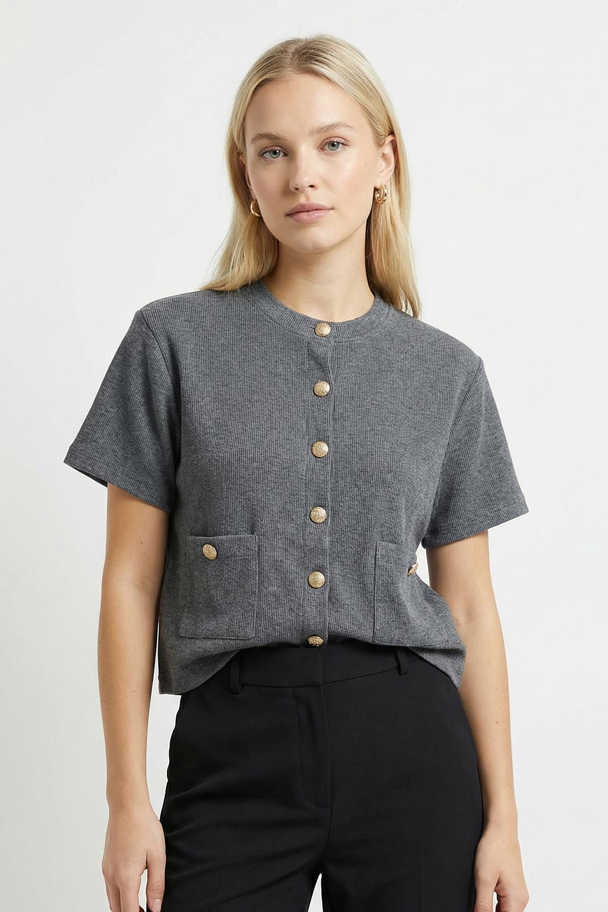 3076A Ön Cepli Düğmeli Tişört Antrasit
