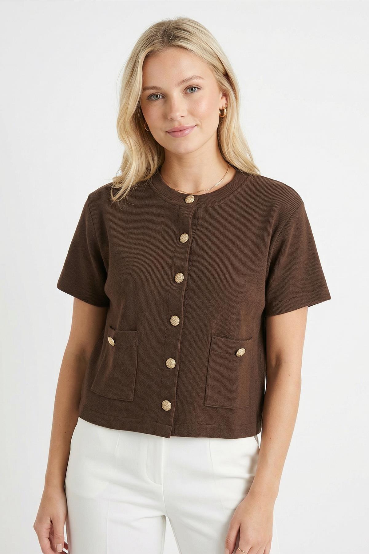 3076A Ön Cepli Düğmeli Tişört Kahve