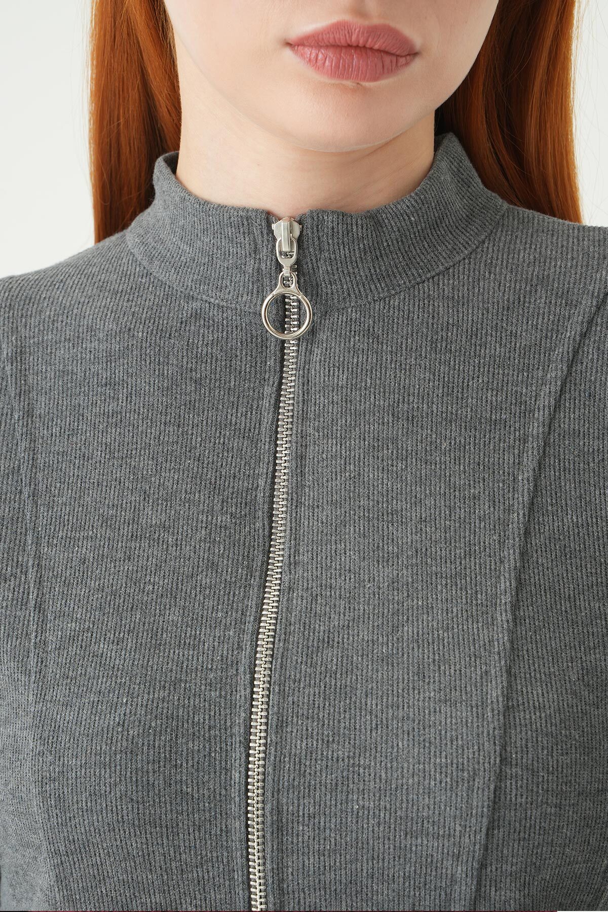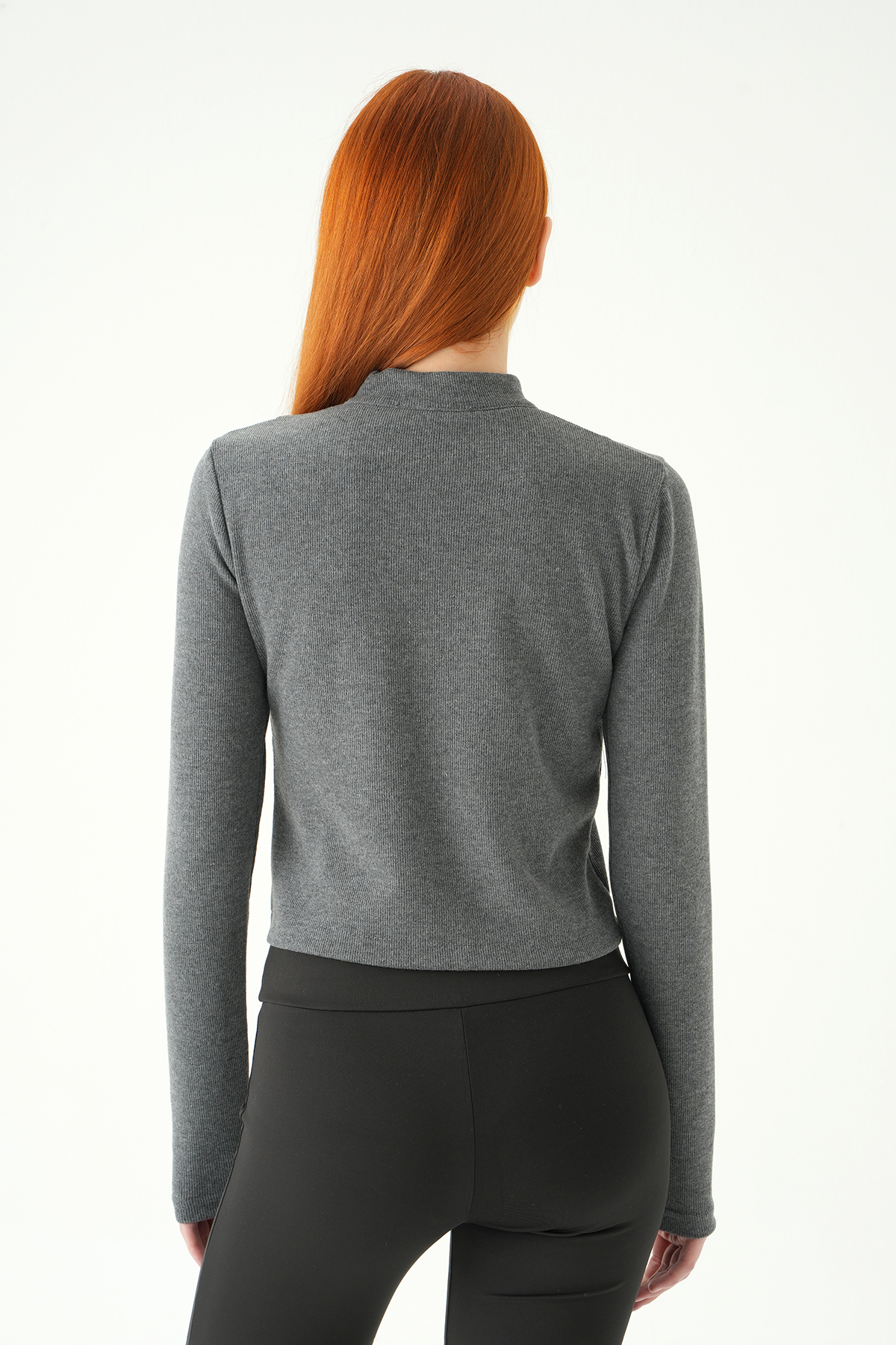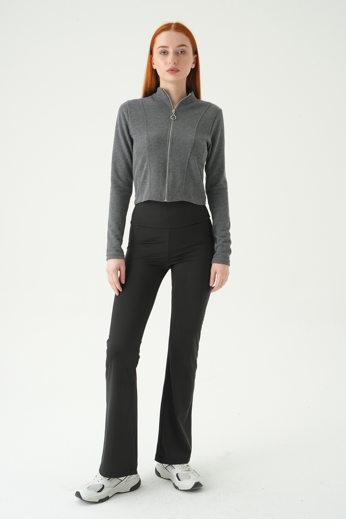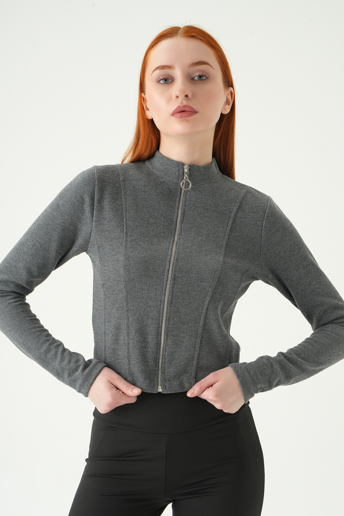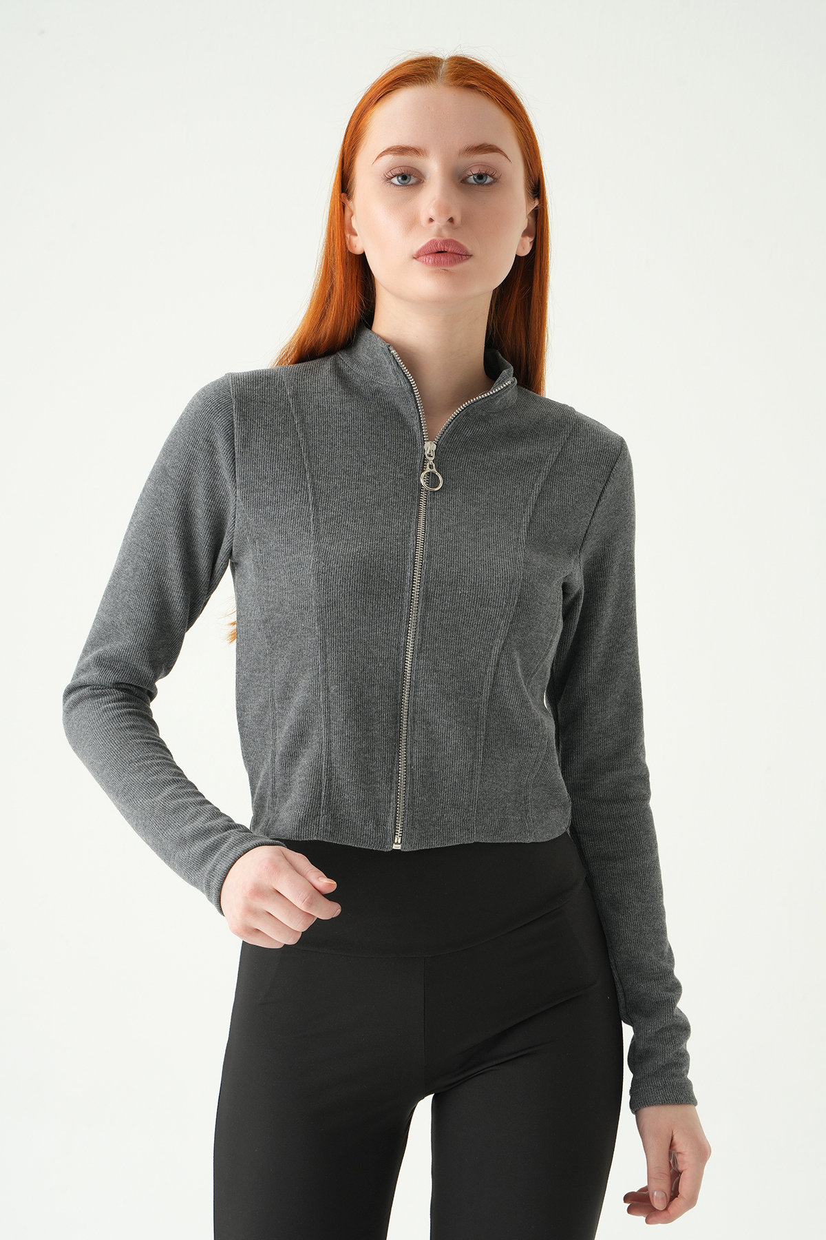 Antrasit Ön Fermuarlı Kısa Hırka 3080A