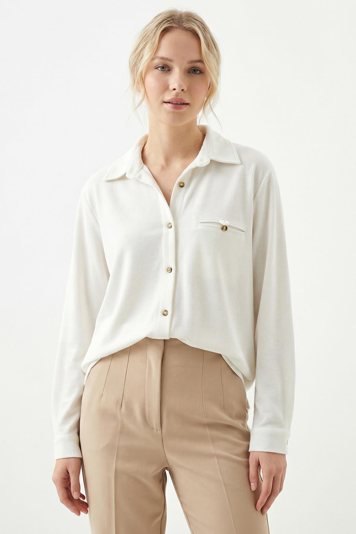 3081A Ön Düğmeli Gömlek Ekru