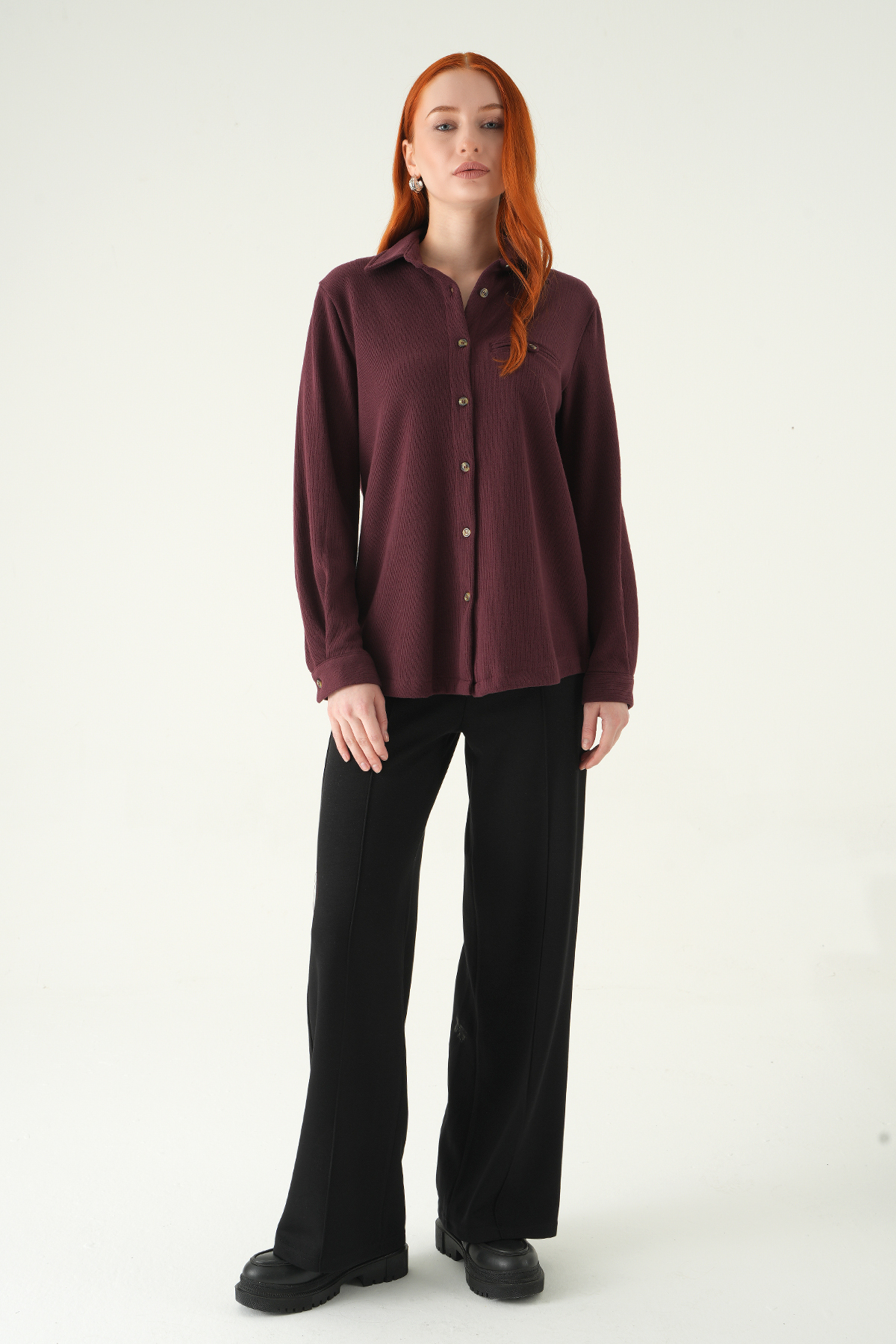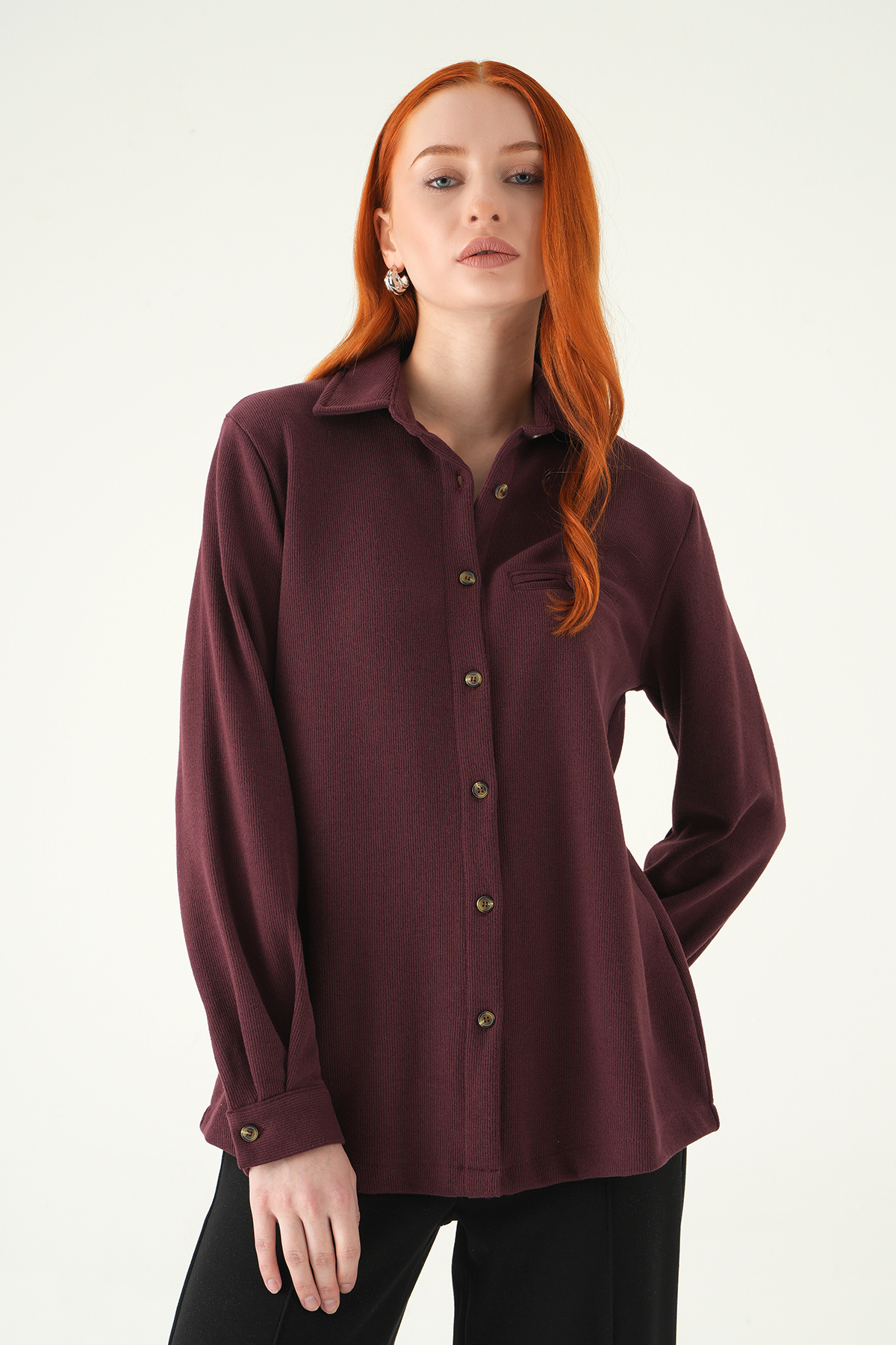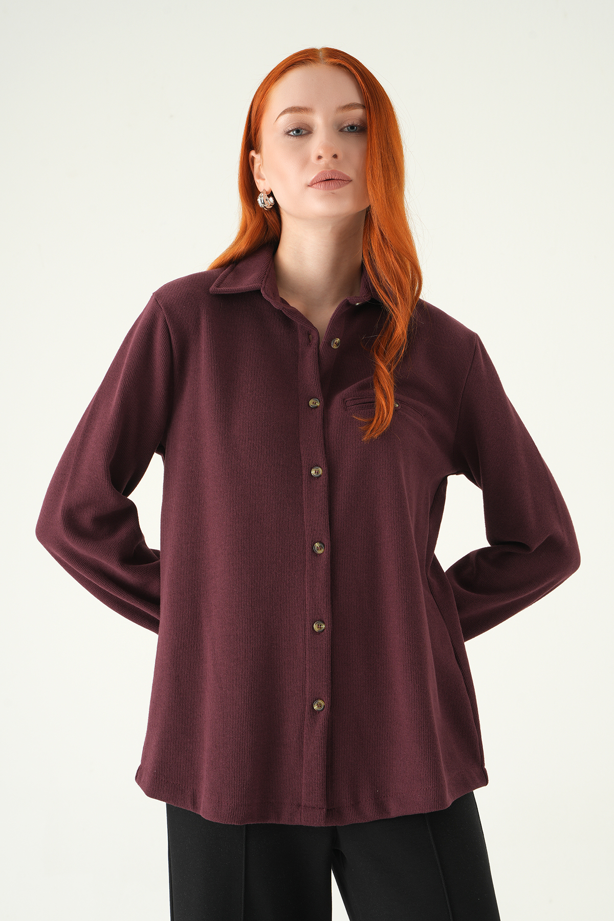 Mürdüm Ön Düğmeli Gömlek 3081A