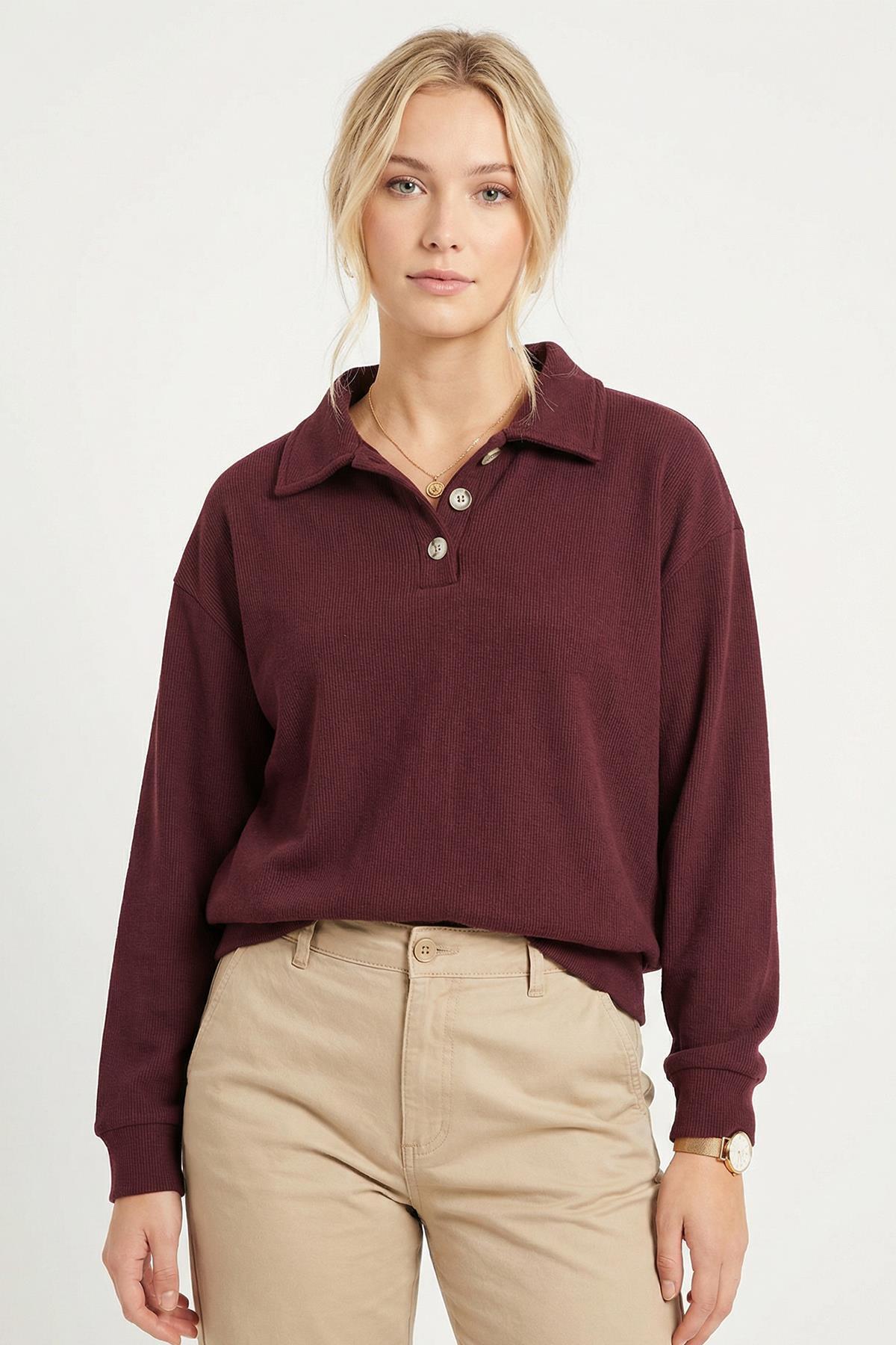 3082A Gömlek Yaka Kazak Mürdüm