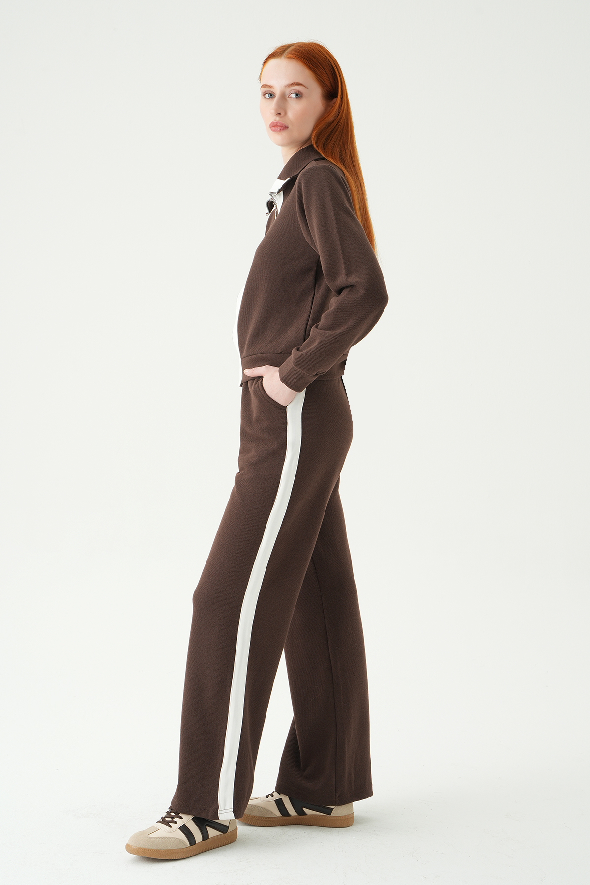 Kahve Şeritli Hırka Pantolon Takım 3085A