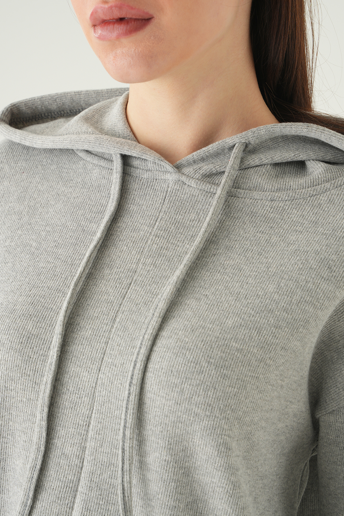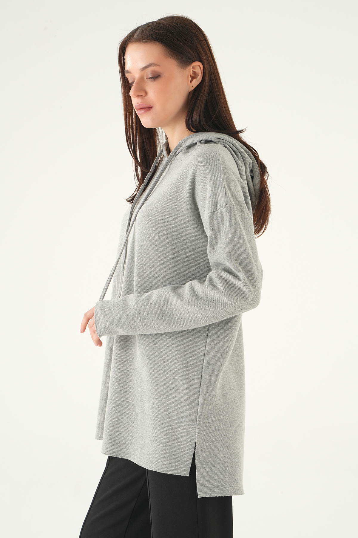 Gri Kapüşonlu Uzun Kol Tunik 3087A