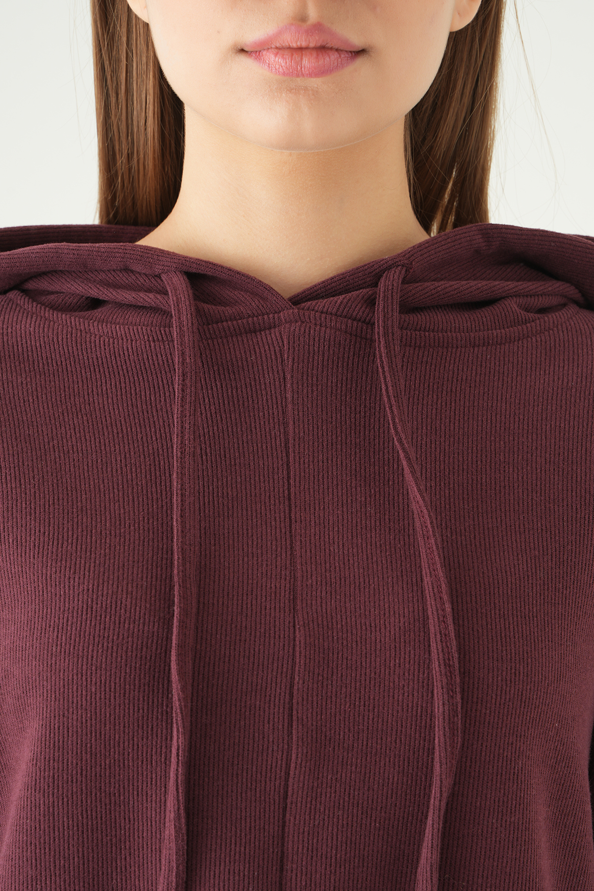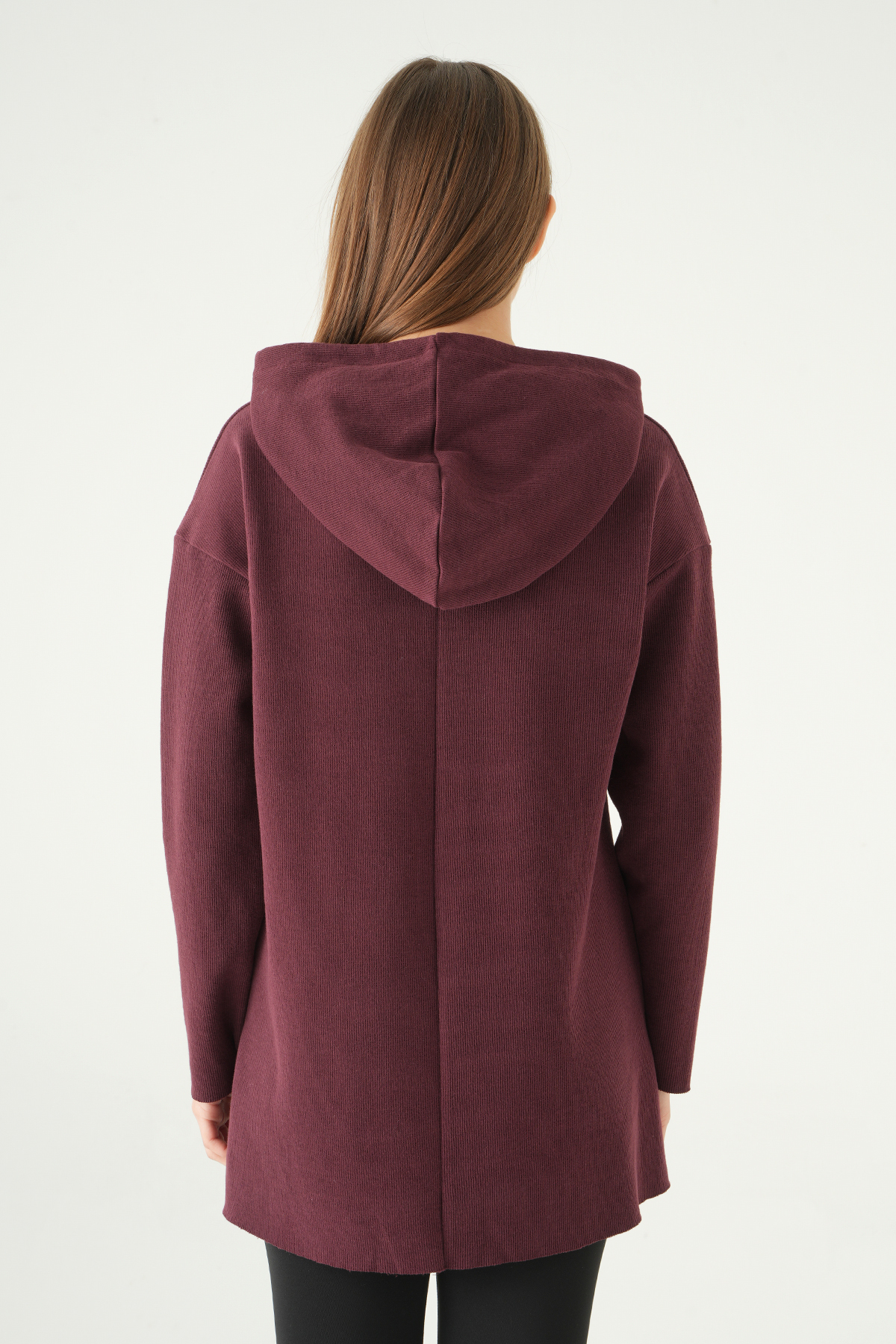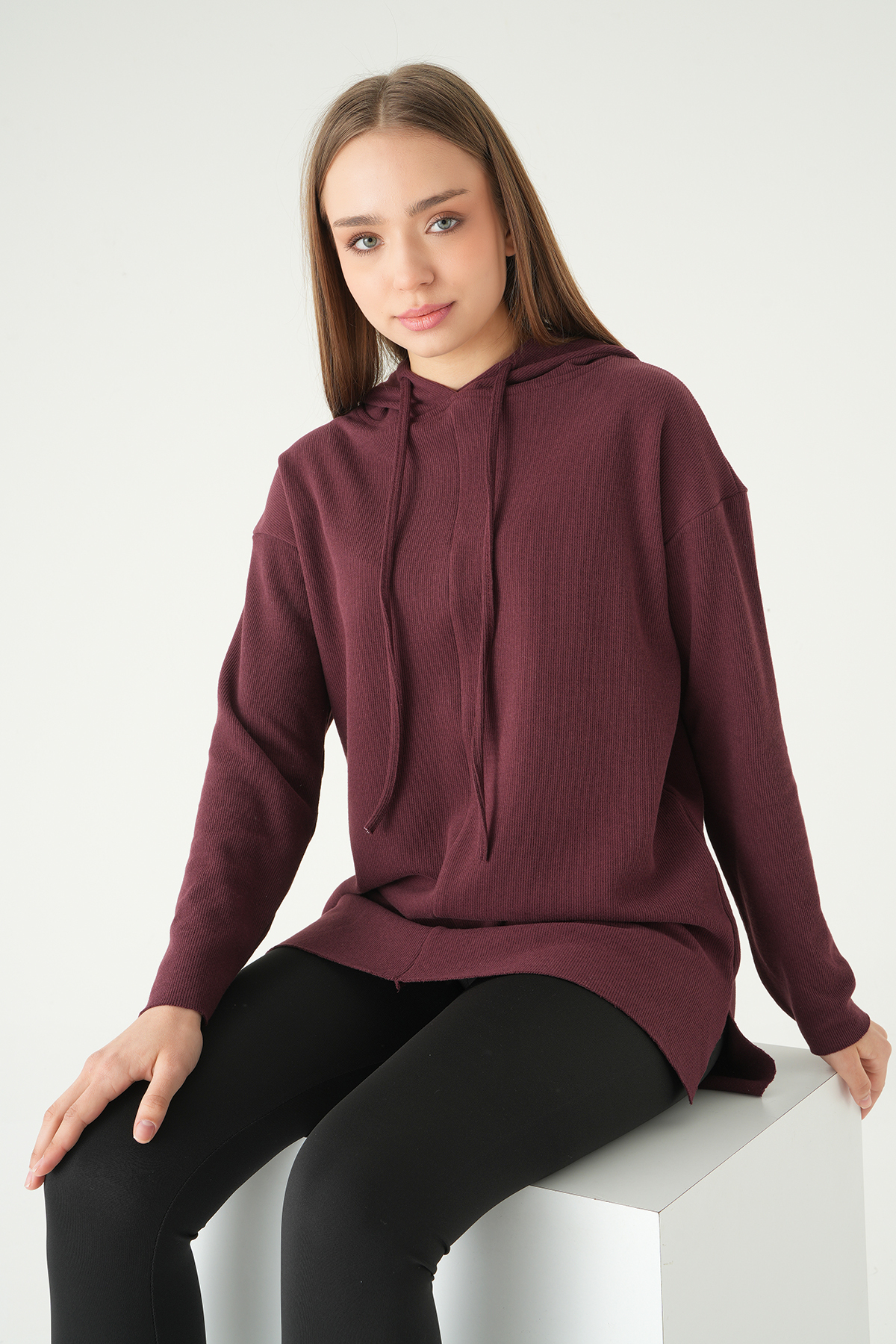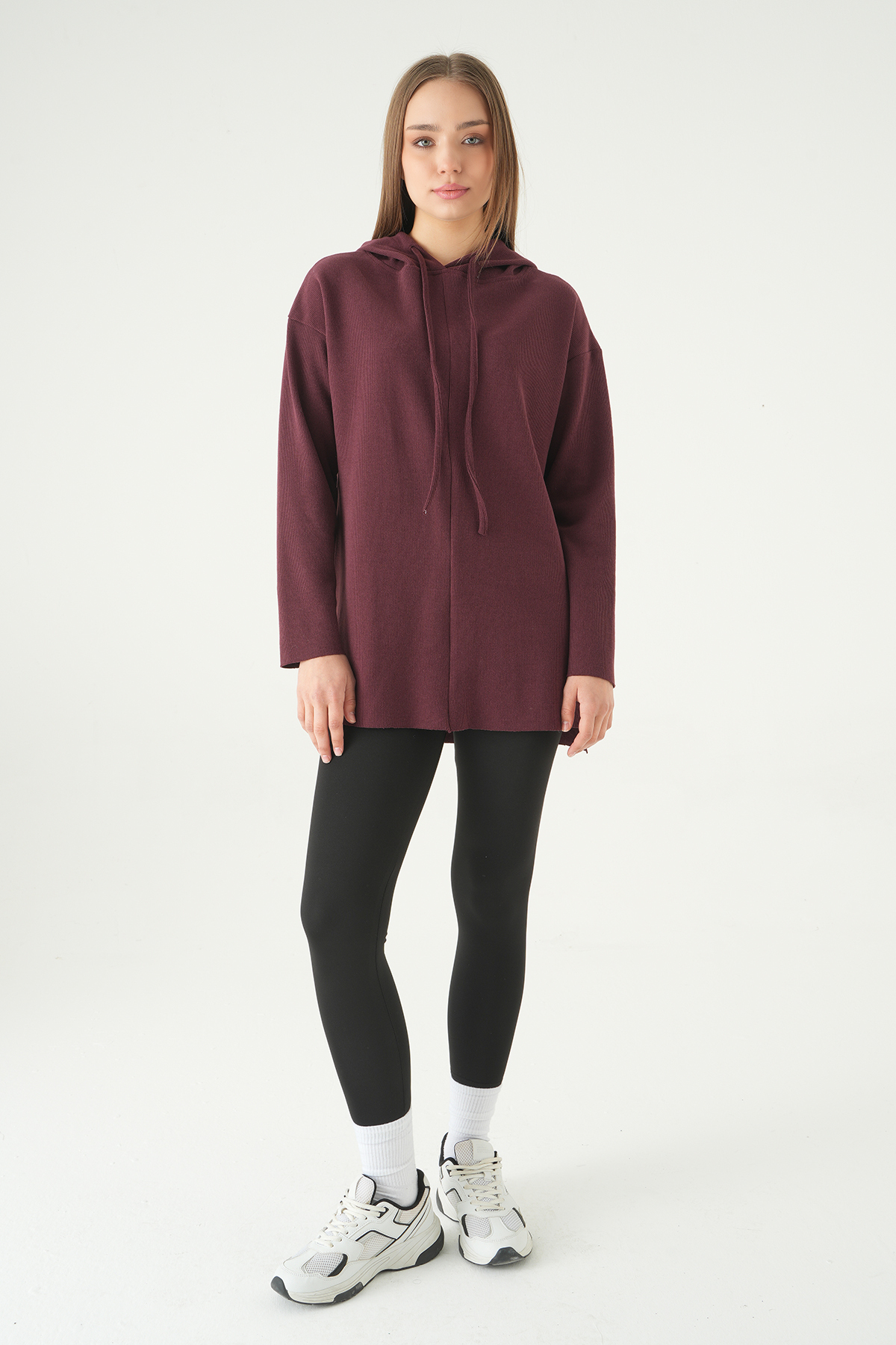 Mürdüm Kapüşonlu Uzun Kol Tunik 3087A