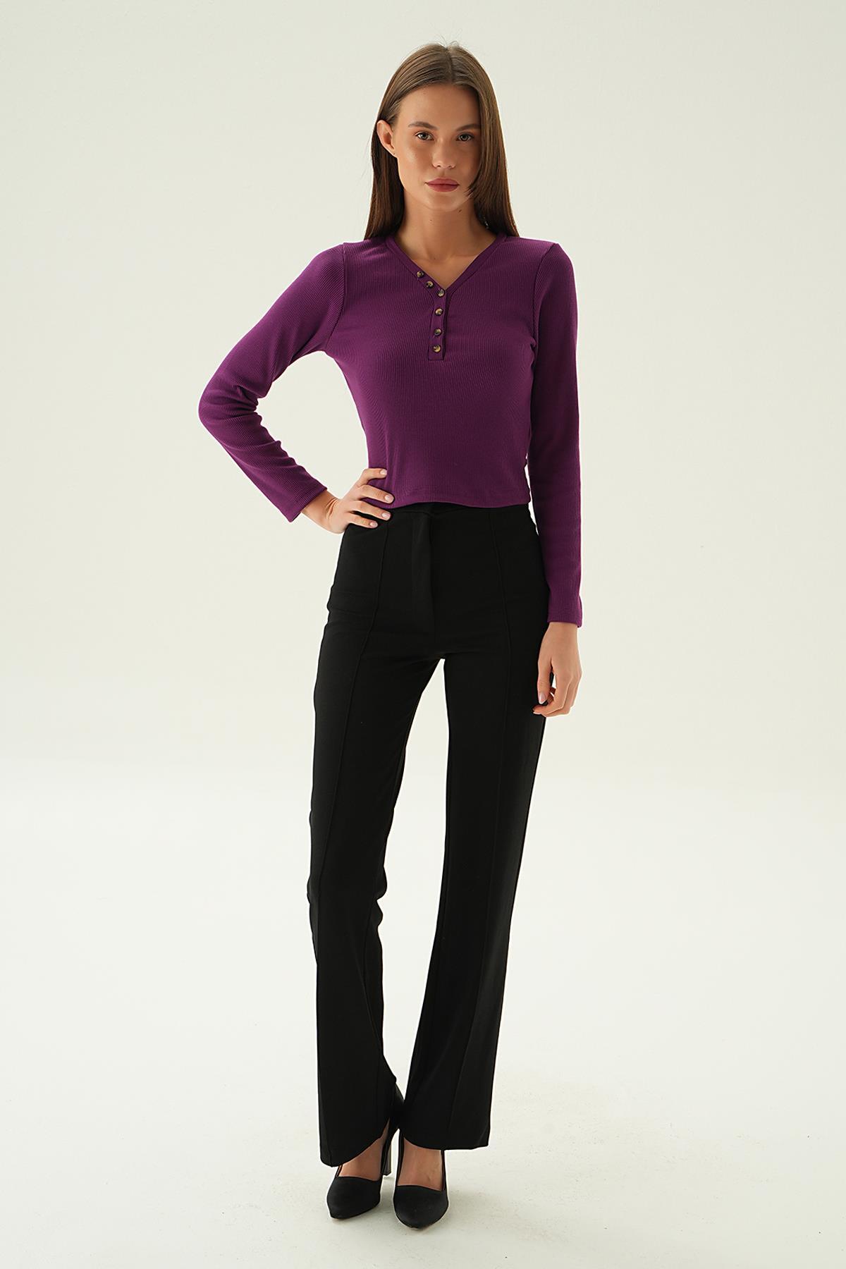 3093 Düğme Detay Bluz Mor