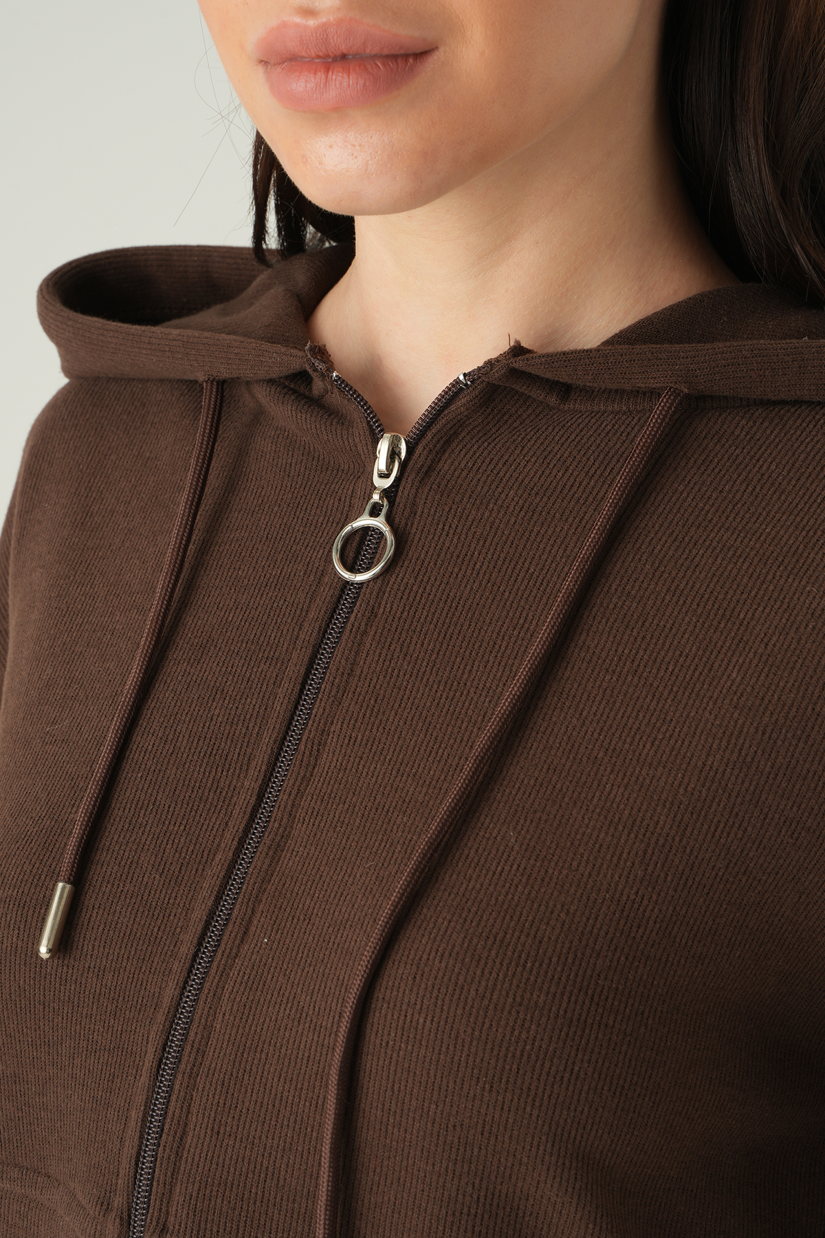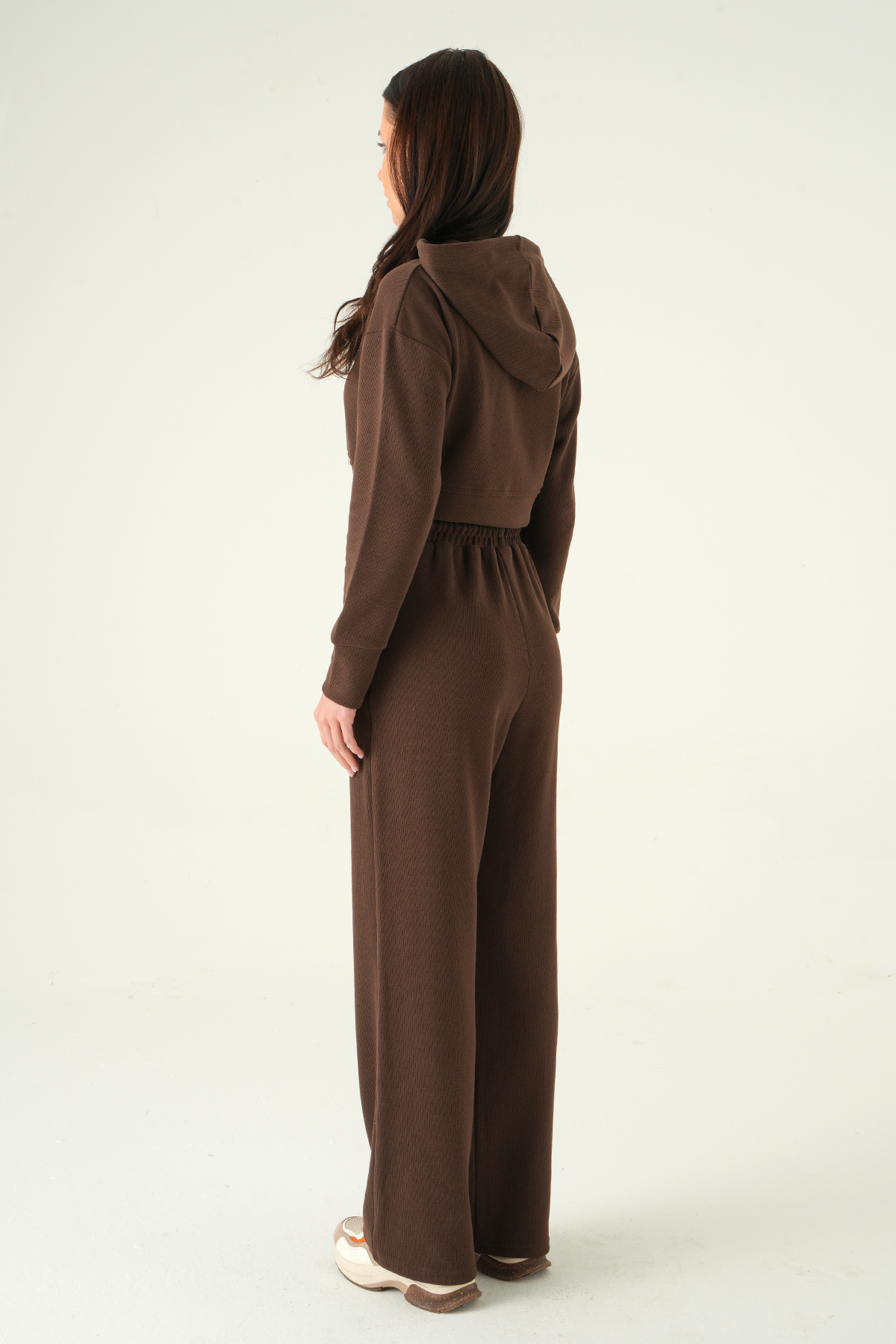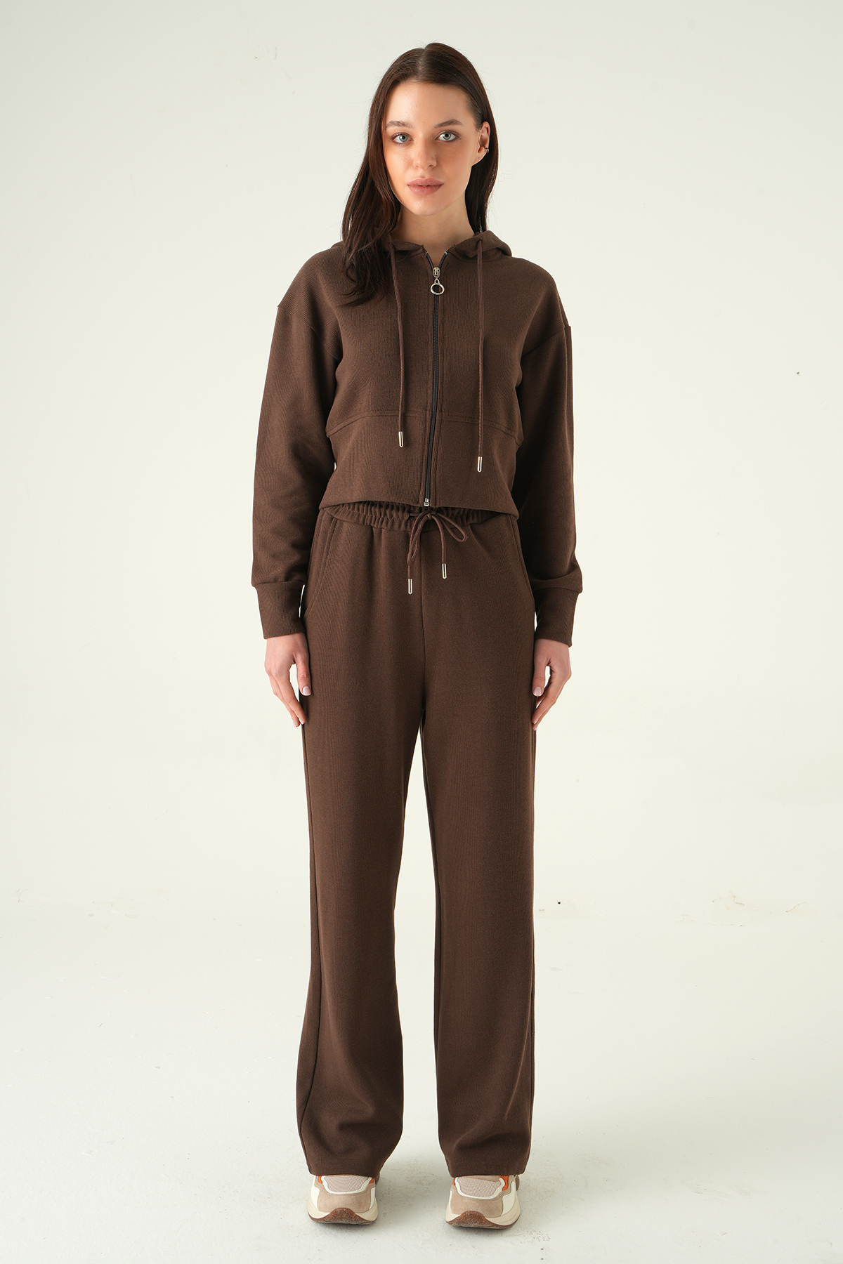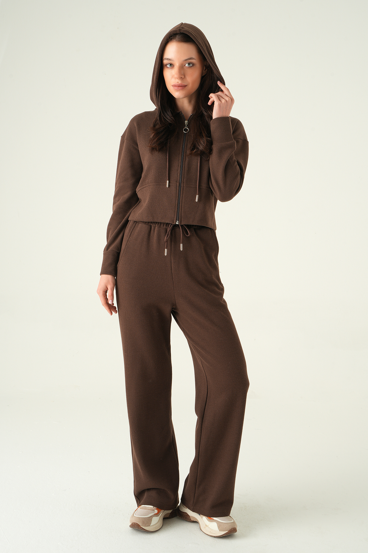 Kahve Kapüşonlu Hırka Pantolon Takım 3097A