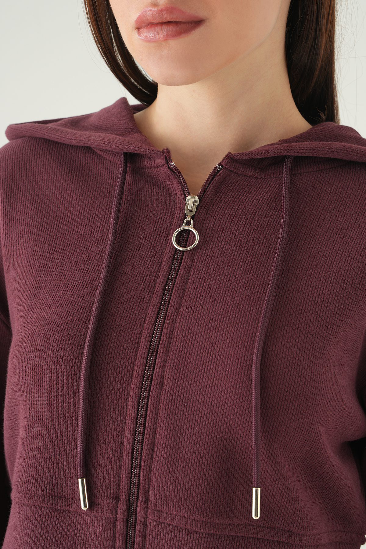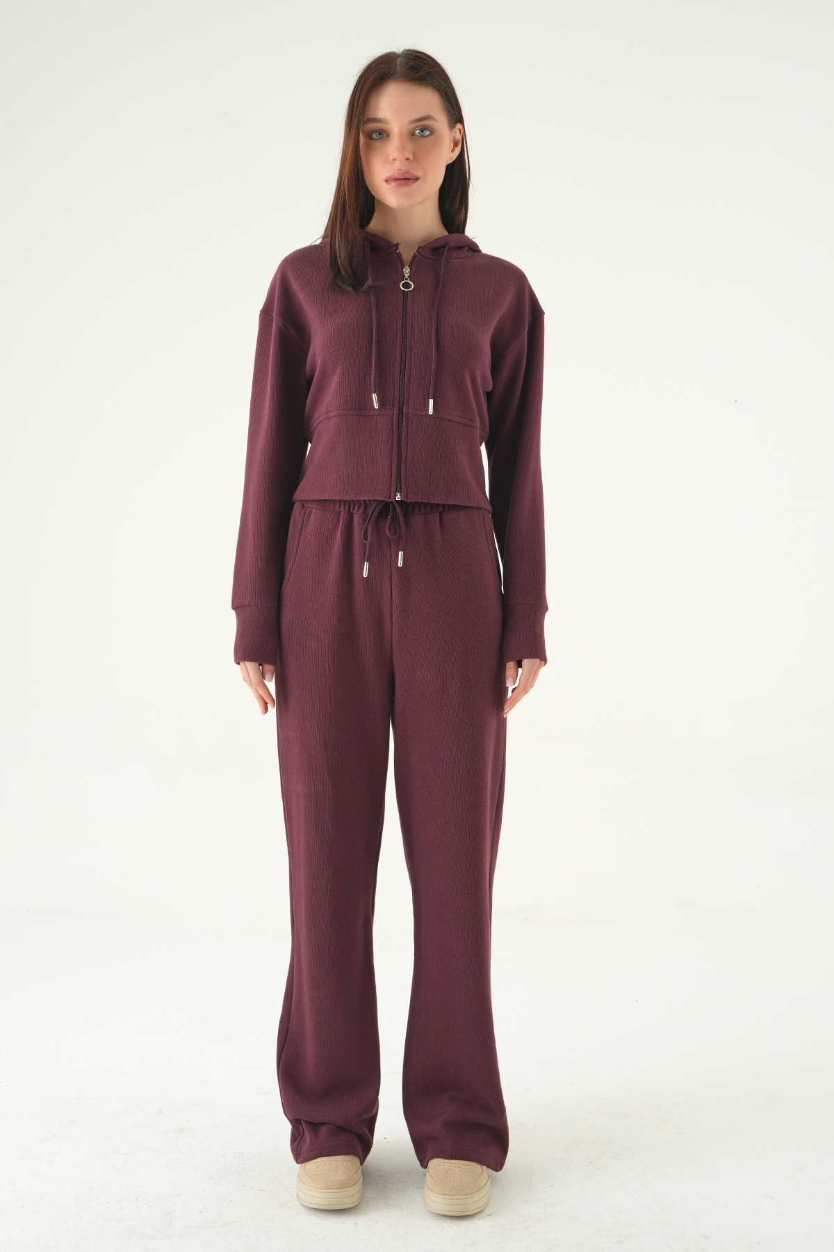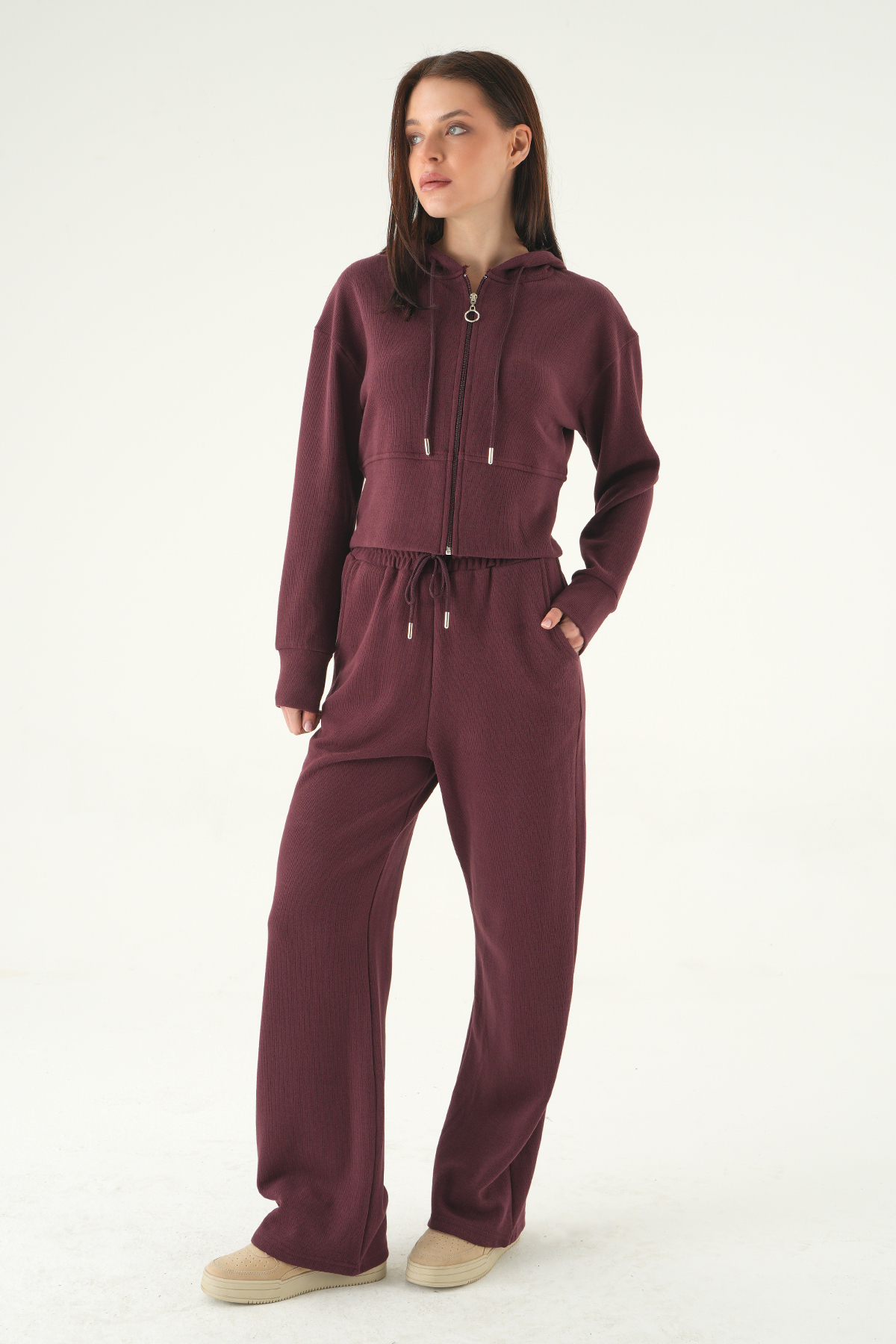 Mürdüm Kapüşonlu Hırka Pantolon Takım 3097A