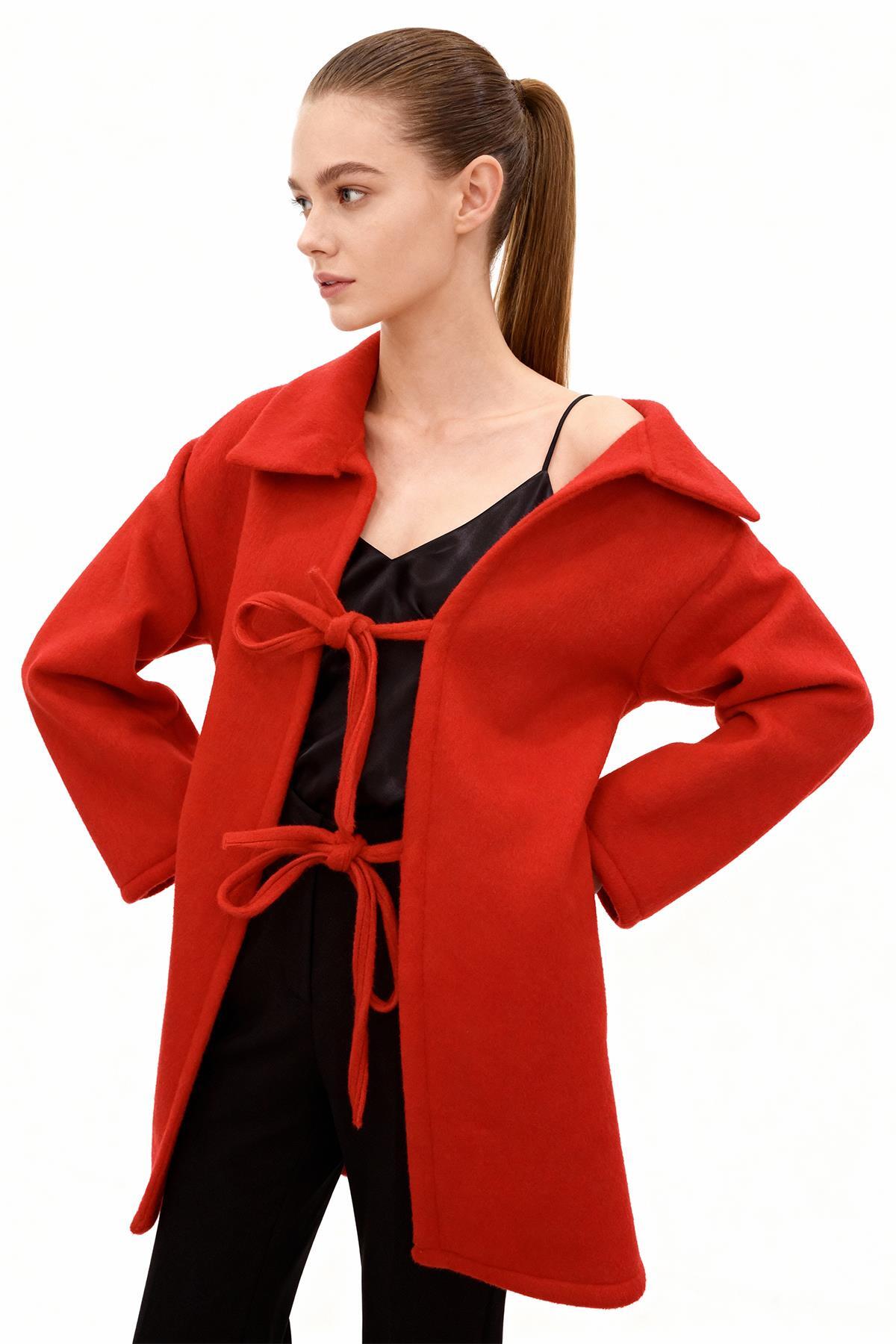 3101A Ön Bağlamalı Uzun Kol Ceket Kırmızı