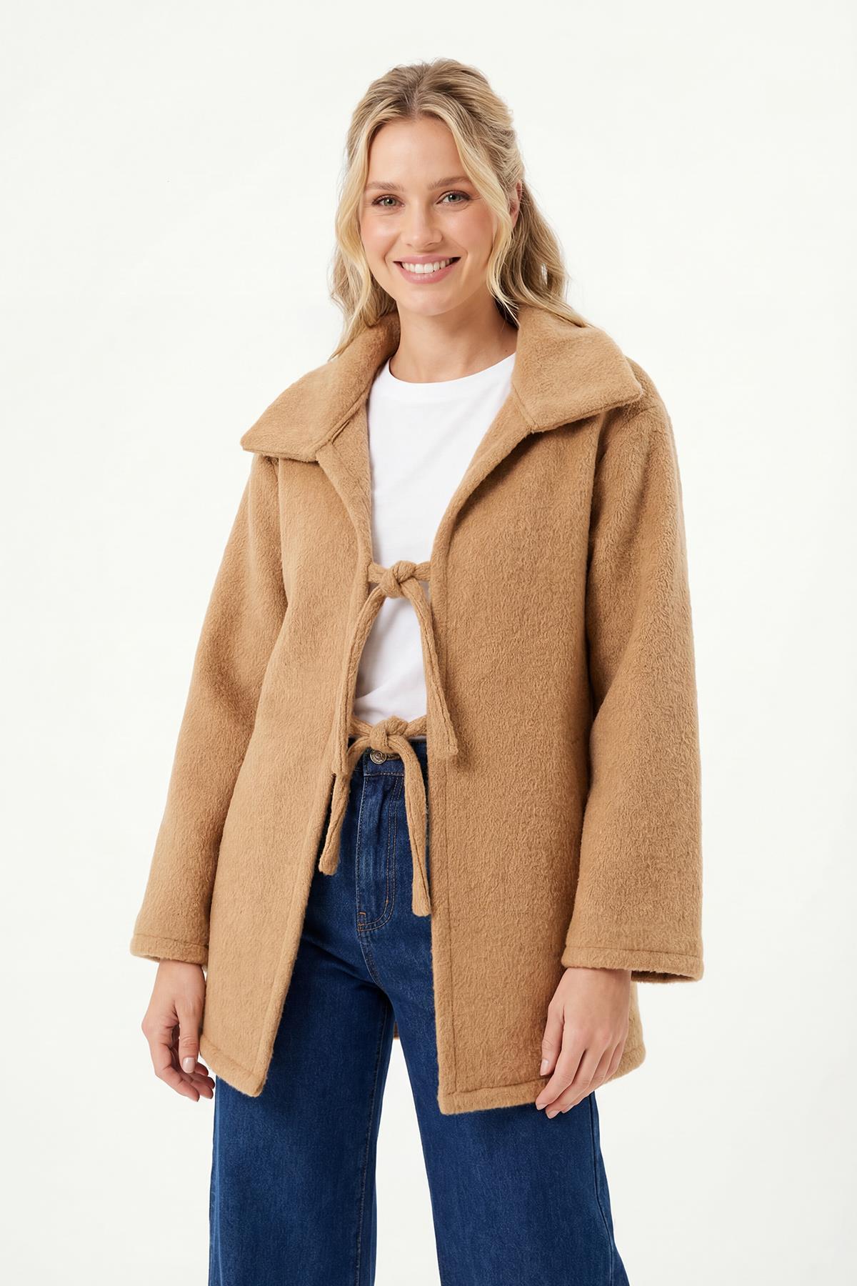 3101A Ön Bağlamalı Uzun Kol Ceket Vizon