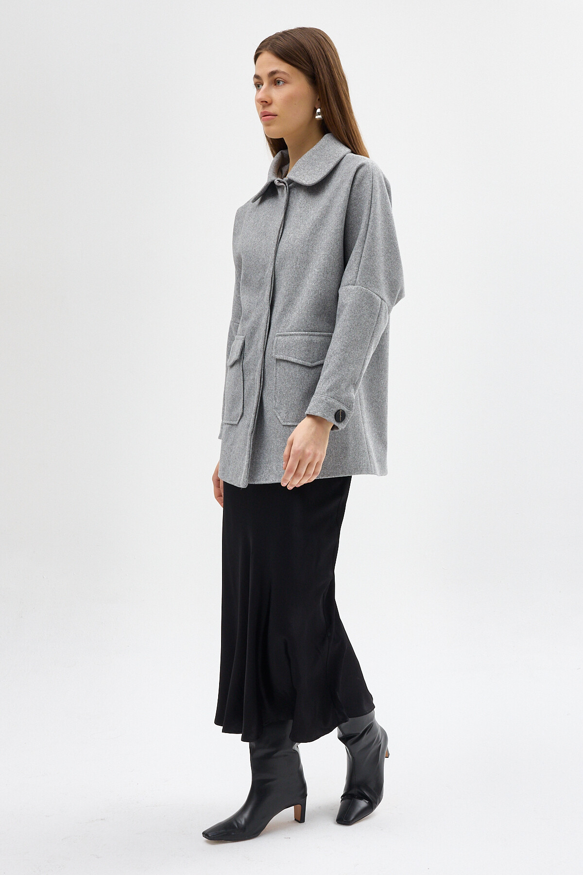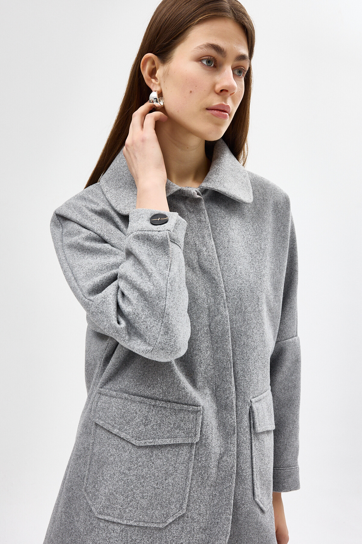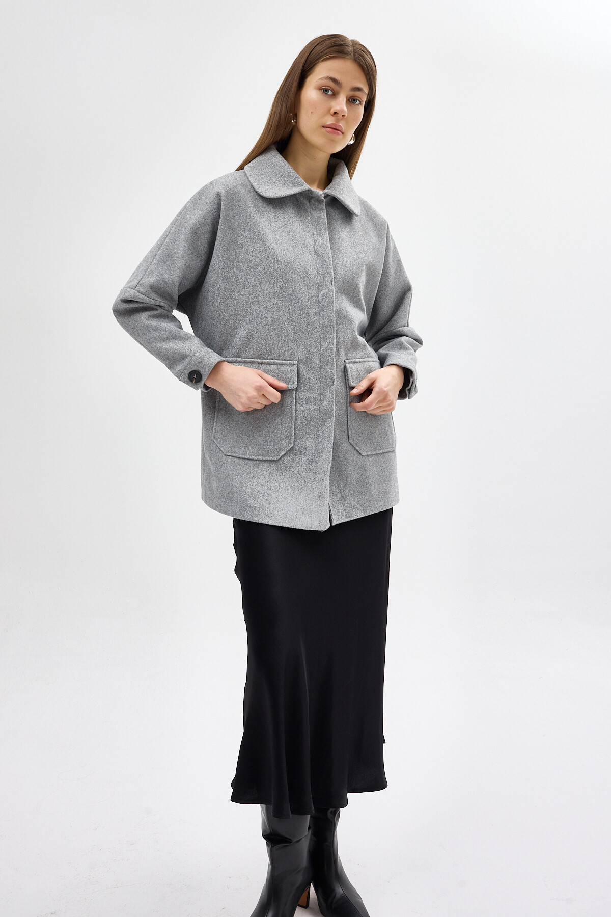 Gri Büyük Cepli Geniş Yakalı Kadın Kaban 3102A