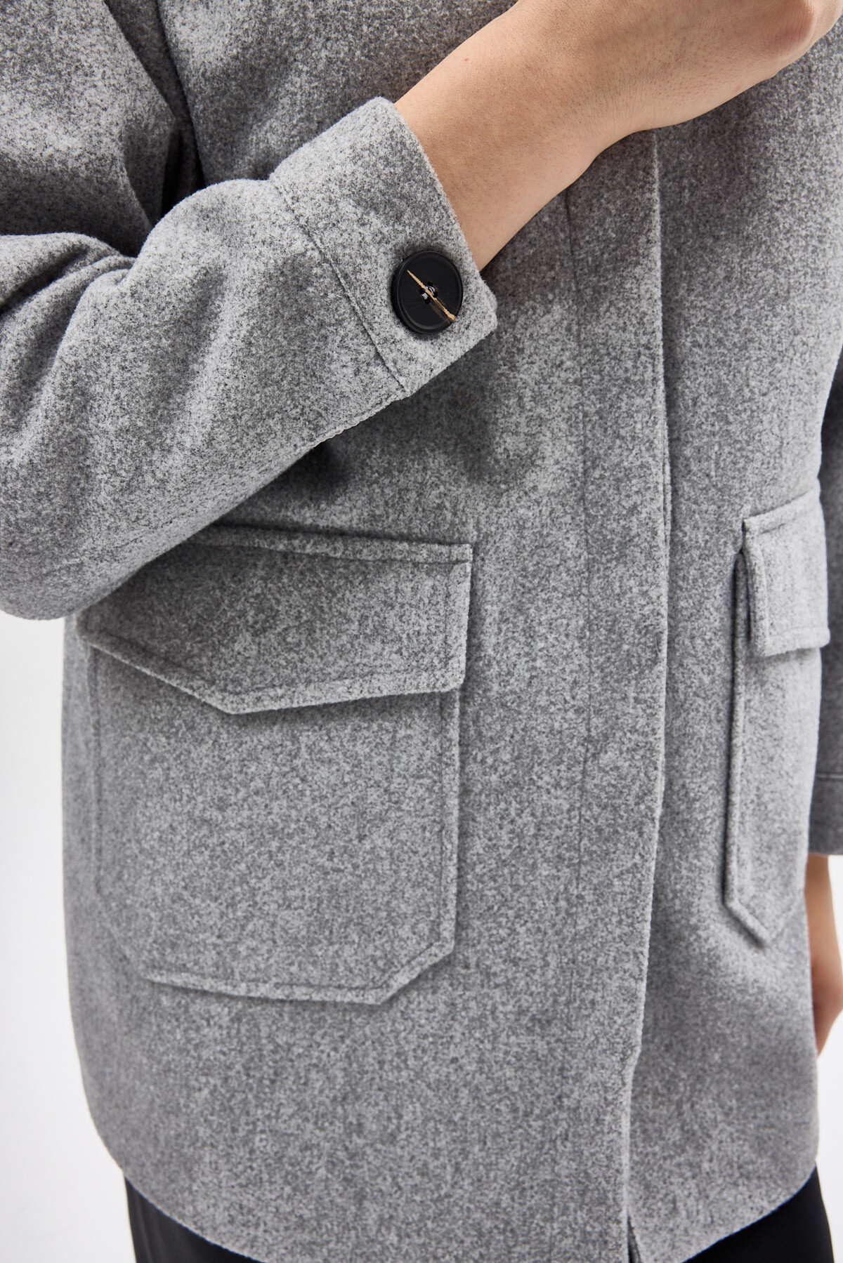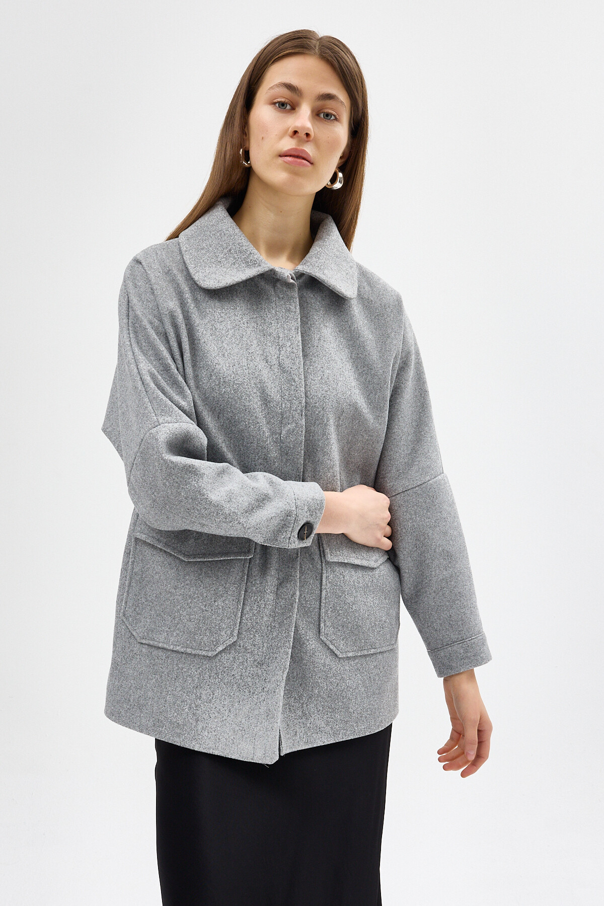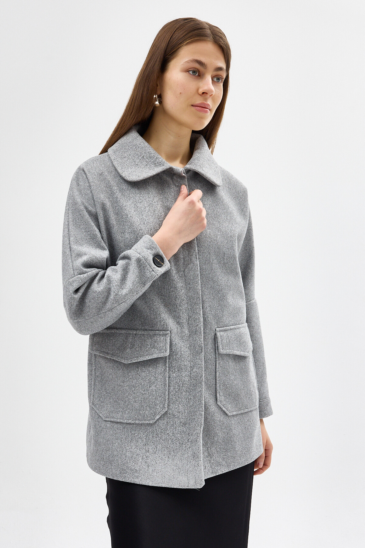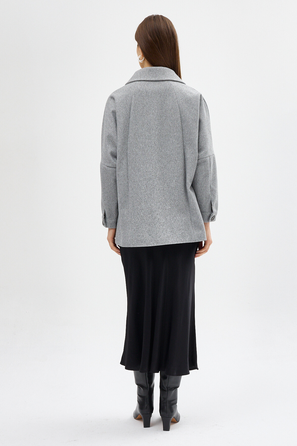 Gri Büyük Cepli Geniş Yakalı Kadın Kaban 3102A