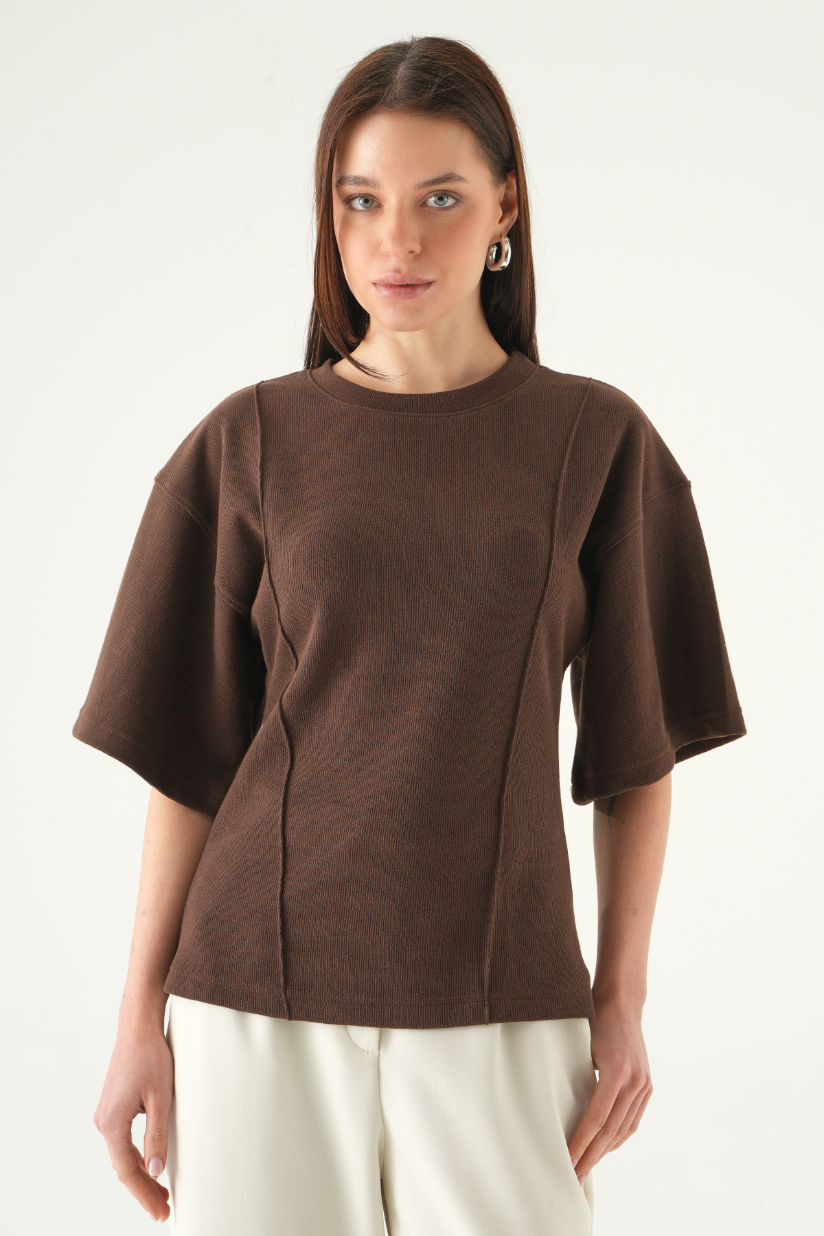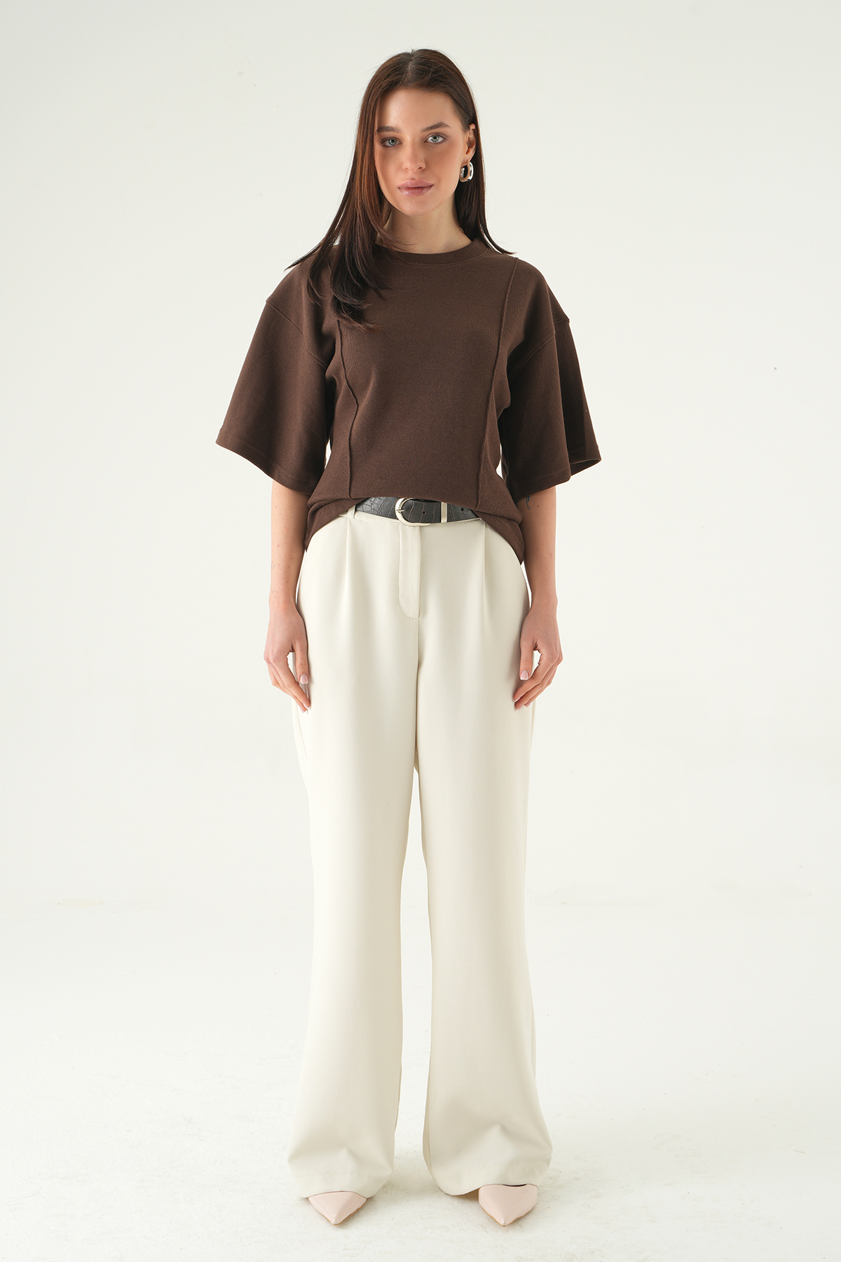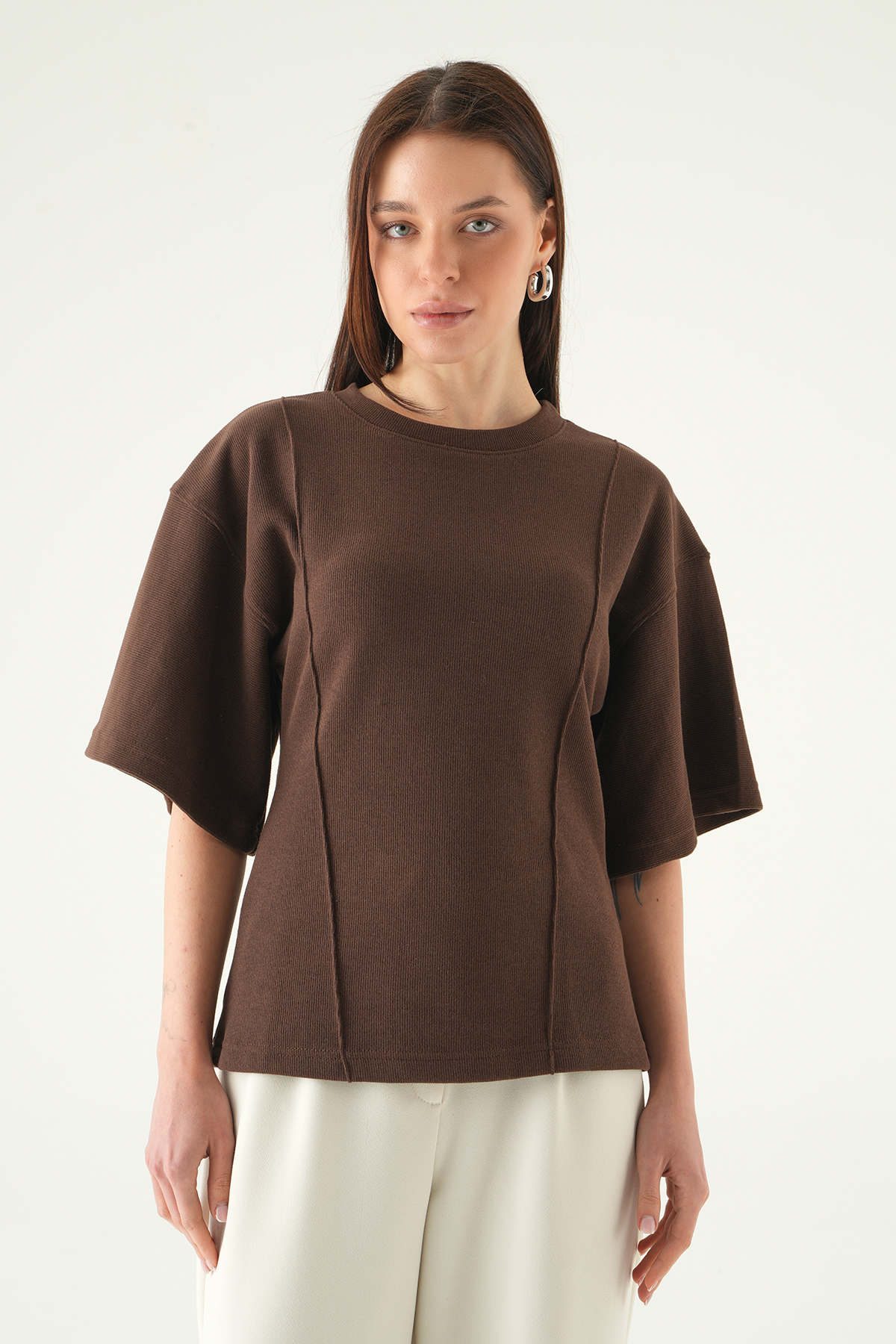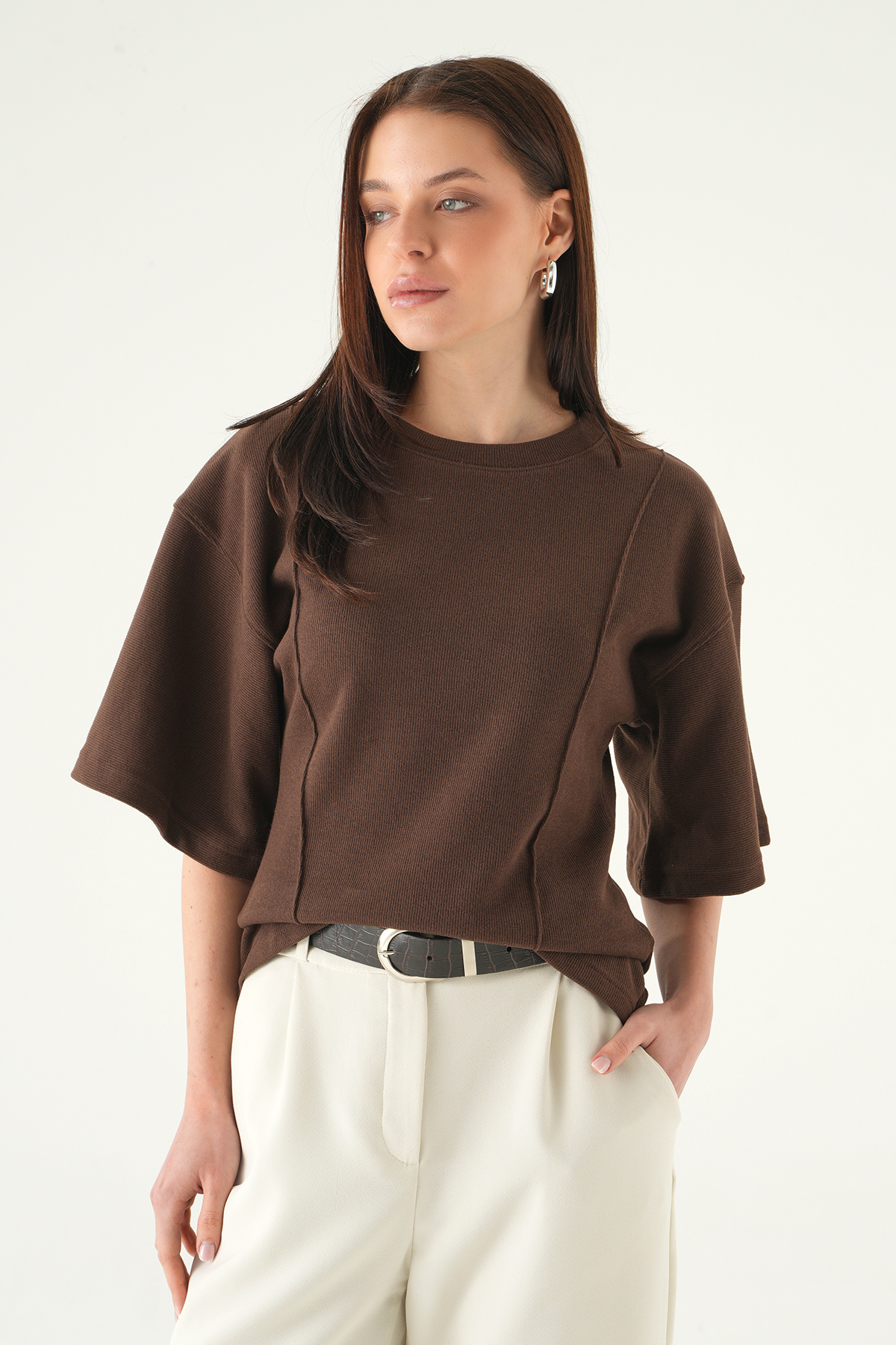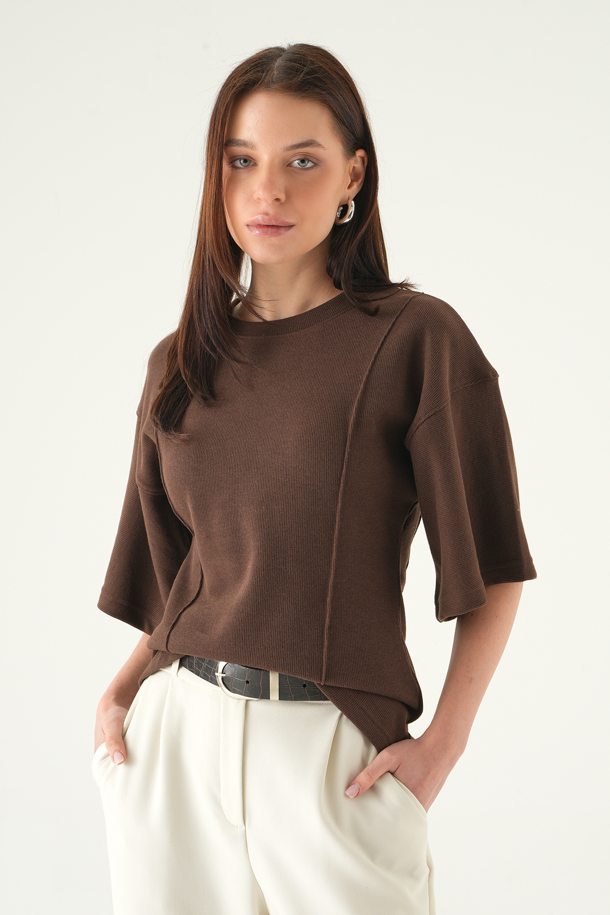 Kahve Ön Çima Detay Bluz 3104A
