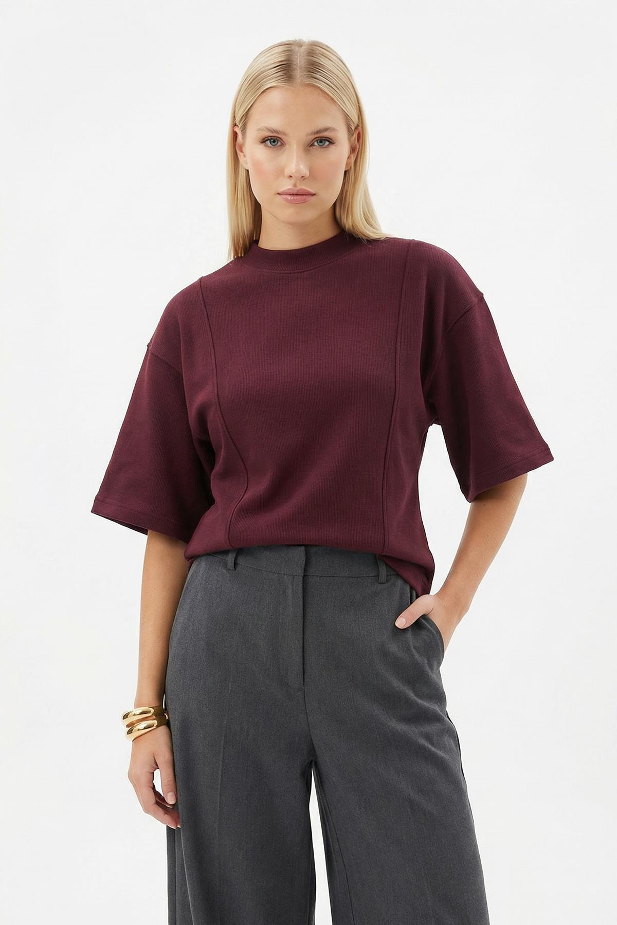 Laci Baskılı Relaxed Fit Ribana Detaylı Tişört 5652