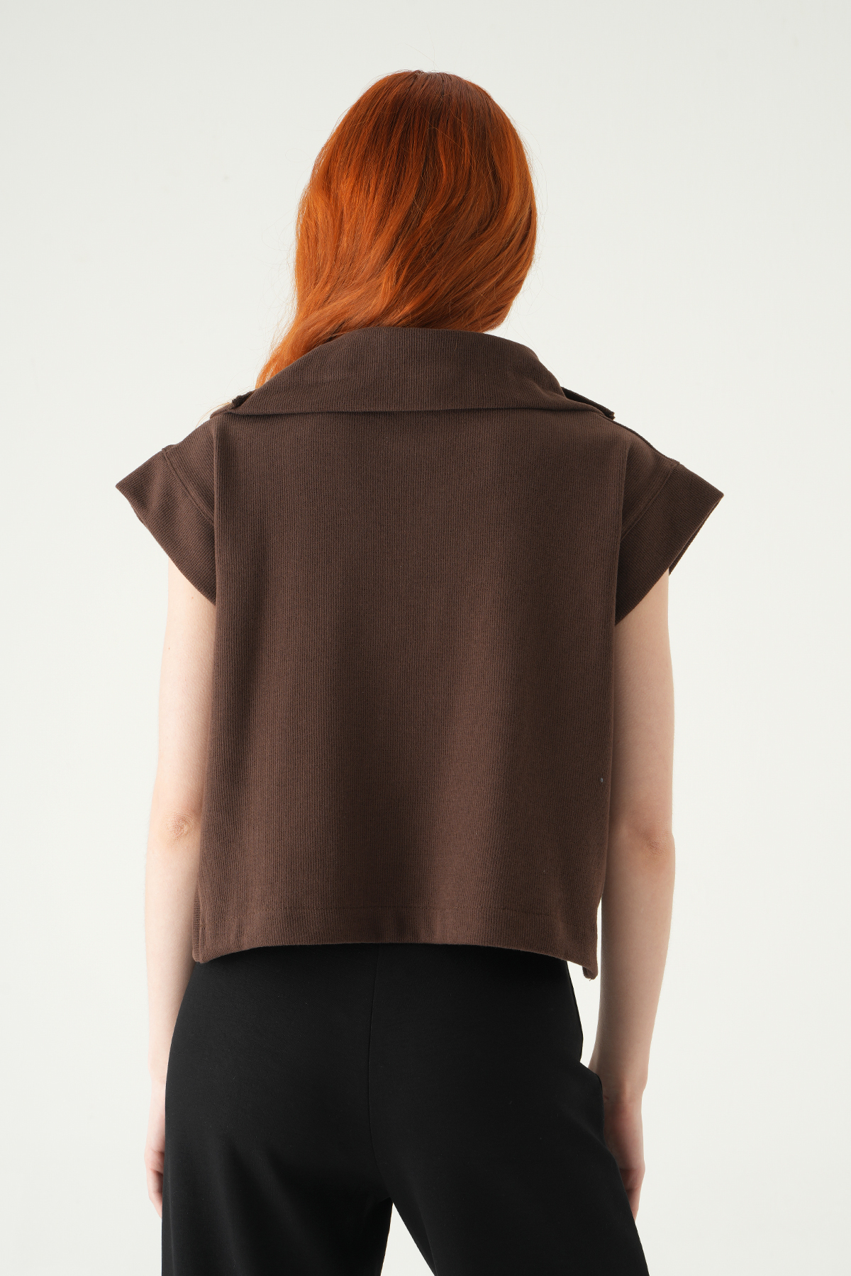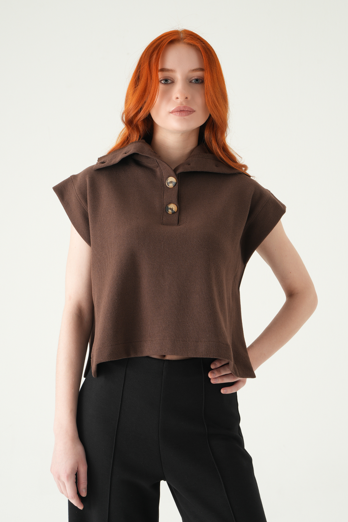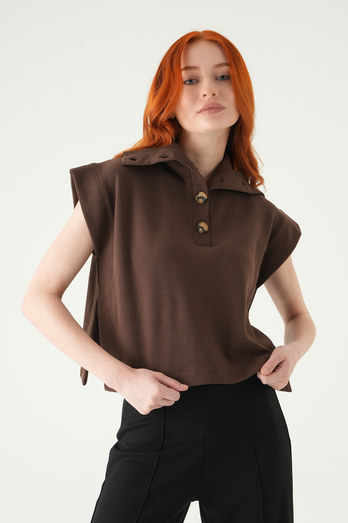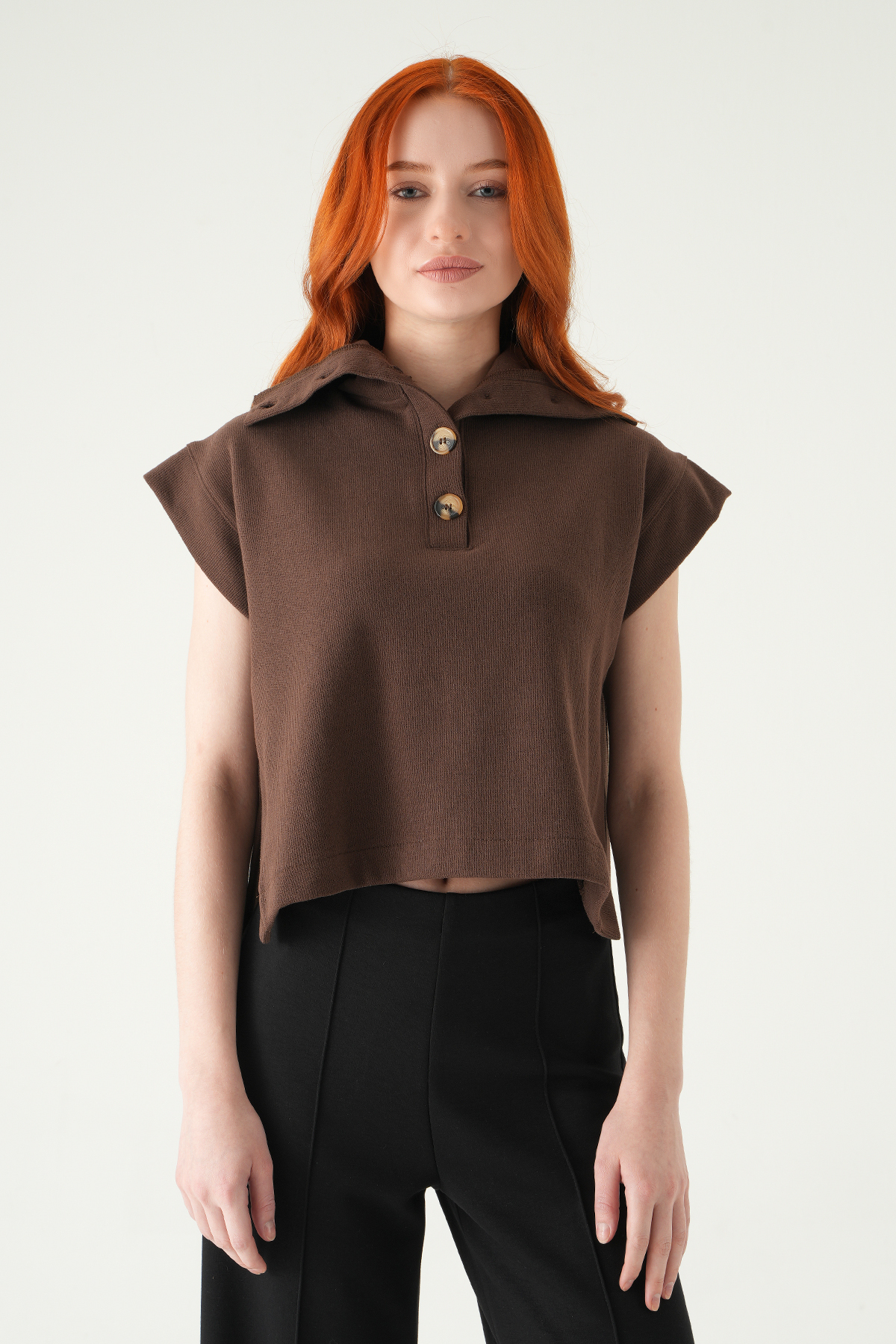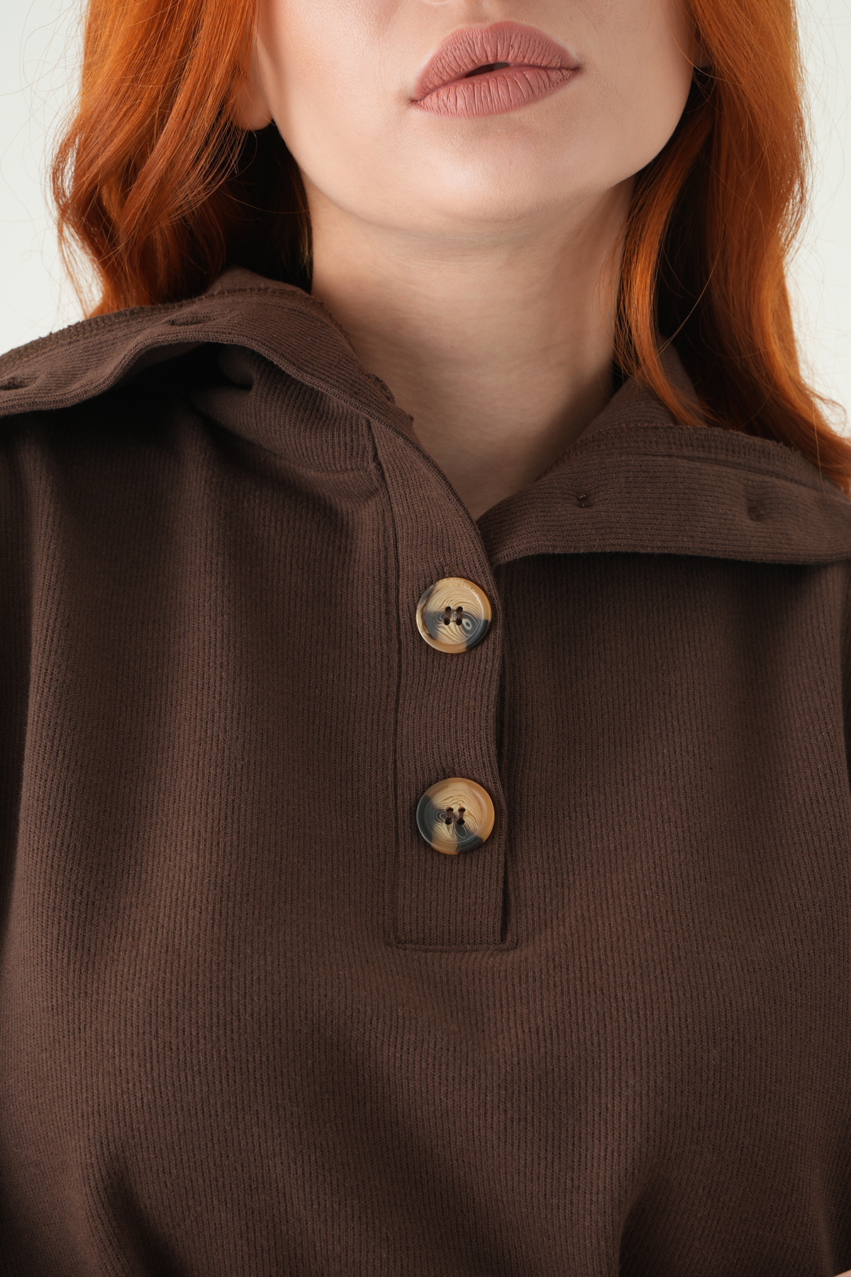 Kahve Dik Yaka Düğmeli Bluz 3106A