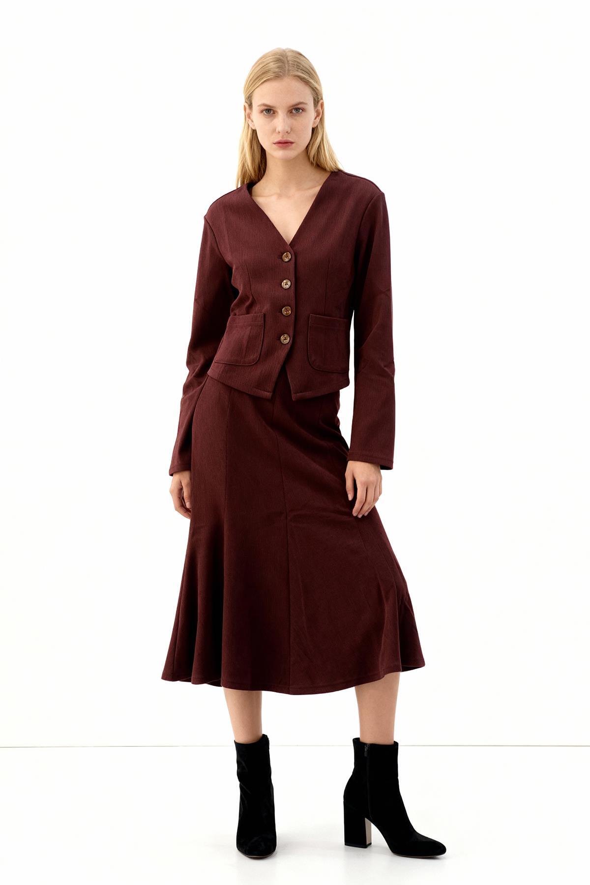 Kahve Yumuşak Dokulu Ceket Etek Takım 8150A