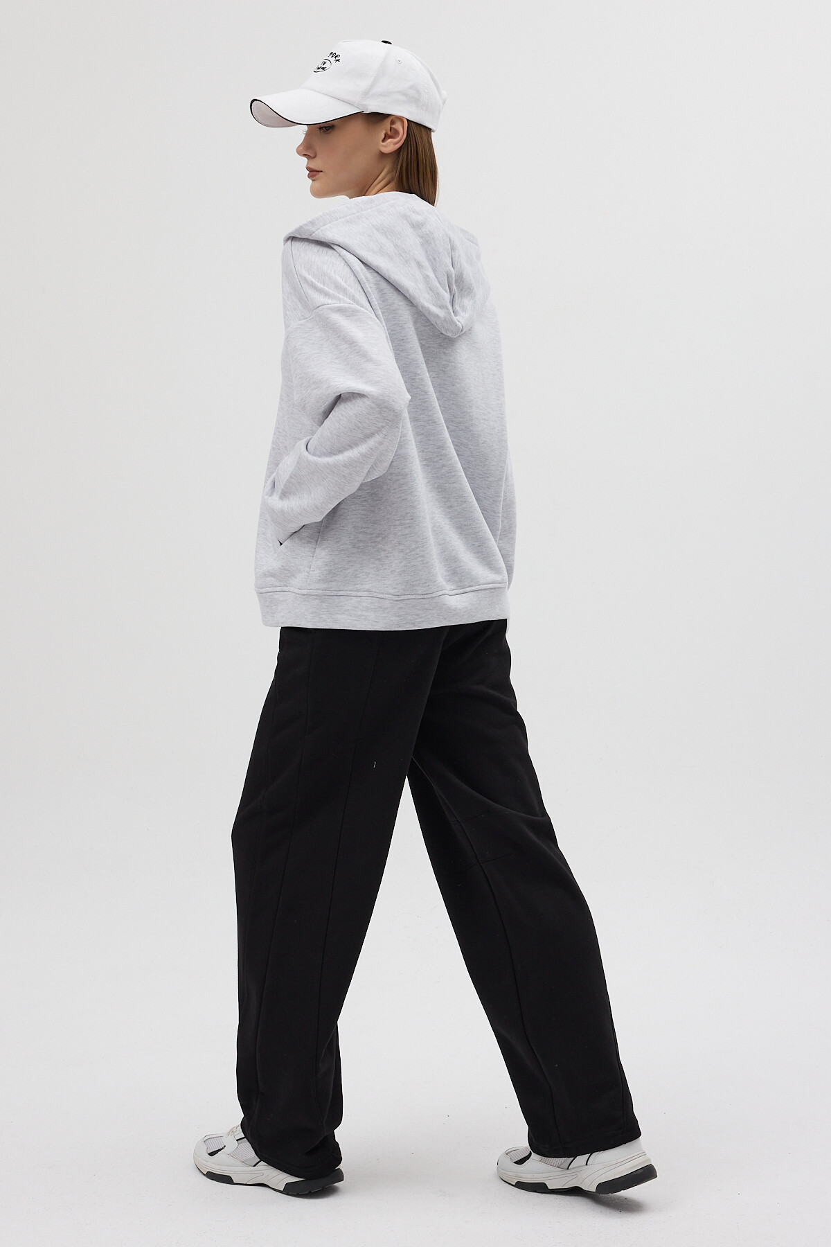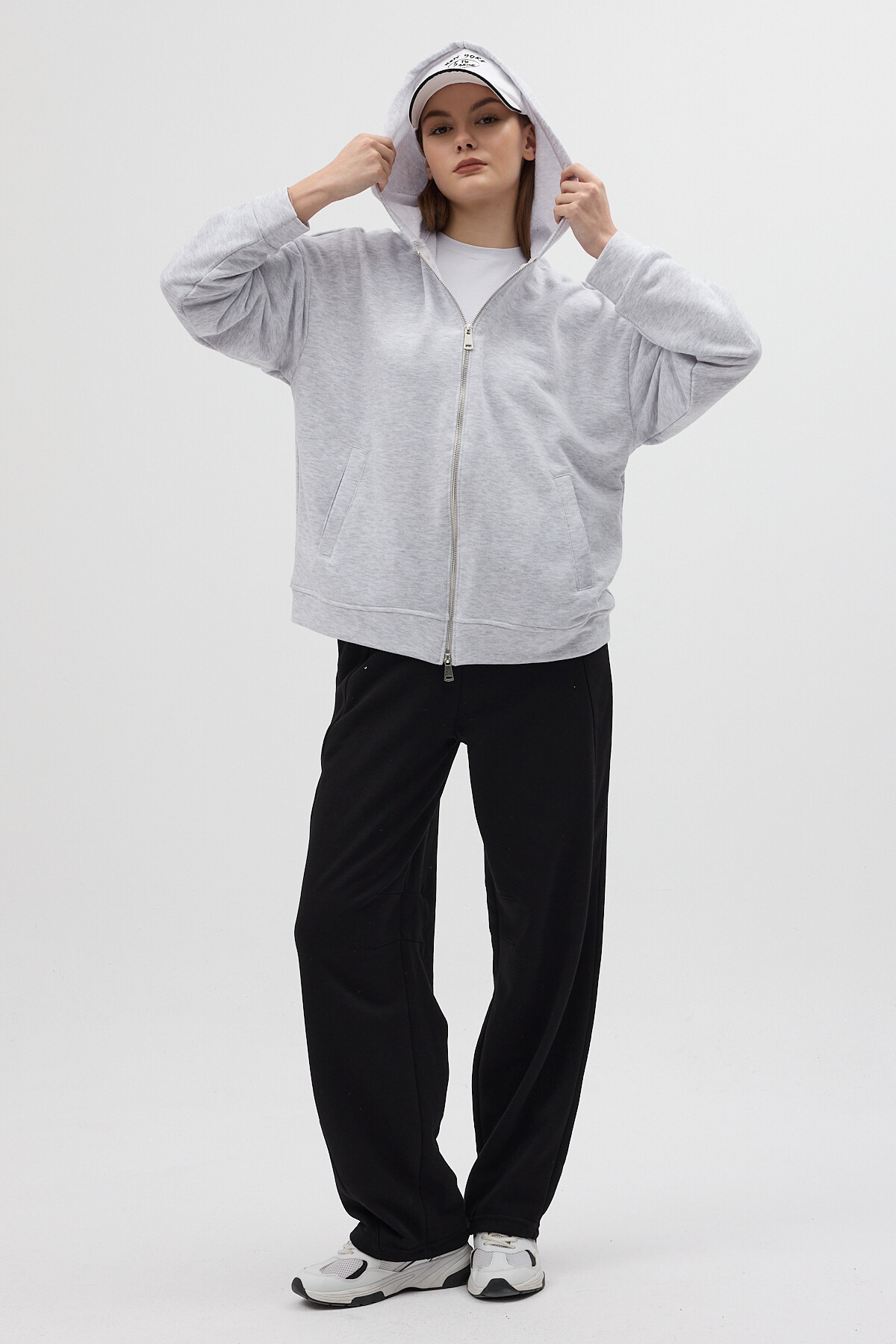 Gri Kapüşonlu Fermuarlı Oversize Kadın Hırka 3116A